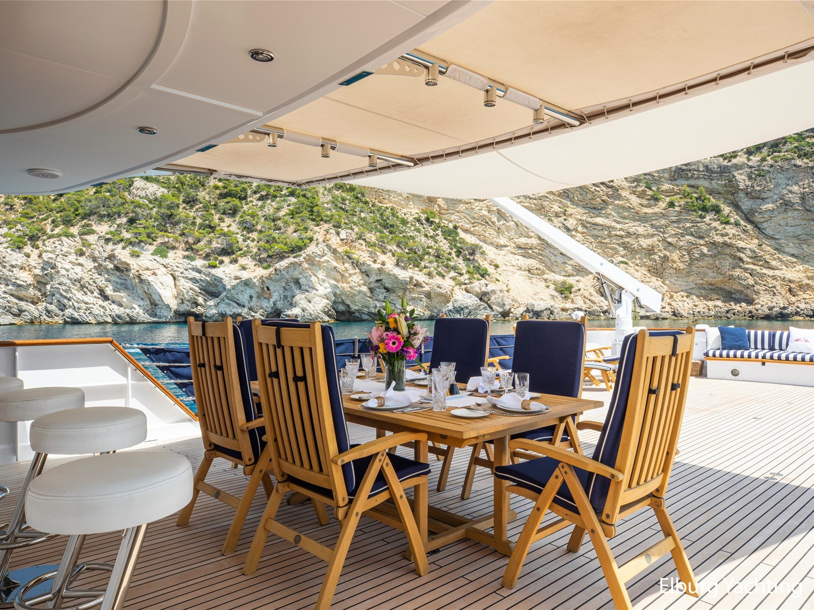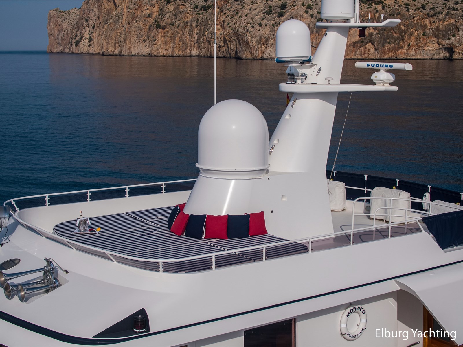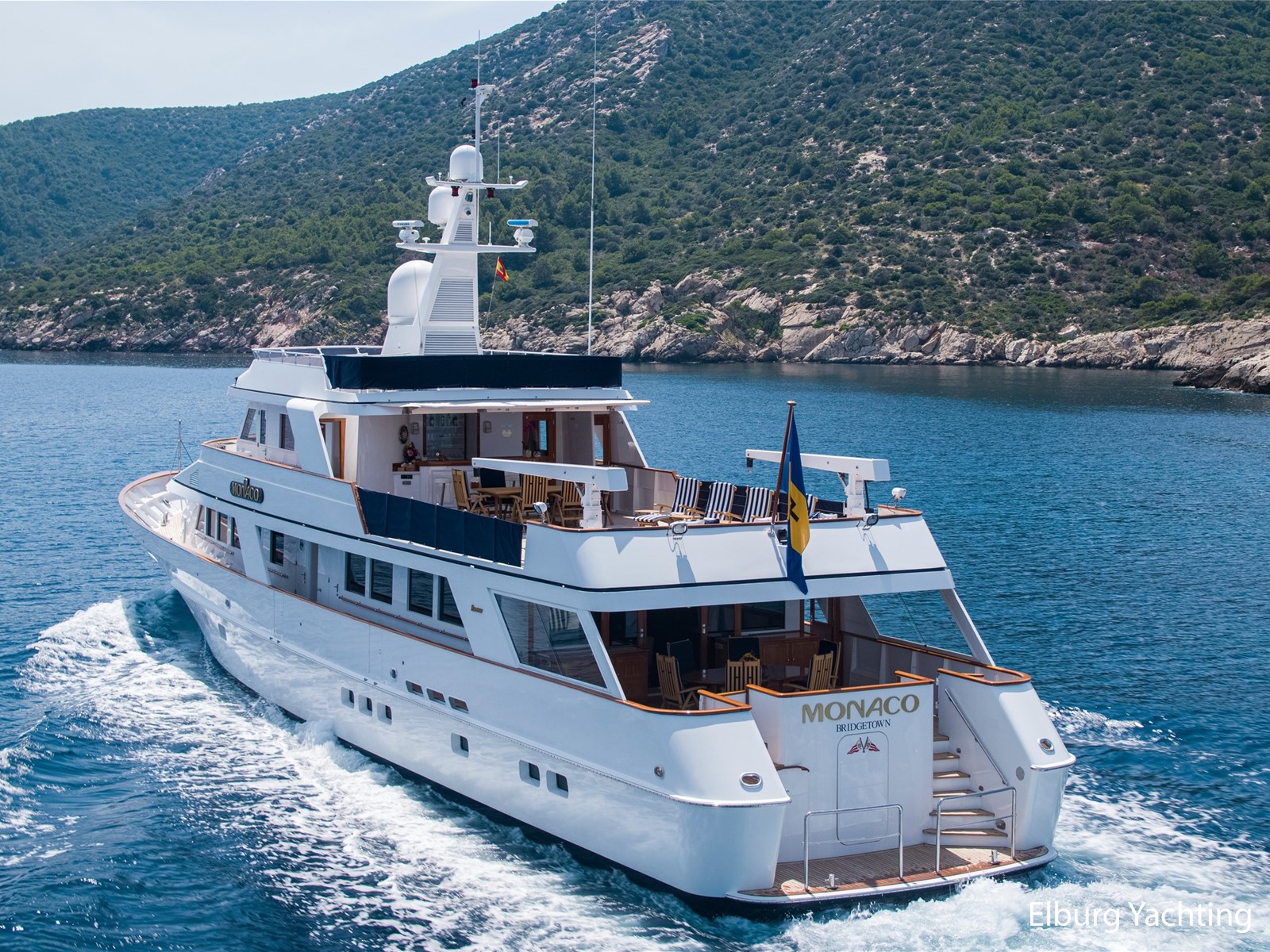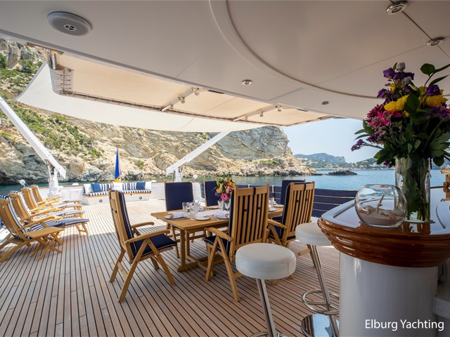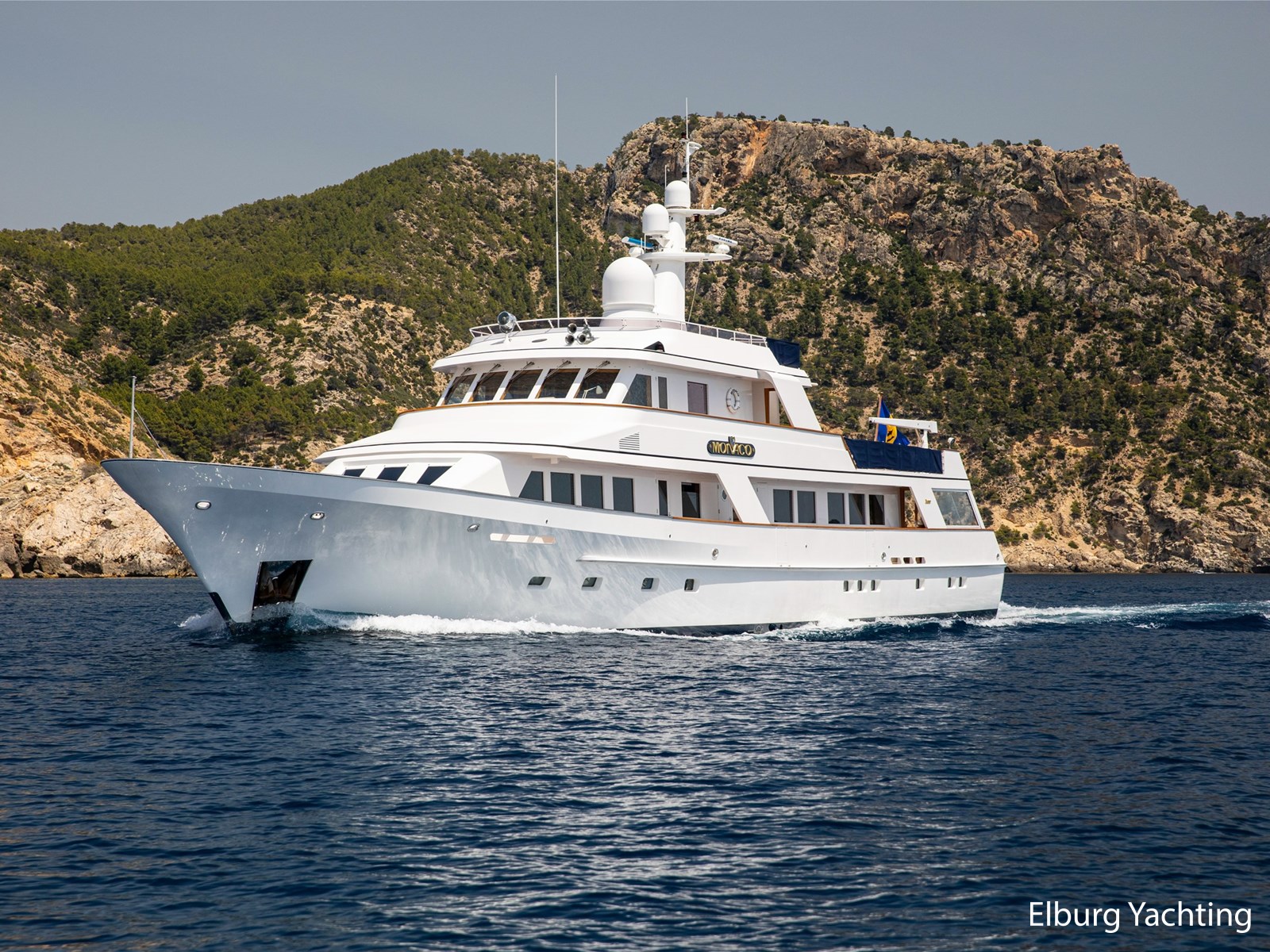 Elegant en klassiek gelijnd jacht met een zeer hoogwaardig afwerkings niveau. Het ontwerp van het exterieur en de scheepsarchitectuur is uitgevoerd door Feadship en De Voogt Naval Architecture en het interieur is ontworpen door Terence Disdale. Dit tijdloze jacht is professioneel onderhouden en biedt veel ruimte om te recreëren aan boord, zowel in de salon en buiten op diverse etages van het dek. Een must-see voor iedereen die op zoek is naar een kant-en-klaar tijdloos Feadship. Het motorjacht "Monaco" werd oorspronkelijk opgeleverd in 1982. Haar uitgebreide refit heeft plaatsgevonden in 2016, waarbij er onder andere installatie van nieuwe generatoren, revisie van de hoofdmotoren (tot nul uur) en een volledig exterieur schilderklus is uitgevoerd. Het jacht heeft na de refit vele upgrades ondergaan in de afgelopen jaren, 2020 -2023. De Feadship Classic MY "Monaco" is daarom ook klaar om te gaan. Het jacht biedt plaats aan 8 gasten en heeft ruimte voor tot ca. 8 bemanningsleden. Een ondeck master cabin plus een full-beam VIP cabin en 2 gastenhutten beneden, allen met ensuite badkamers. Het verlengde achterschip biedt een mooi zwemplatform voor allerlei watersportactiviteiten. De ingebouwde trap leidt naar het hoofddek, dat beschikt over een ingebouwde bank en een mooie teakhouten eettafel. Schuiframen geven de keuze om al dan niet van de wind te genieten. Het brugdek beschikt over een bar, vaste bank aan de achterzijde en veel dek-ruimte flexibel te gebruiken, zeker wanneer beide tenders worden ingezet. Een klein zonnedek bovenop de brug biedt enige privacy, grote zonnekussens en een prachtig uitzicht. Een bank op het voordek biedt extra privé zitplaatsen buiten. Binnen biedt de open, ruime salon informele zitplaatsen met grote banken en stoelen. Daarnaast bevindt zich ook een formeel eetgedeelte. Verder naar voren op het hoofddek treft u de ruime eigenaarshut met eigen badkamer en inloopkast. Het jacht is geclassifieerd met Lloyd’s Register (+100 A1). De range is ca. 3.500 NM op basis van economische kruissnelheid van ca. 10 knopen. Maximum snelheid bedraagt ca. 11.5 knopen. Het verbruik is ca. 120 l/hr incl. generator met een snelheid van 10.0 knopen. De crewhutten bestaan uit 1 kapiteinshut, 4 crewcabins waarvan 2 x een één-persoonshut. Het motorjacht is uitgerust met diverse watersport artikelen om te recreëren : Waaronder 8 x volledige sets duikuitrusting , 2 x Novurania 550DL RIB tenders met 115 pk Yamaha Four Stroke buitenboordmotoren , 1 x Laser Pico zeilboot/dinghy, 3 x waterski's, 1 x sleepbaar wakeboard 2 x opblaasbaar SUP boards, 1 x Jobe Kick Flip funtube /bank, 1 x Jobe opblaasbare 4-persoons Chaser Funtube/ banaan, 1 x Opblaasbare donut, 8 x volledige sets duikuitrusting. Tevens beschikt het jacht over: 2 x Miele wasmachine + 2 x Miele droger, 40’’ flat screen TV Surround sound system in salon, Surround sound system in eetgedeelte, Flat screen TV in crewgedeelte, buitengedeelte beschikt over Fusion Speakers/Bluetooth Capable system, alle buitenstoelen en banken beschikken over een cover, Hamann afvalstysteem, zoeklicht, Samsung- 5 x vaste kleurencamera's met 2 x controlestations, AIS systeem Furuno FA 170, Navtex Furuno NX-300, Vosper MKII Type 4 Stabilizers. (Enkel onderweg) In de winter van 2022 -2023 heeft het jacht onder andere de volgende werkzaamheden ondergaan: Caterpillar hoofdmotorwerkzaamheden, volledig onderhoud van Zenoro generatoren Werkzaamheden aan het stabilisatiesysteem door Naiad, Gehele exterieur van de romp schoongemaakt, machinaal gepolijst en verzegeld door RMP Marine (A-Glaze). Verwijdering en vervanging van enkele teakhouten onderdelen rond het jacht, het teak van het voordek en zwemplatform is geschuurd. Nieuwe Raymarine Anemometer en speed log geïnstalleerd, nieuwe Nav computer upgrade voor Warstila/Transas NaviSailor4000 ECS inclusief (nieuwe) NMEA distributie splitter, nieuwe Icom VHF DSC unit geïnstalleerd in stuurhuis, nieuwe Grill/Salamander geïnstalleerd in kombuis, interieur bijwerken en reparaties inclusief enkele lederen plafond panelen, vernis en houten oppervlakken rond het jacht. In 2021-2022 is er voor de MB92 Barcelona voor 40 jaar Lloyd's Register (LR) inspectie en uitgebreid onderhoud uitgevoerd, waaronder de volgende elementen zoals rompdikte test om te voldoen aan LR eisen, Megger testapparatuur volgens LR eisen, roer- en as-afstanden genomen volgens LR eisen, volledige service van stuursystemen van jacht volgens LR. Lijst inzake de verbeteringen en refit informatie is beschikbaar op aanvraag. Voor vragen en/of het maken van een afspraak bent u 7 dagen per week van harte welkom bij Elburg Yachting.