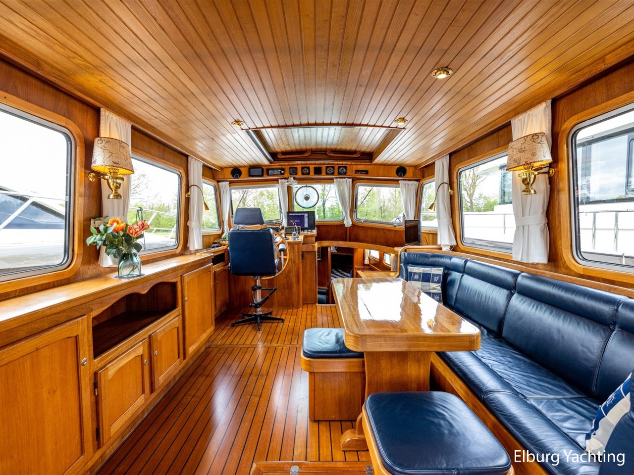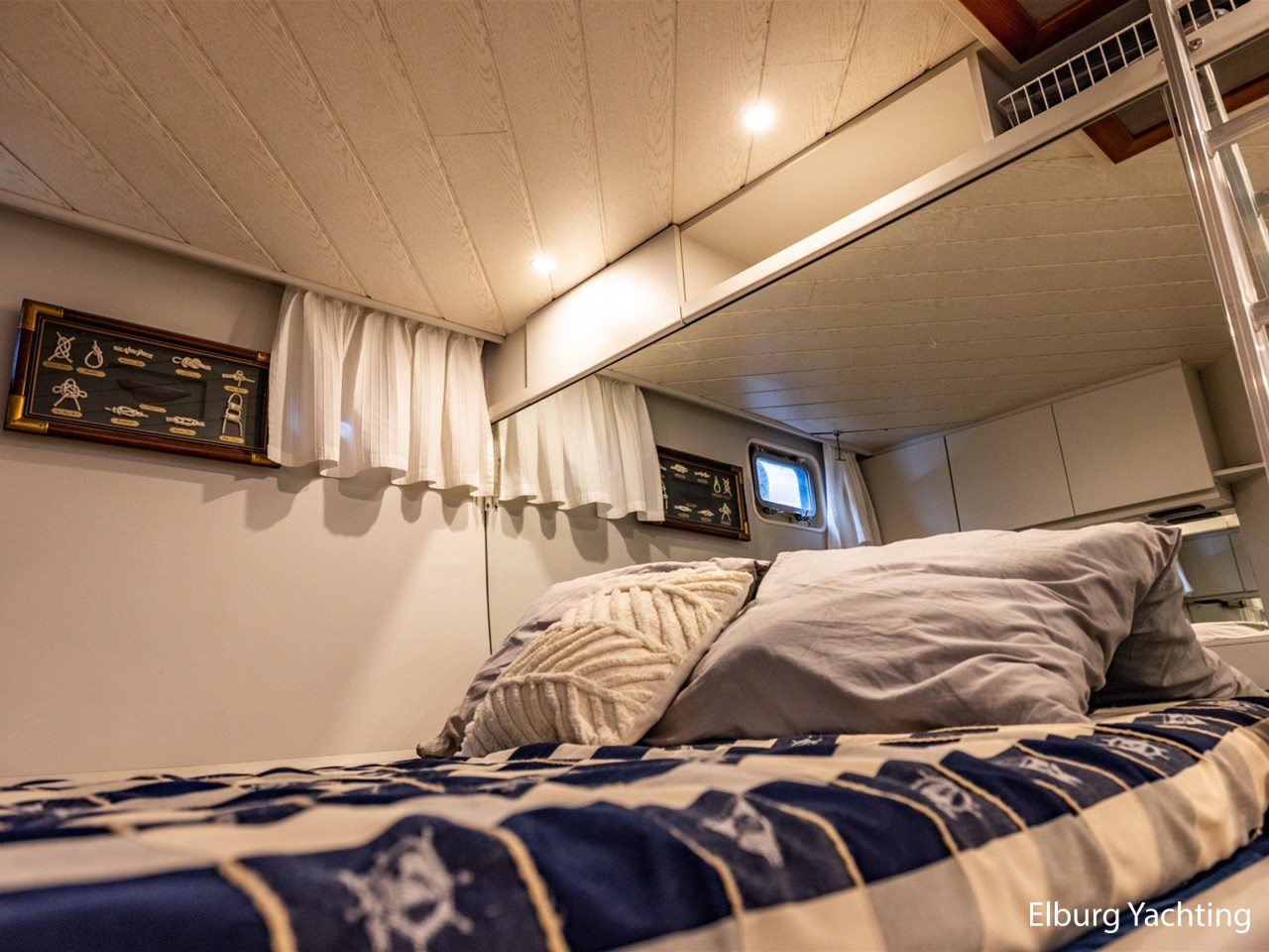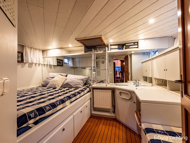 Authentiek en zwaar gebouwde Gillissen Rondspant Trawler met een klassieke uitstraling. Deze unieke Gillissen laat zich kenmerken door een professionele machinekamer, grote open kuip en een eigenaarshut midscheeps over de volledige breedte van het schip. Verder wordt dit schip geleverd met o.a: ruime salon met rondom zicht naar buiten, slingerruit, Miele novotronic WT 946was-/droogcombinatie, r.v.s. davits, mogelijkheid tot droogvallen, dubbele spoelbak in keuken, veel bergruimte door het gehele schip, traanplaat in machinekamer, automatische brandblusinstallatie in machinekamer (2019), gelakte houten railing, zwarte kunststof stootrand in r.v.s. eindhouders, 4 x openslaande deuren voor een open gevoel tussen salon en kuip, uitritsbare tent over de gehele kuip en achterhut (2019), camera aan achter zijde en aan stuurboord zijde, LED verlichting, teak banken met bergruimte in kuip, separate ingang naar machinekamer vanaf kuip of achterhut, dekwasinstallatie met separate hydrofoor, beunkoeling, hydraulisch strijkbare mast, romp in 2018 geschilderd, opbouw in 2017 geschilderd. Het schip heeft in 2002 een refit ondergaan bij Balk in Elburg en is daarna goed gedocumenteerd gebleven qua onderhoud. Voor vragen en/of het maken van een afspraak bent u 7 dagen per week van harte welkom bij Elburg Yachting.