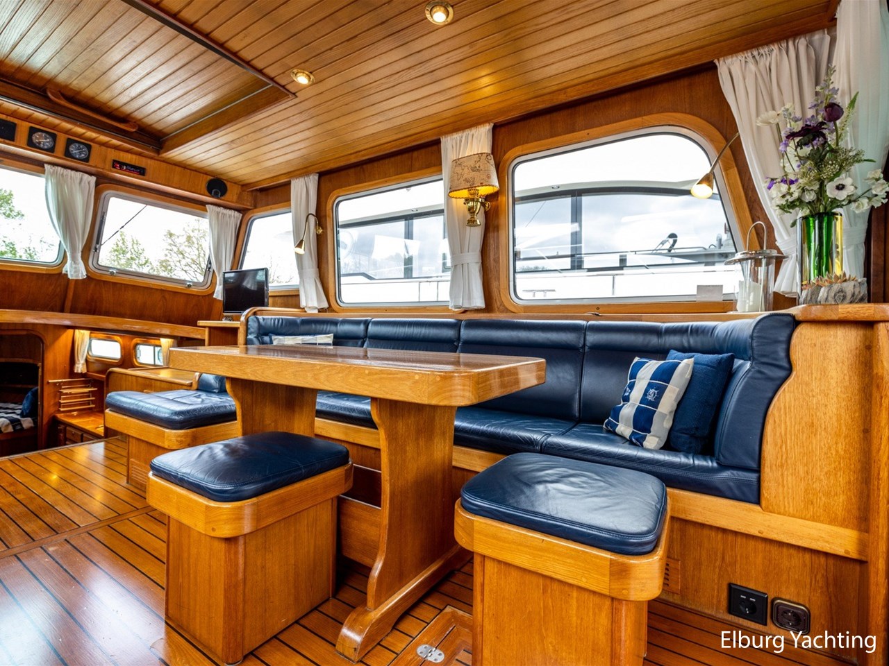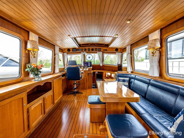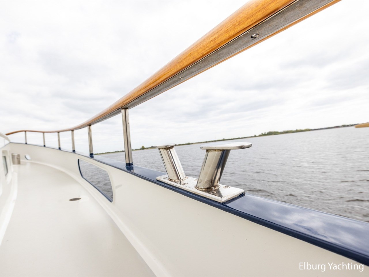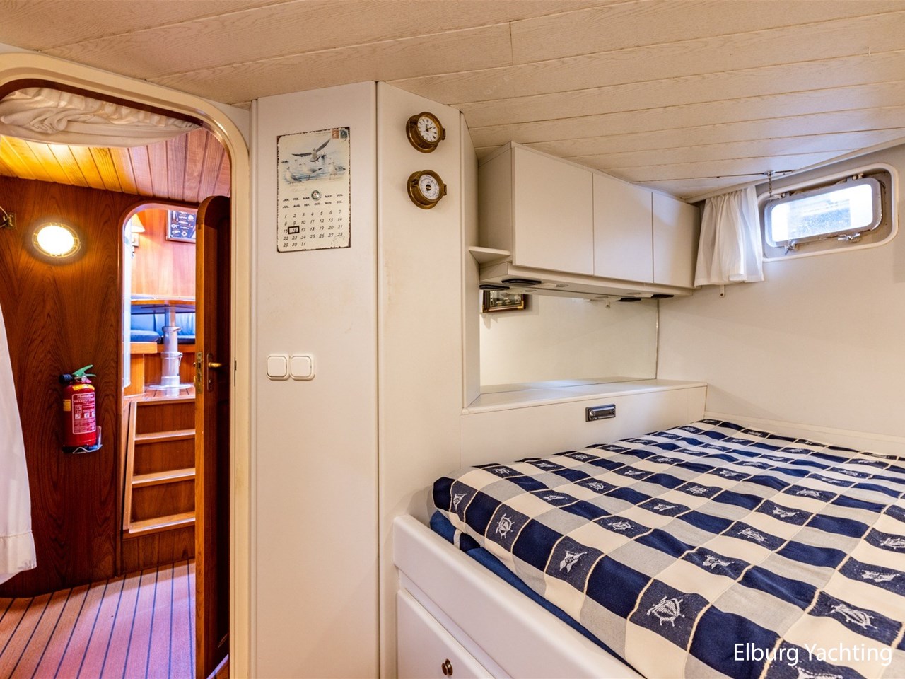 Authentiek en zwaar gebouwde Gillissen Rondspant Trawler met een klassieke uitstraling. Deze unieke Gillissen laat zich kenmerken door een professionele machinekamer, grote open kuip en een eigenaarshut midscheeps over de volledige breedte van het schip. Verder wordt dit schip geleverd met o.a: ruime salon met rondom zicht naar buiten, slingerruit, Miele novotronic WT 946was-/droogcombinatie, r.v.s. davits, mogelijkheid tot droogvallen, dubbele spoelbak in keuken, veel bergruimte door het gehele schip, traanplaat in machinekamer, automatische brandblusinstallatie in machinekamer (2019), gelakte houten railing, zwarte kunststof stootrand in r.v.s. eindhouders, 4 x openslaande deuren voor een open gevoel tussen salon en kuip, uitritsbare tent over de gehele kuip en achterhut (2019), camera aan achter zijde en aan stuurboord zijde, LED verlichting, teak banken met bergruimte in kuip, separate ingang naar machinekamer vanaf kuip of achterhut, dekwasinstallatie met separate hydrofoor, beunkoeling, hydraulisch strijkbare mast, romp in 2018 geschilderd, opbouw in 2017 geschilderd. Het schip heeft in 2002 een refit ondergaan bij Balk in Elburg en is daarna goed gedocumenteerd gebleven qua onderhoud. Voor vragen en/of het maken van een afspraak bent u 7 dagen per week van harte welkom bij Elburg Yachting.