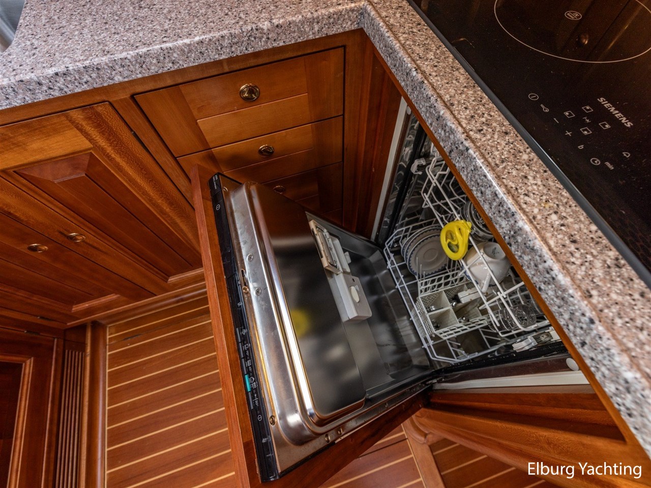 - Geïntegreerd met teak + r.v.s. zwemtrap