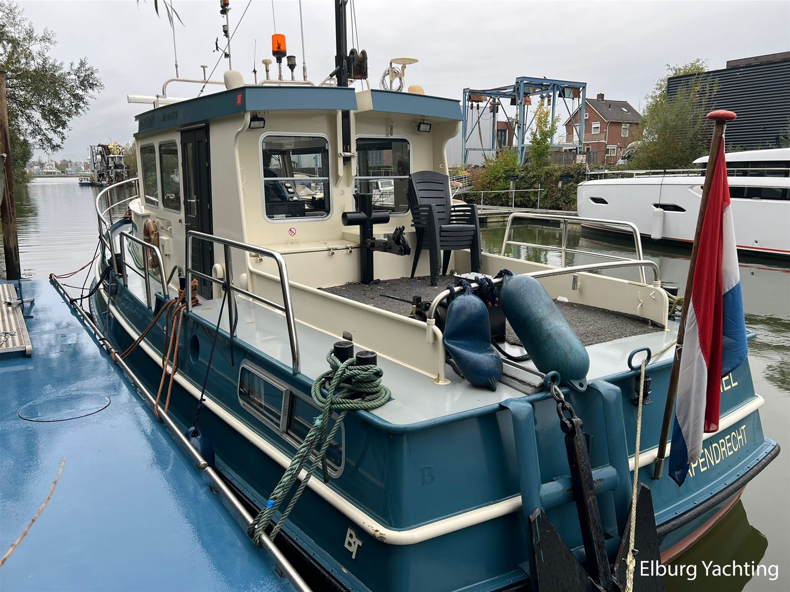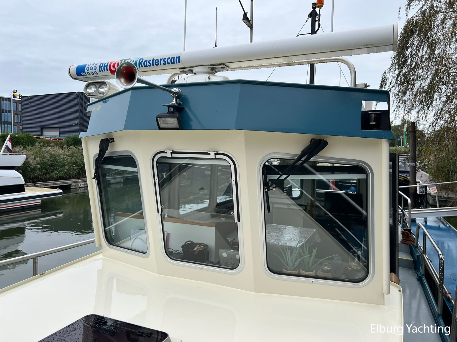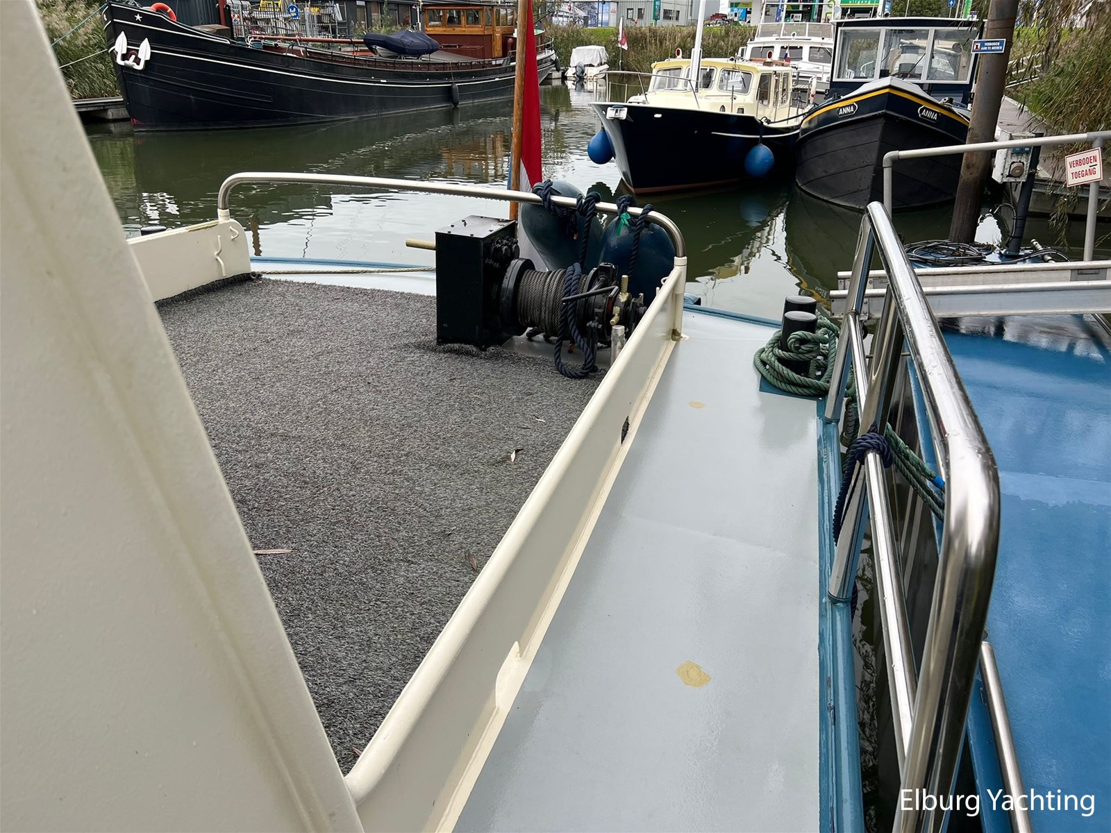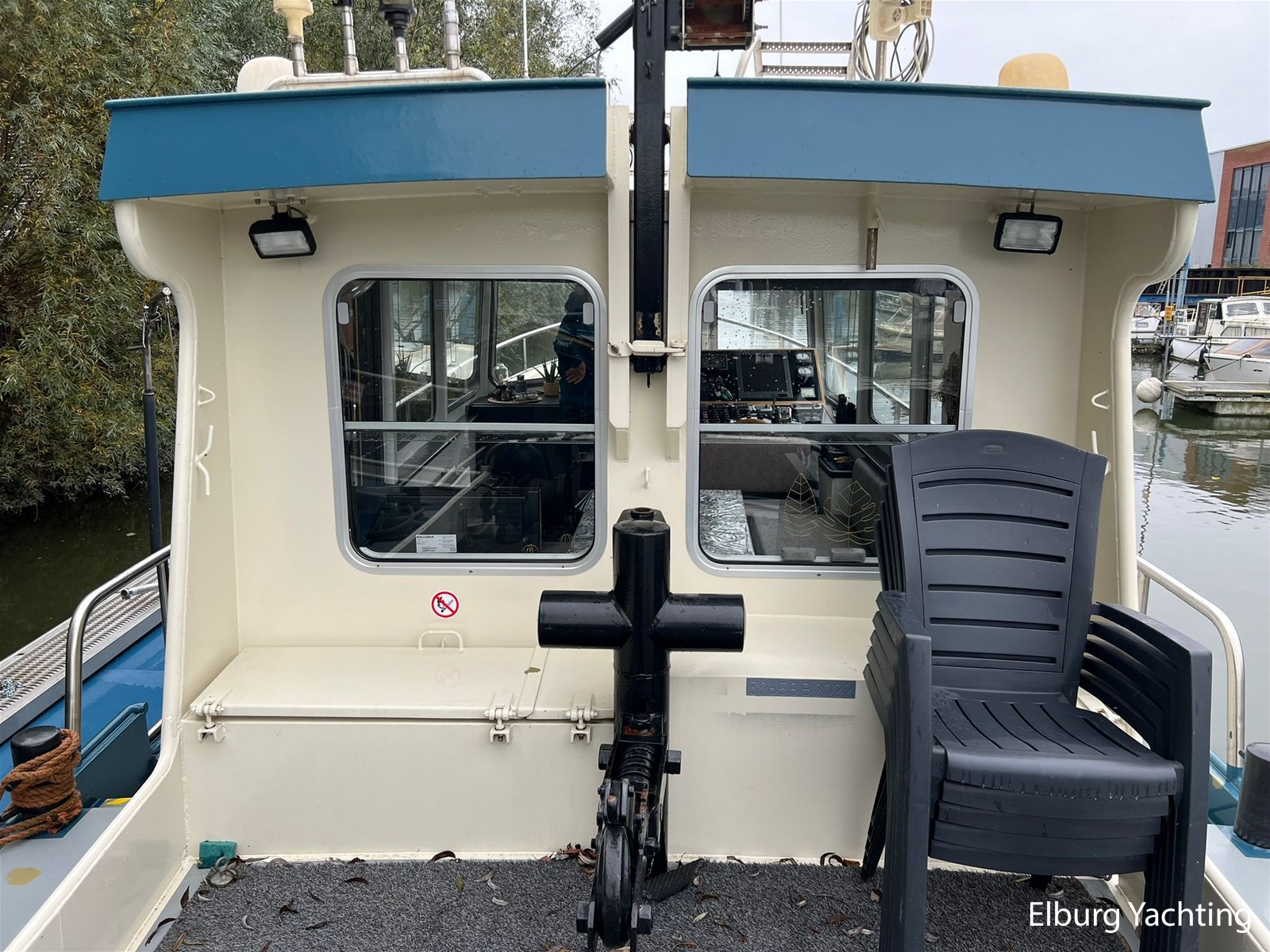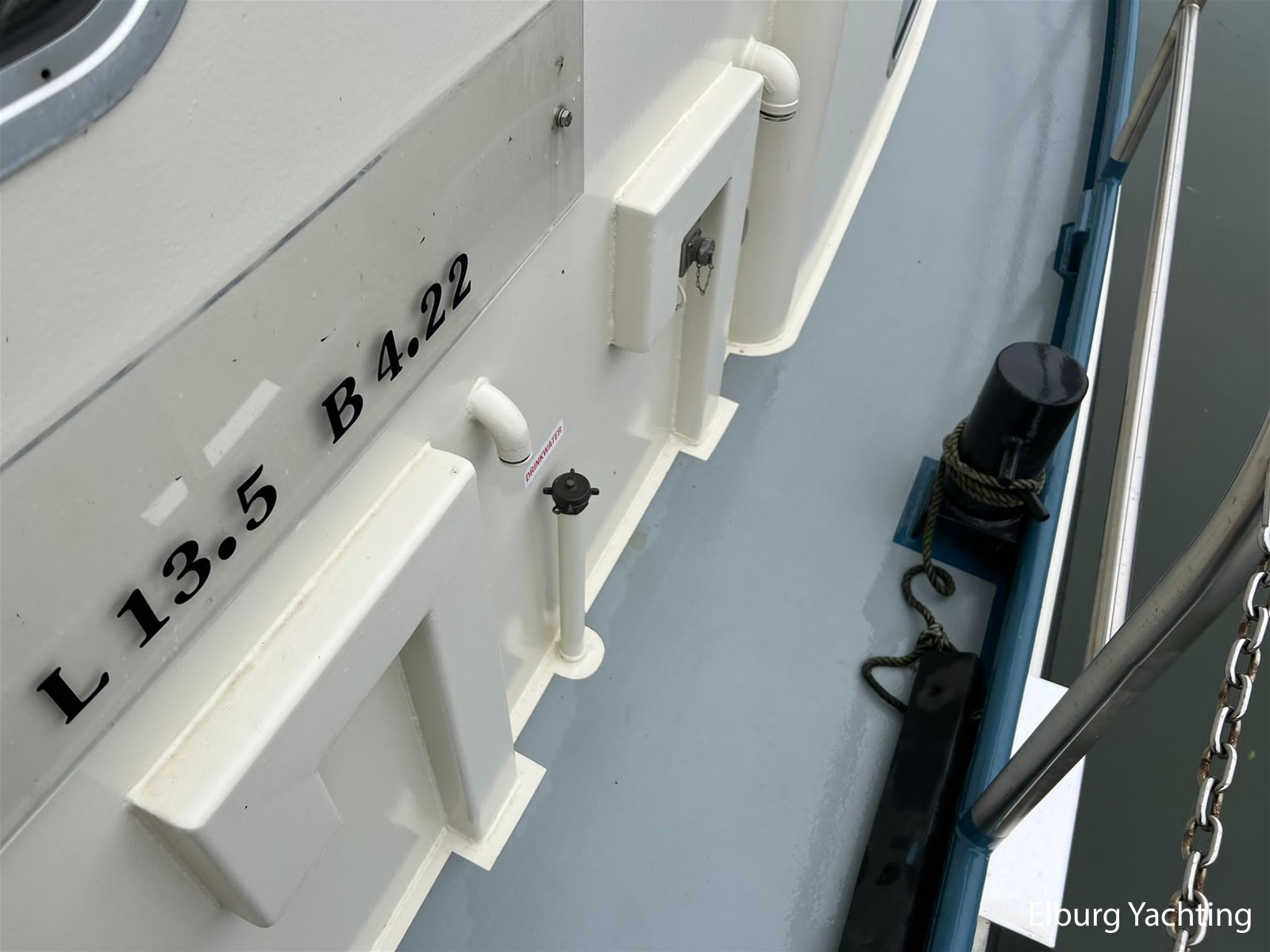 Professionele duw/sleep boot met de afwerking/intimmering van een jacht. Het schip is CVO gekeurd en is voorzien van een Europanummer. De centrale salon/stuurhuis is via een SB-zijdeur toegankelijk, de dinette biedt plaats voor 6 personen, de stuurbank is in hoogte elektrisch verstelbaar en de rugleuning is om te klappen zodat deze bij de dinette tafel betrokken kan worden, professioneel ingerichte stuurstand, follow-up besturing, tanks met mangaten, diverse ramen en patrijspoorten te openen voor extra ventilatie, dubbele r.v.s. reling rondom, afgesloten motorkamer, dekwaspomp, rubberen stootlijst rondom. Bij particuliere verkoop wordt het schip inclusief BTW verkocht. Voor vragen en/of het maken van een afspraak bent u 7 dagen per week van harte welkom bij Elburg Yachting.