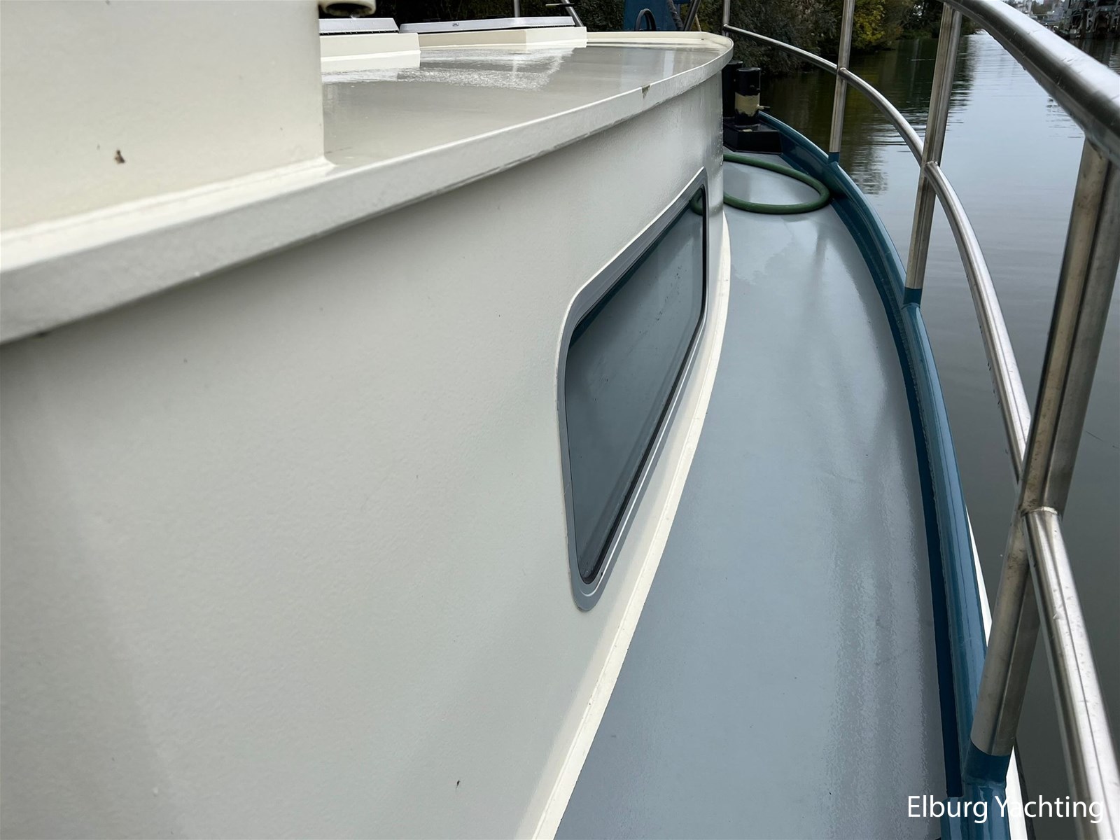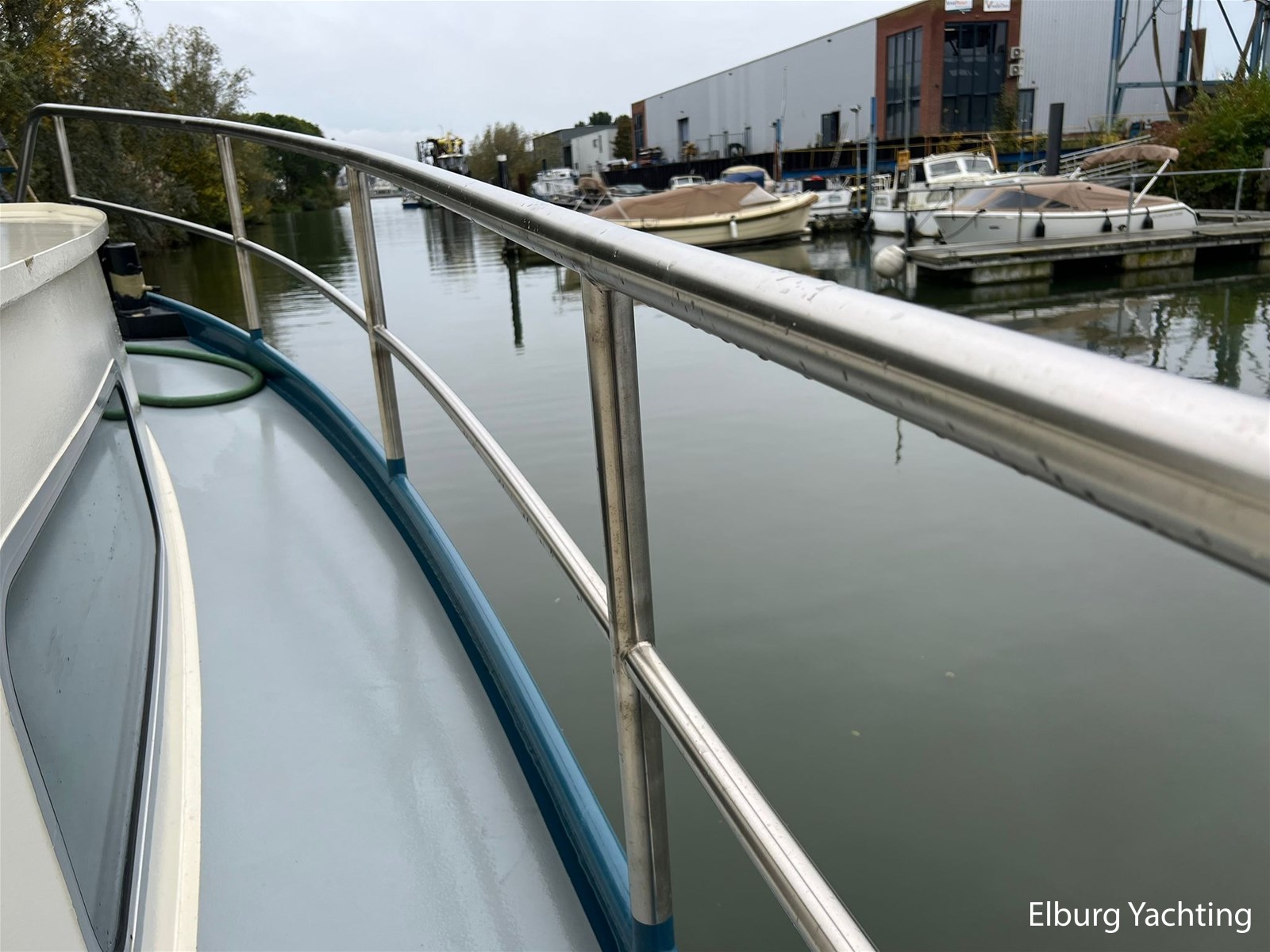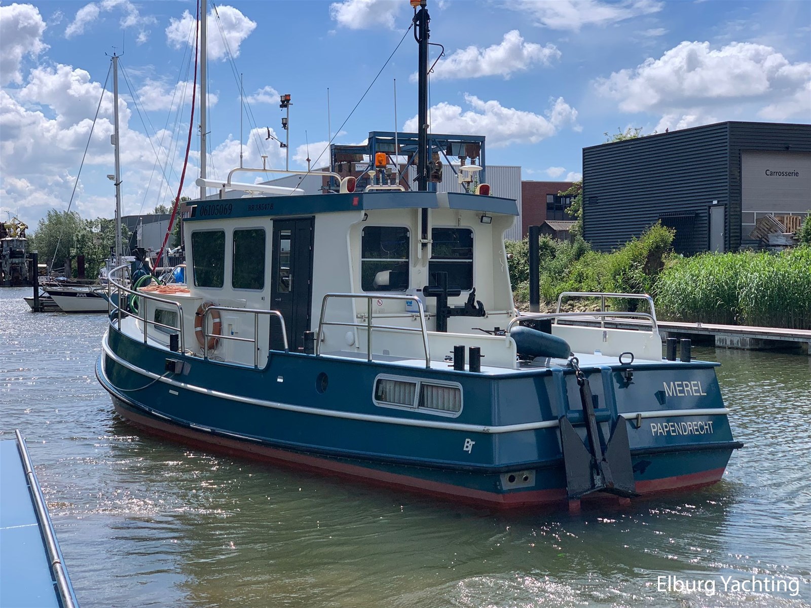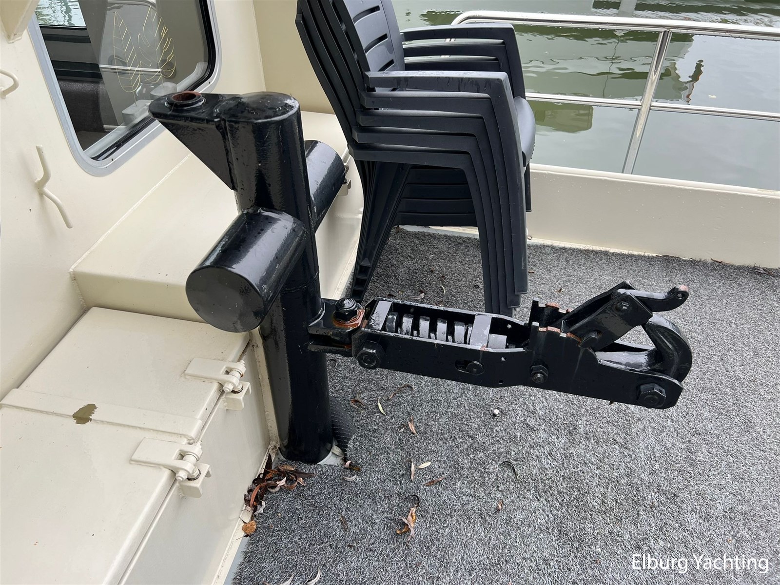Professionele duw/sleep boot met de afwerking/intimmering van een jacht. Het schip is CVO gekeurd en is voorzien van een Europanummer. De centrale salon/stuurhuis is via een SB-zijdeur toegankelijk, de dinette biedt plaats voor 6 personen, de stuurbank is in hoogte elektrisch verstelbaar en de rugleuning is om te klappen zodat deze bij de dinette tafel betrokken kan worden, professioneel ingerichte stuurstand, follow-up besturing, tanks met mangaten, diverse ramen en patrijspoorten te openen voor extra ventilatie, dubbele r.v.s. reling rondom, afgesloten motorkamer, dekwaspomp, rubberen stootlijst rondom. Bij particuliere verkoop wordt het schip inclusief BTW verkocht. Voor vragen en/of het maken van een afspraak bent u 7 dagen per week van harte welkom bij Elburg Yachting.