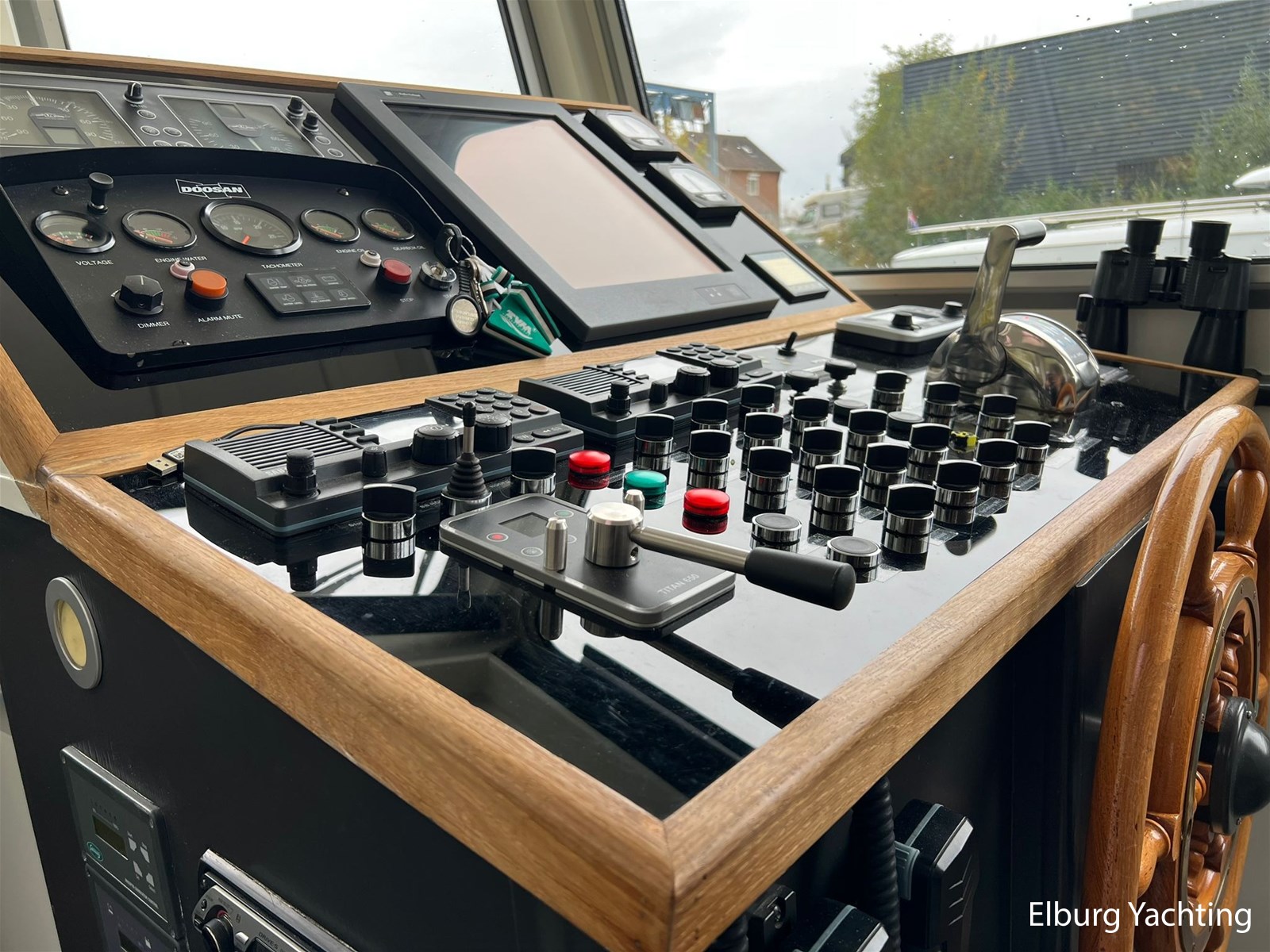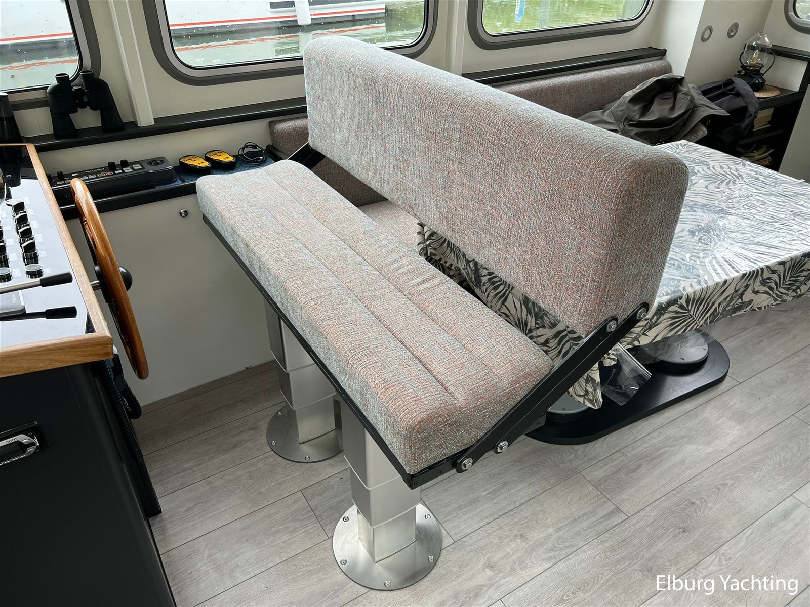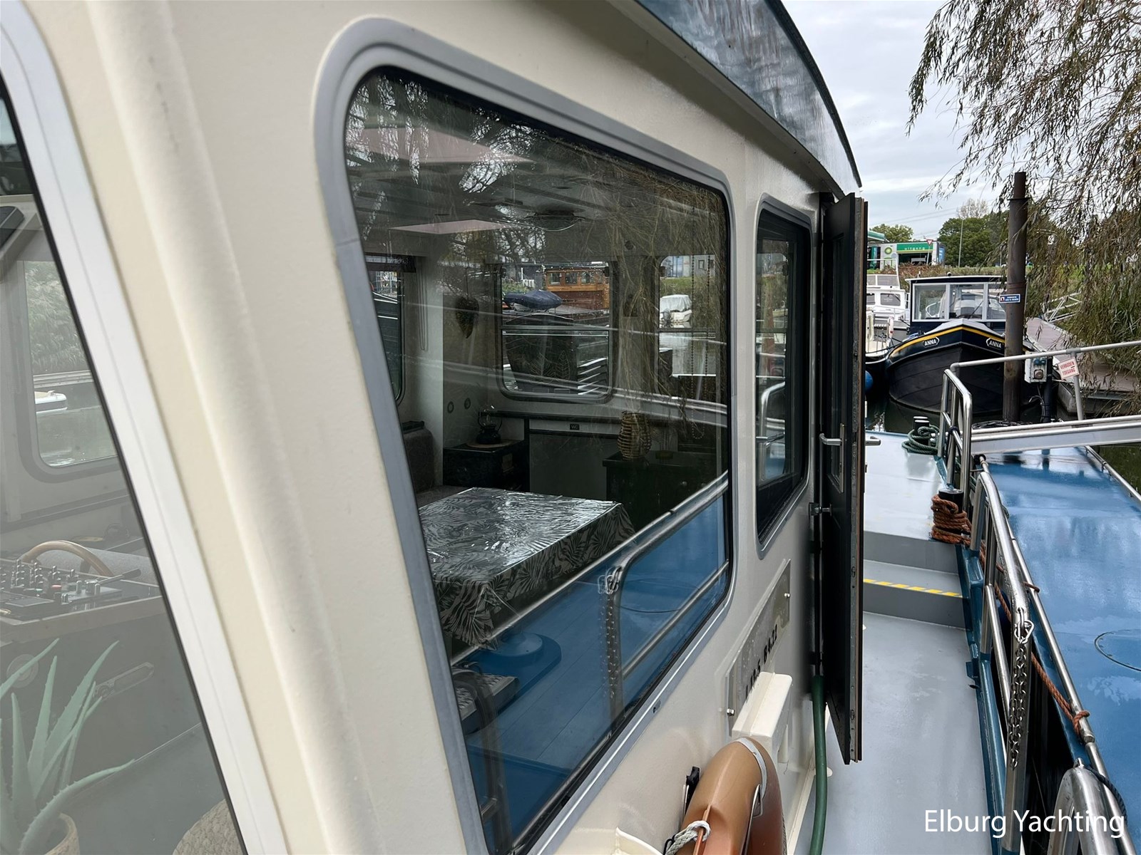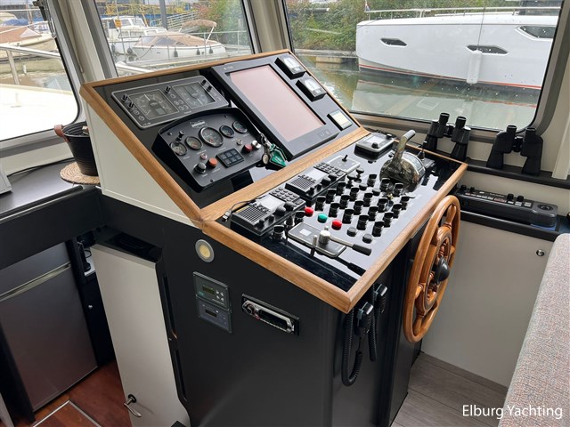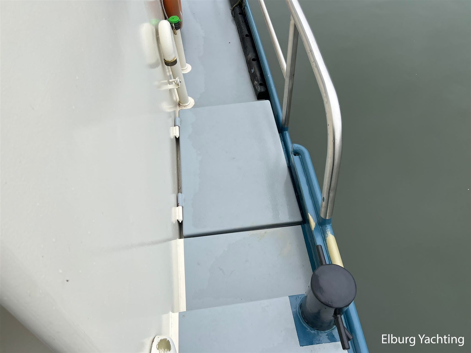 Professionele duw/sleep boot met de afwerking/intimmering van een jacht. Het schip is CVO gekeurd en is voorzien van een Europanummer. De centrale salon/stuurhuis is via een SB-zijdeur toegankelijk, de dinette biedt plaats voor 6 personen, de stuurbank is in hoogte elektrisch verstelbaar en de rugleuning is om te klappen zodat deze bij de dinette tafel betrokken kan worden, professioneel ingerichte stuurstand, follow-up besturing, tanks met mangaten, diverse ramen en patrijspoorten te openen voor extra ventilatie, dubbele r.v.s. reling rondom, afgesloten motorkamer, dekwaspomp, rubberen stootlijst rondom. Bij particuliere verkoop wordt het schip inclusief BTW verkocht. Voor vragen en/of het maken van een afspraak bent u 7 dagen per week van harte welkom bij Elburg Yachting.