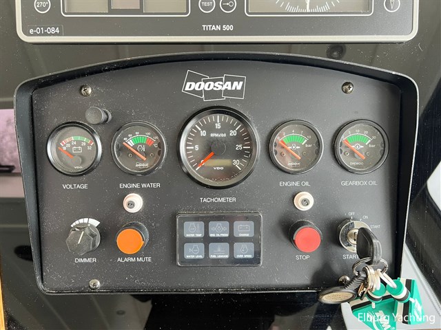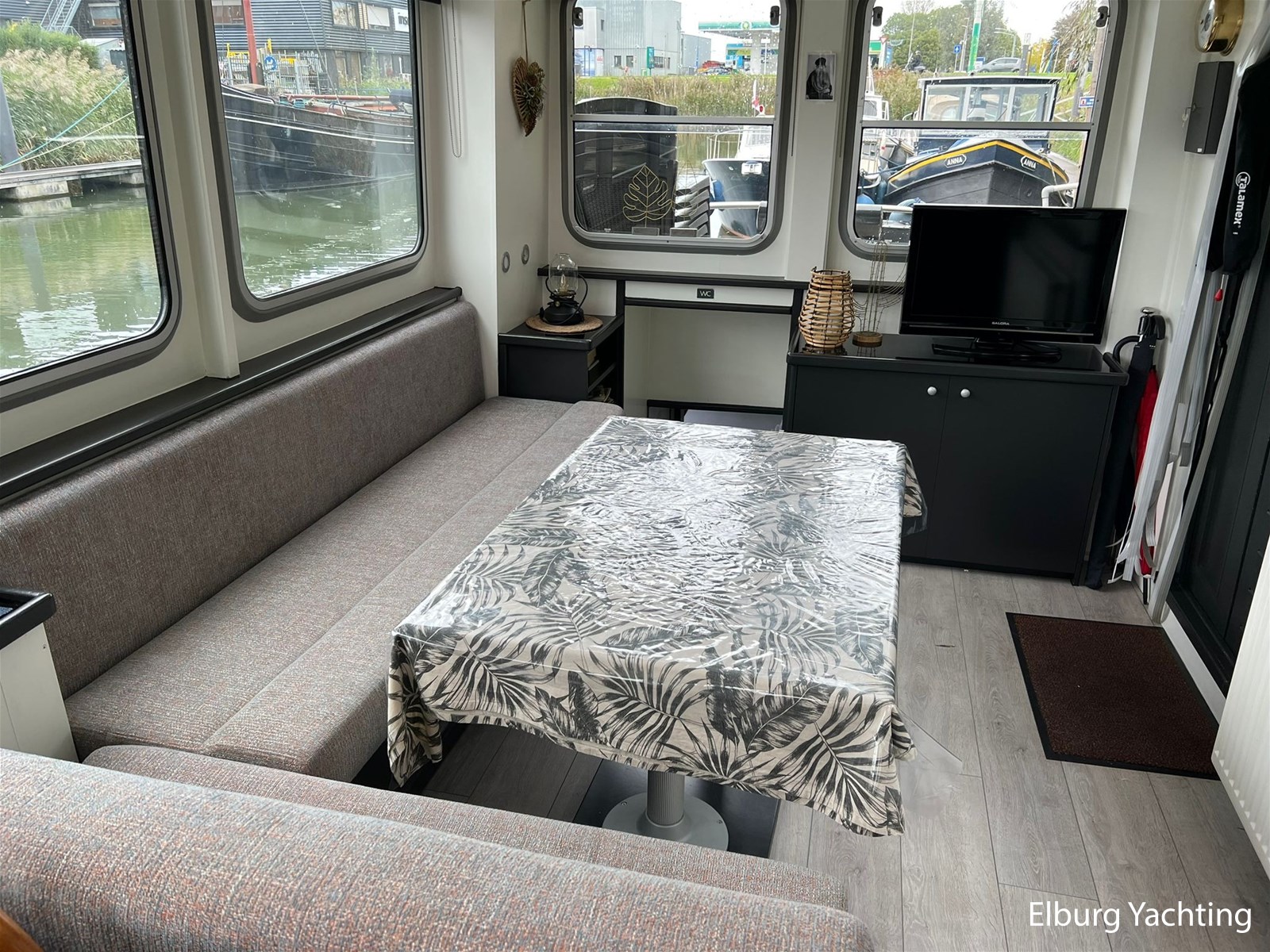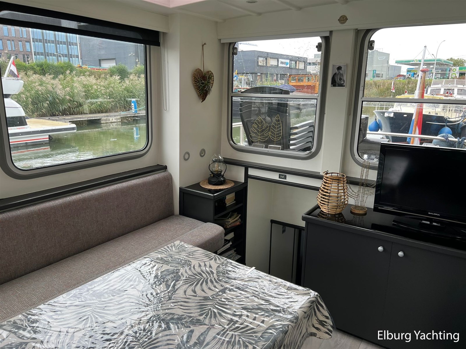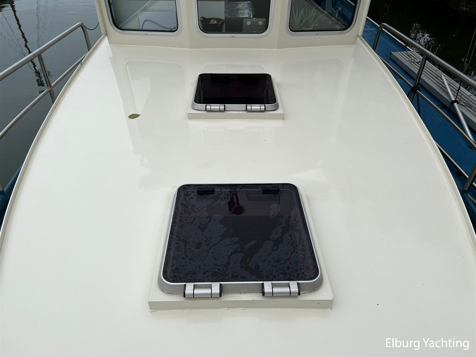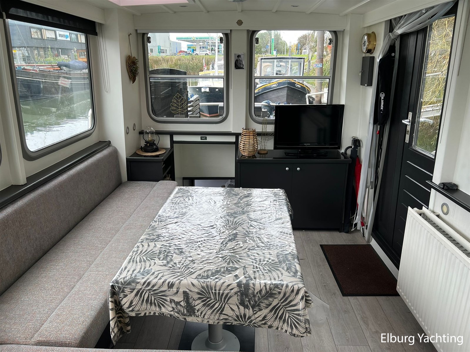 Professionele duw/sleep boot met de afwerking/intimmering van een jacht. Het schip is CVO gekeurd en is voorzien van een Europanummer. De centrale salon/stuurhuis is via een SB-zijdeur toegankelijk, de dinette biedt plaats voor 6 personen, de stuurbank is in hoogte elektrisch verstelbaar en de rugleuning is om te klappen zodat deze bij de dinette tafel betrokken kan worden, professioneel ingerichte stuurstand, follow-up besturing, tanks met mangaten, diverse ramen en patrijspoorten te openen voor extra ventilatie, dubbele r.v.s. reling rondom, afgesloten motorkamer, dekwaspomp, rubberen stootlijst rondom. Bij particuliere verkoop wordt het schip inclusief BTW verkocht. Voor vragen en/of het maken van een afspraak bent u 7 dagen per week van harte welkom bij Elburg Yachting.