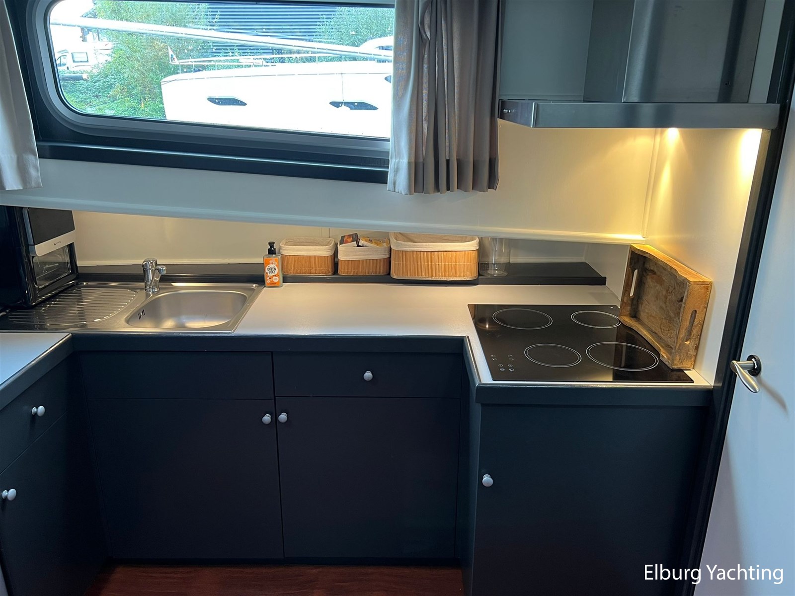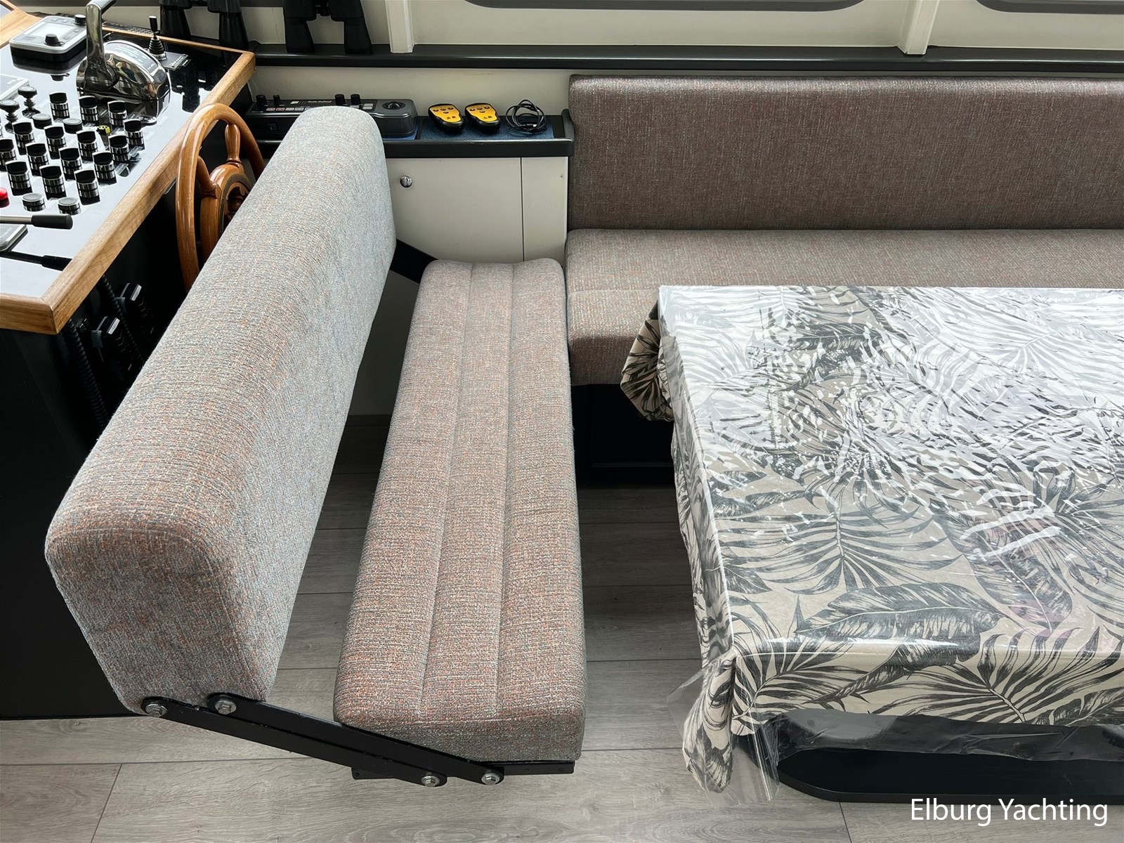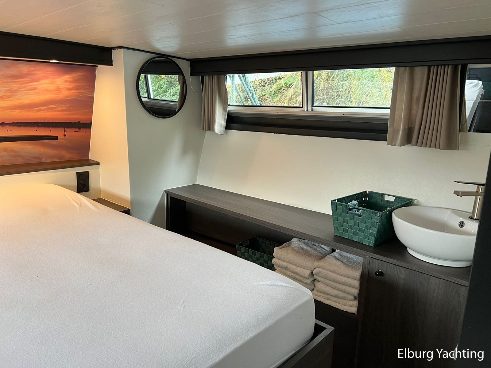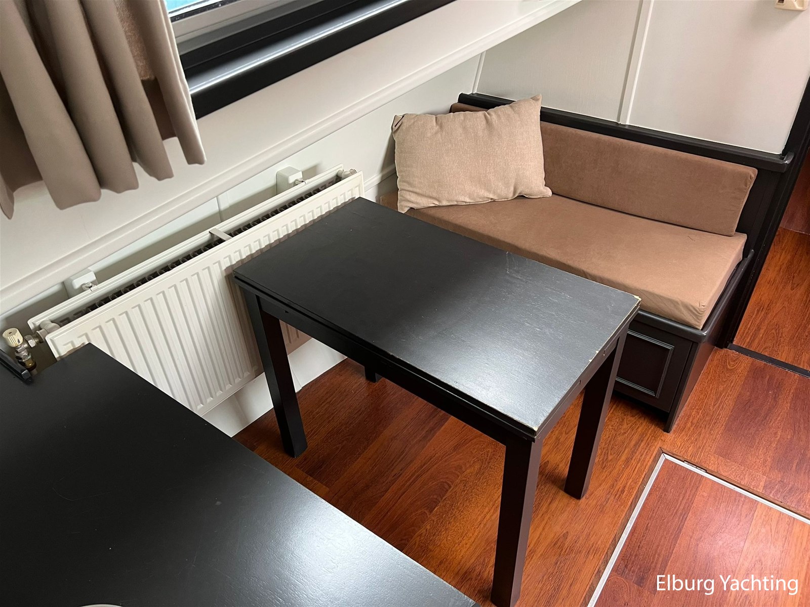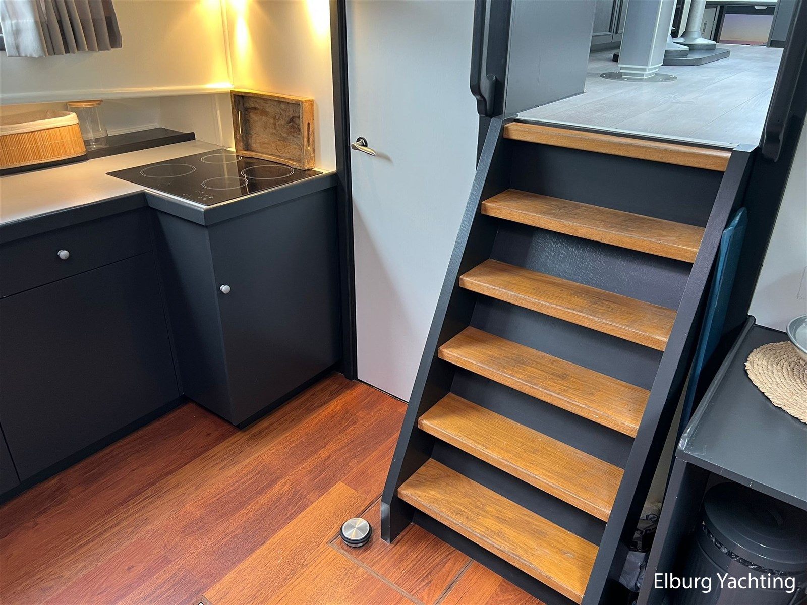 Professionele duw/sleep boot met de afwerking/intimmering van een jacht. Het schip is CVO gekeurd en is voorzien van een Europanummer. De centrale salon/stuurhuis is via een SB-zijdeur toegankelijk, de dinette biedt plaats voor 6 personen, de stuurbank is in hoogte elektrisch verstelbaar en de rugleuning is om te klappen zodat deze bij de dinette tafel betrokken kan worden, professioneel ingerichte stuurstand, follow-up besturing, tanks met mangaten, diverse ramen en patrijspoorten te openen voor extra ventilatie, dubbele r.v.s. reling rondom, afgesloten motorkamer, dekwaspomp, rubberen stootlijst rondom. Bij particuliere verkoop wordt het schip inclusief BTW verkocht. Voor vragen en/of het maken van een afspraak bent u 7 dagen per week van harte welkom bij Elburg Yachting.