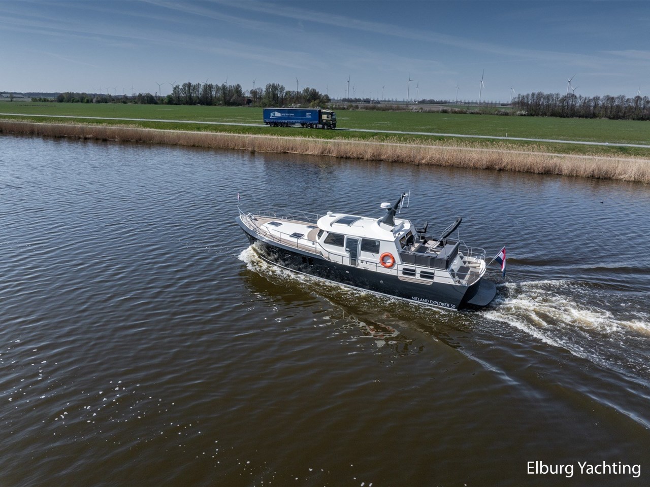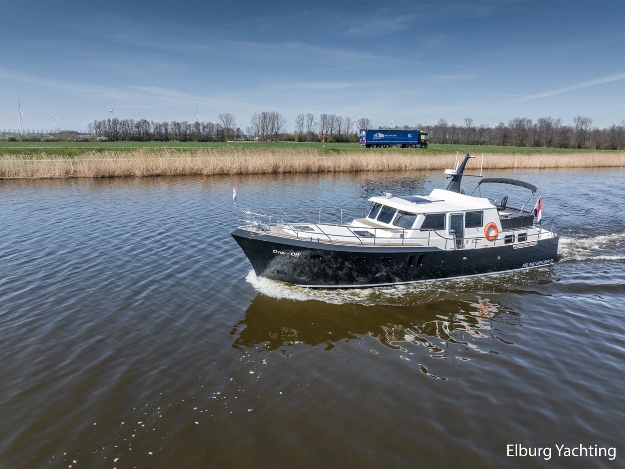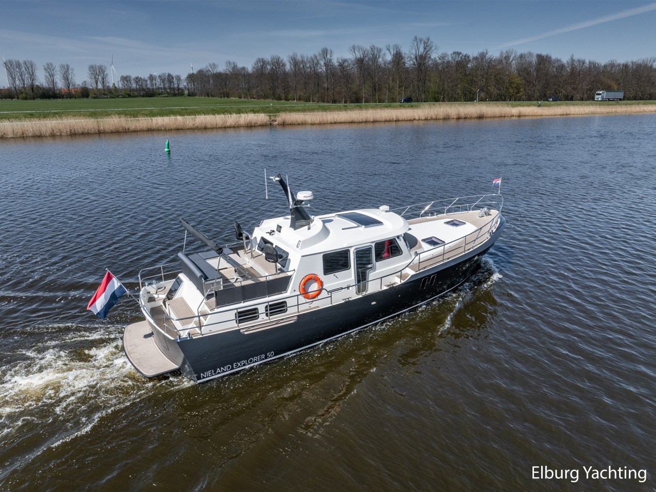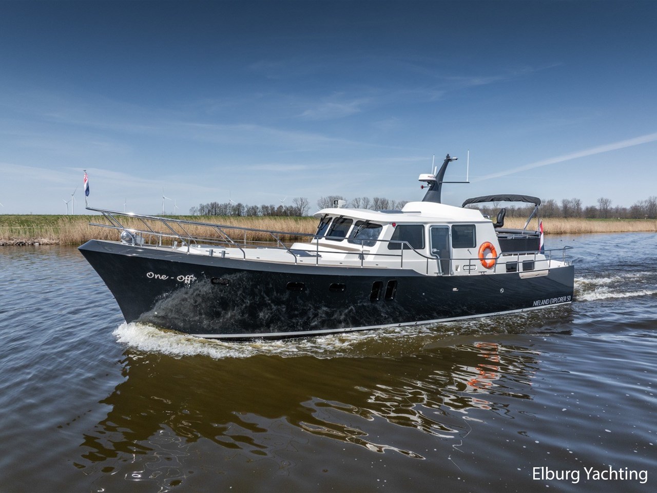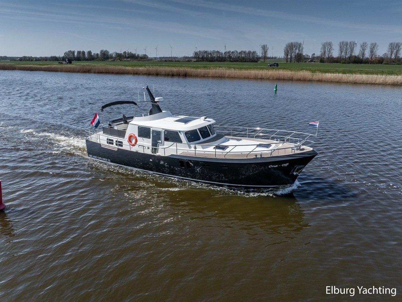 Waanzinnig gebouwde Nieland Explorer 50 door DSA Yachts - Ossenzijl (gebouwd in 2020/2021 en opgeleverd in 2022). Deze fraaie verschijning op het water kenmerkt haar naam "One Off" met verve. Geheel het jacht is doordacht en er is nergens op bezuinigd tijdens het bouwproces. Denk hierbij aan de ruimtelijke indeling van dit jacht in combinatie met de geringe diepgang (ca. 0.98 meter) en de fraaie uitstraling. Rondom is het jacht voorzien van een prachtig en onderhoudsarm Flexiteak dek met een prachtige rvs zeerailing, rvs bolders, dubbelarmige ruitenwissers, een elektrisch neerlaatbare mast, 2 te openen deuren in de spiegel richting het zwemplateau, inklapbare zwemtrap, bimini bij de buitenstuurstand en een ruimtelijk dek met brede gangboorden en voldoende zitgelegenheid. Het vaste stuurhuis is royaal opgezet met rondom goed zicht, genoeg zitgelegenheid, twee zijdeuren naar de gangboorden, Webasto elektrisch schuifdak met muggenhor en een fraaie stuurstand met uitgebreid navigatieapparatuur en een Recaro stuurstoel. Vanuit het vaste stuurhuis is de gezellige salon eenvoudig te benaderen. In de salon bevindt zich een comfortabele zithoek, deur naar het achterdek en de moderne kombuis met hoogwaardig Siemens apparatuur (inductiekookplaat met geïntegreerde afzuiging + vaatwasser + oven/magnetron), Bodega wijnkoeler, de kombuis beschikt over een prachtig granieten aanrechtblad. Vanuit het stuurhuis zijn de twee hutten te benaderen. De master bedroom is aan de voorzijde van het jacht gesitueerd en beschikt over een prachtig vrijstaand tweepersoons bed met veel kastruimte en een royale natte cel met elektrisch toilet, douchecabine, wastafel met granieten blad en kastruimte. De gastenhut beschikt over een tweepersoons vast bed, kastruimte en een tweede natte cel met elektrisch toilet, douchecabine en wastafel met granieten blad. In de gang is een wasruimte gesitueerd met Siemens wasmachine/droger. Door het gehele jacht valt het chique Amerikaans Notenhout interieur op in combinatie met de indirecte LED verlichting. Dit jacht is robuust gebouwd, gezellig vormgegeven en beschikt over een geringe doorvaarthoogte met gestreken mast (ca. 3.60 meter) - een geringere doorvaarthoogte is in overleg te realiseren. Het jacht is eventueel vaarbewijsvrij te varen. Voor vragen en/of het maken van een afspraak bent u 7 dagen per week van harte welkom bij Elburg Yachting