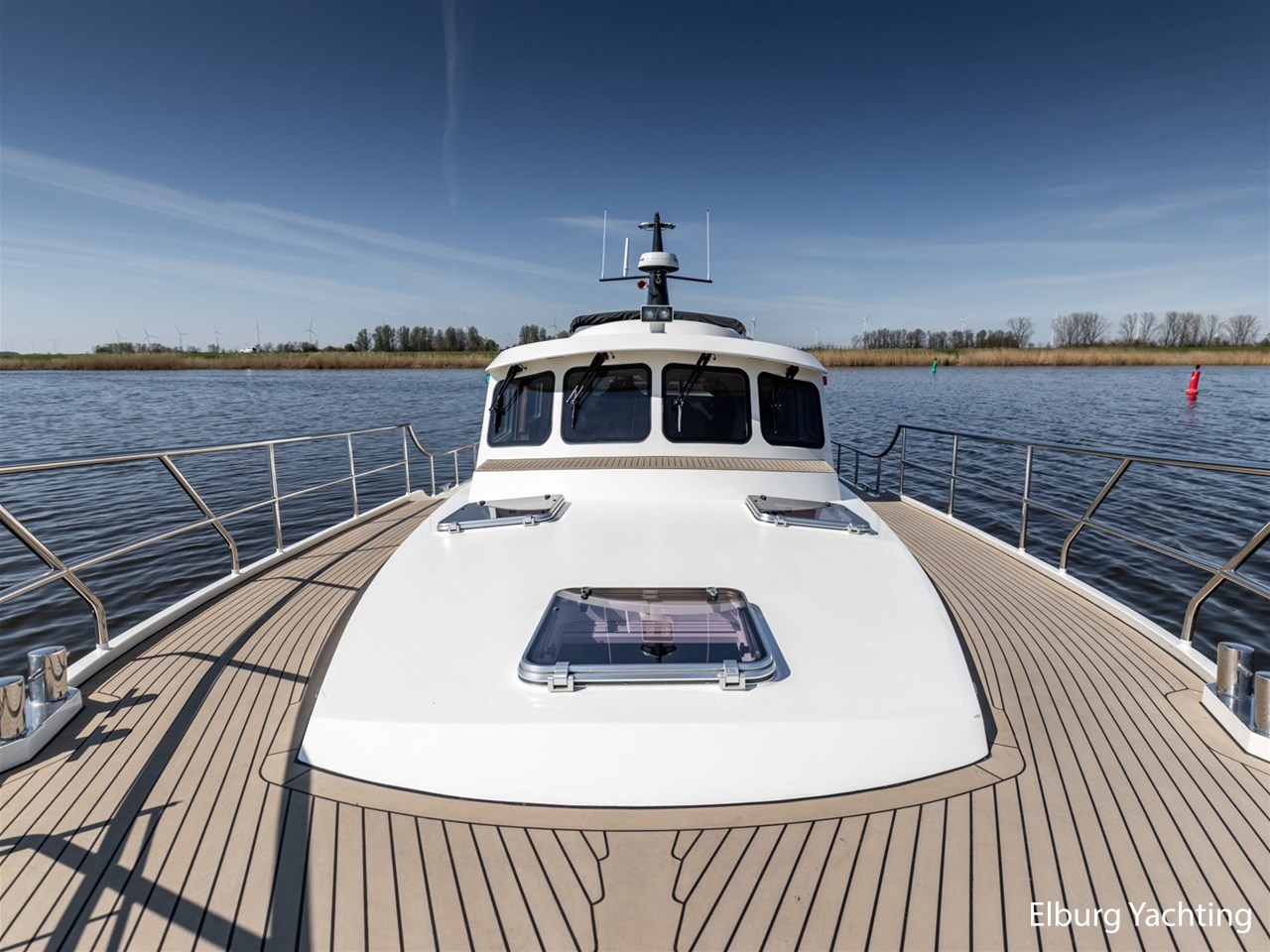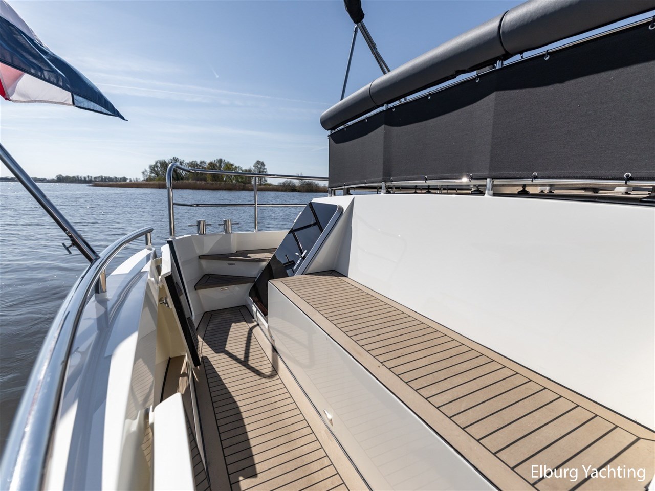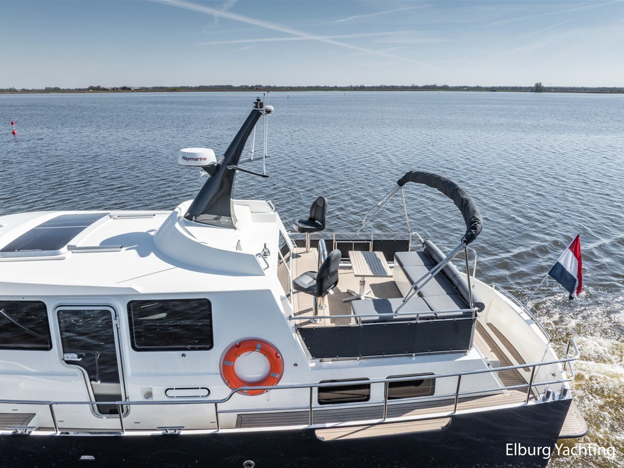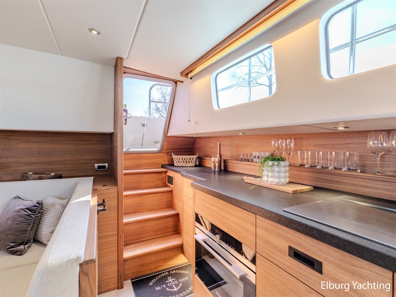 Waanzinnig gebouwde Nieland Explorer 50 door DSA Yachts - Ossenzijl (gebouwd in 2020/2021 en opgeleverd in 2022). Deze fraaie verschijning op het water kenmerkt haar naam "One Off" met verve. Geheel het jacht is doordacht en er is nergens op bezuinigd tijdens het bouwproces. Denk hierbij aan de ruimtelijke indeling van dit jacht in combinatie met de geringe diepgang (ca. 0.98 meter) en de fraaie uitstraling. Rondom is het jacht voorzien van een prachtig en onderhoudsarm Flexiteak dek met een prachtige rvs zeerailing, rvs bolders, dubbelarmige ruitenwissers, een elektrisch neerlaatbare mast, 2 te openen deuren in de spiegel richting het zwemplateau, inklapbare zwemtrap, bimini bij de buitenstuurstand en een ruimtelijk dek met brede gangboorden en voldoende zitgelegenheid. Het vaste stuurhuis is royaal opgezet met rondom goed zicht, genoeg zitgelegenheid, twee zijdeuren naar de gangboorden, Webasto elektrisch schuifdak met muggenhor en een fraaie stuurstand met uitgebreid navigatieapparatuur en een Recaro stuurstoel. Vanuit het vaste stuurhuis is de gezellige salon eenvoudig te benaderen. In de salon bevindt zich een comfortabele zithoek, deur naar het achterdek en de moderne kombuis met hoogwaardig Siemens apparatuur (inductiekookplaat met geïntegreerde afzuiging + vaatwasser + oven/magnetron), Bodega wijnkoeler, de kombuis beschikt over een prachtig granieten aanrechtblad. Vanuit het stuurhuis zijn de twee hutten te benaderen. De master bedroom is aan de voorzijde van het jacht gesitueerd en beschikt over een prachtig vrijstaand tweepersoons bed met veel kastruimte en een royale natte cel met elektrisch toilet, douchecabine, wastafel met granieten blad en kastruimte. De gastenhut beschikt over een tweepersoons vast bed, kastruimte en een tweede natte cel met elektrisch toilet, douchecabine en wastafel met granieten blad. In de gang is een wasruimte gesitueerd met Siemens wasmachine/droger. Door het gehele jacht valt het chique Amerikaans Notenhout interieur op in combinatie met de indirecte LED verlichting. Dit jacht is robuust gebouwd, gezellig vormgegeven en beschikt over een geringe doorvaarthoogte met gestreken mast (ca. 3.60 meter) - een geringere doorvaarthoogte is in overleg te realiseren. Het jacht is eventueel vaarbewijsvrij te varen. Voor vragen en/of het maken van een afspraak bent u 7 dagen per week van harte welkom bij Elburg Yachting