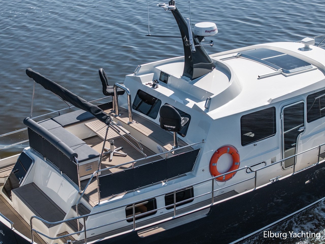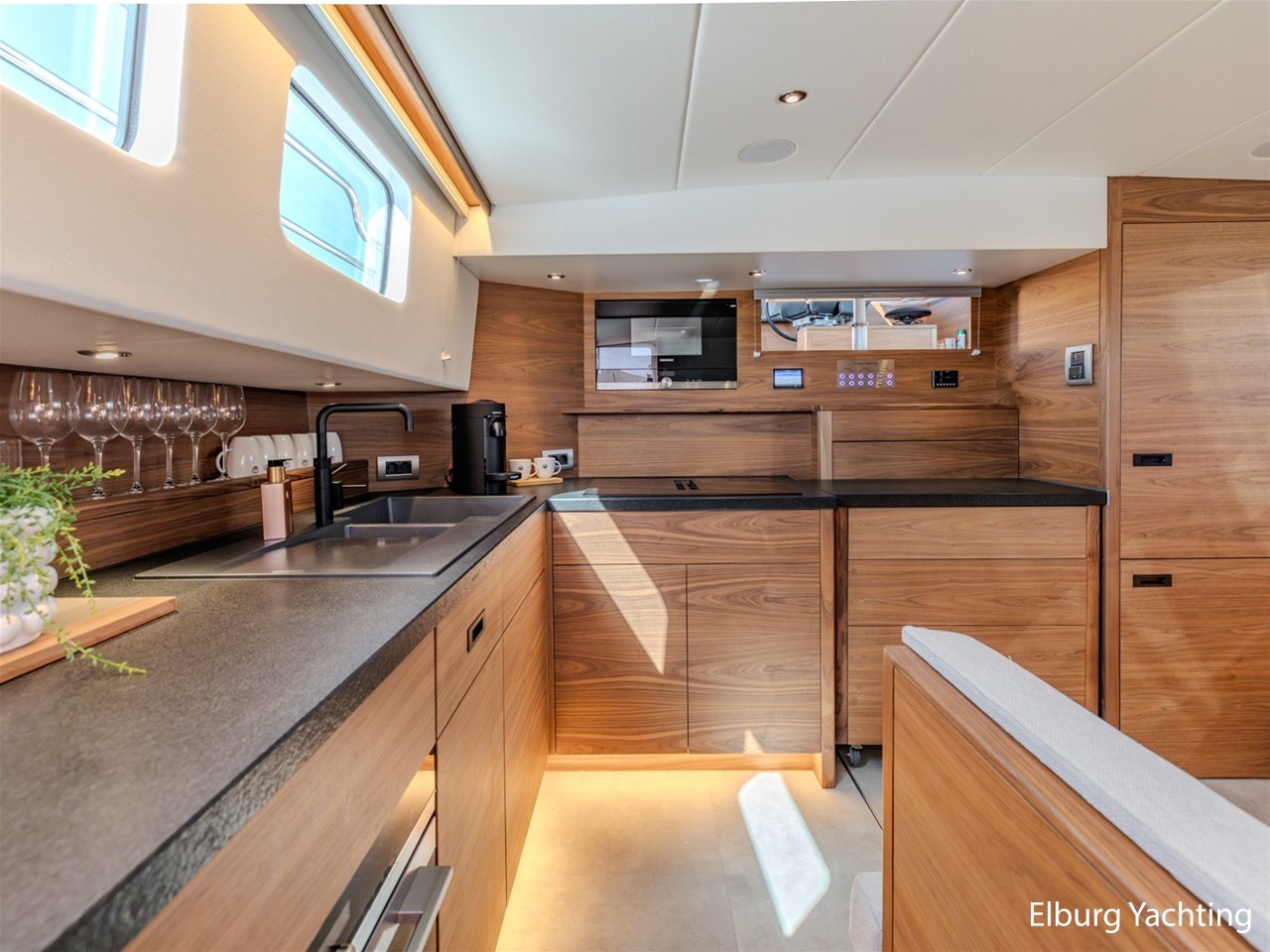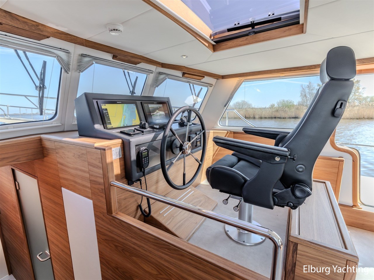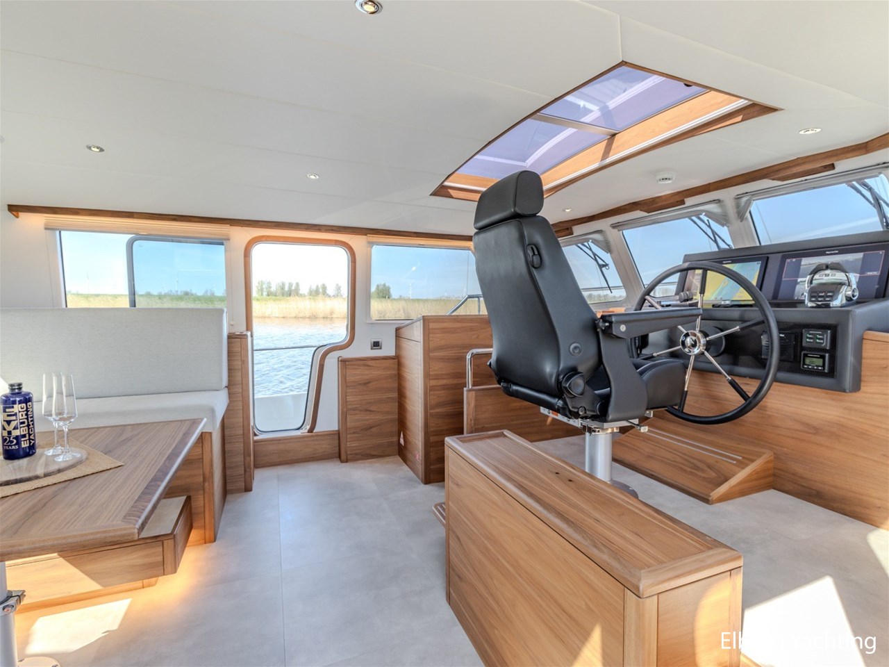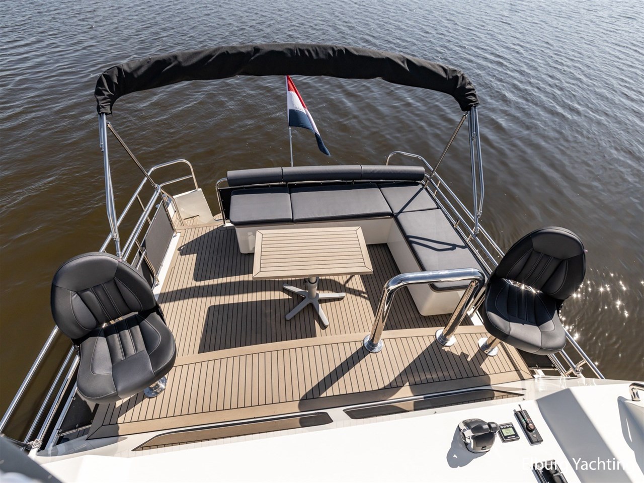 Waanzinnig gebouwde Nieland Explorer 50 door DSA Yachts - Ossenzijl (gebouwd in 2020/2021 en opgeleverd in 2022). Deze fraaie verschijning op het water kenmerkt haar naam "One Off" met verve. Geheel het jacht is doordacht en er is nergens op bezuinigd tijdens het bouwproces. Denk hierbij aan de ruimtelijke indeling van dit jacht in combinatie met de geringe diepgang (ca. 0.98 meter) en de fraaie uitstraling. Rondom is het jacht voorzien van een prachtig en onderhoudsarm Flexiteak dek met een prachtige rvs zeerailing, rvs bolders, dubbelarmige ruitenwissers, een elektrisch neerlaatbare mast, 2 te openen deuren in de spiegel richting het zwemplateau, inklapbare zwemtrap, bimini bij de buitenstuurstand en een ruimtelijk dek met brede gangboorden en voldoende zitgelegenheid. Het vaste stuurhuis is royaal opgezet met rondom goed zicht, genoeg zitgelegenheid, twee zijdeuren naar de gangboorden, Webasto elektrisch schuifdak met muggenhor en een fraaie stuurstand met uitgebreid navigatieapparatuur en een Recaro stuurstoel. Vanuit het vaste stuurhuis is de gezellige salon eenvoudig te benaderen. In de salon bevindt zich een comfortabele zithoek, deur naar het achterdek en de moderne kombuis met hoogwaardig Siemens apparatuur (inductiekookplaat met geïntegreerde afzuiging + vaatwasser + oven/magnetron), Bodega wijnkoeler, de kombuis beschikt over een prachtig granieten aanrechtblad. Vanuit het stuurhuis zijn de twee hutten te benaderen. De master bedroom is aan de voorzijde van het jacht gesitueerd en beschikt over een prachtig vrijstaand tweepersoons bed met veel kastruimte en een royale natte cel met elektrisch toilet, douchecabine, wastafel met granieten blad en kastruimte. De gastenhut beschikt over een tweepersoons vast bed, kastruimte en een tweede natte cel met elektrisch toilet, douchecabine en wastafel met granieten blad. In de gang is een wasruimte gesitueerd met Siemens wasmachine/droger. Door het gehele jacht valt het chique Amerikaans Notenhout interieur op in combinatie met de indirecte LED verlichting. Dit jacht is robuust gebouwd, gezellig vormgegeven en beschikt over een geringe doorvaarthoogte met gestreken mast (ca. 3.60 meter) - een geringere doorvaarthoogte is in overleg te realiseren. Het jacht is eventueel vaarbewijsvrij te varen. Voor vragen en/of het maken van een afspraak bent u 7 dagen per week van harte welkom bij Elburg Yachting