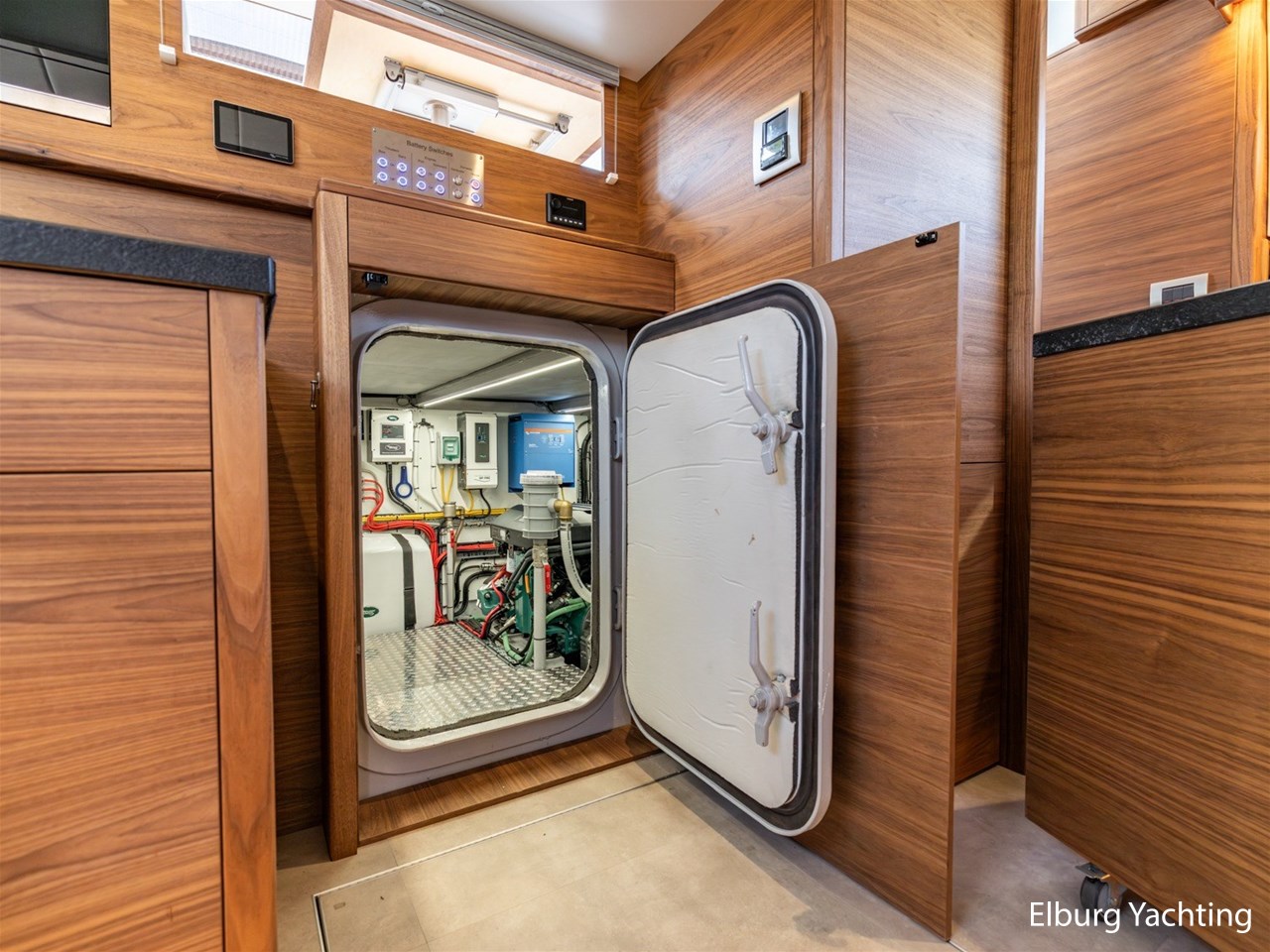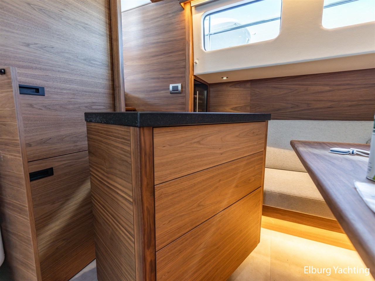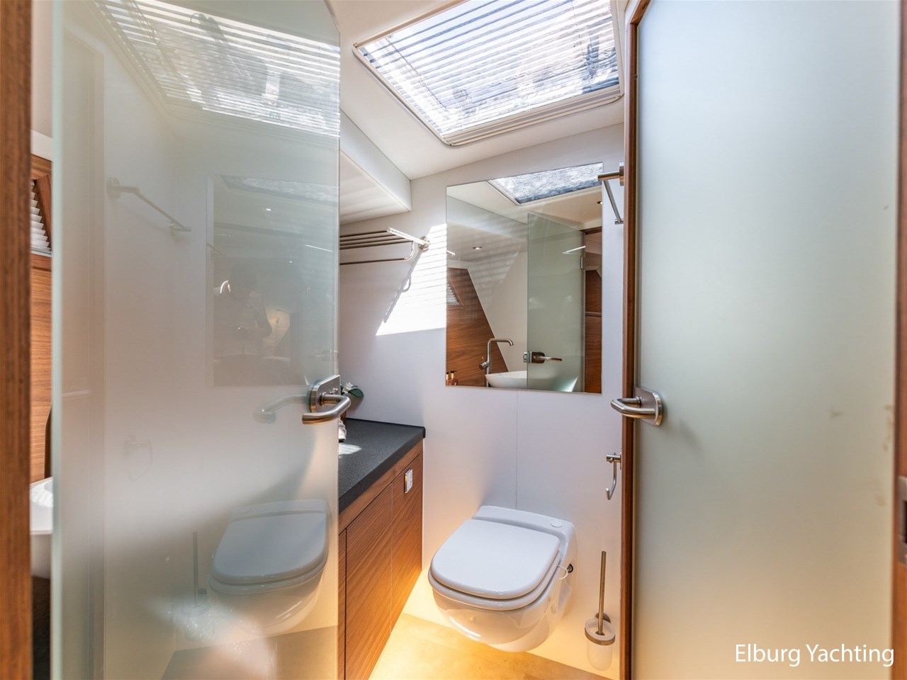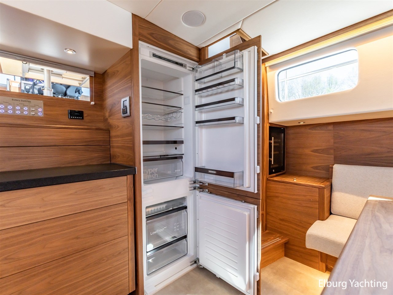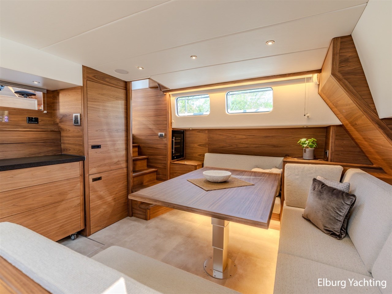 Waanzinnig gebouwde Nieland Explorer 50 door DSA Yachts - Ossenzijl (gebouwd in 2020/2021 en opgeleverd in 2022). Deze fraaie verschijning op het water kenmerkt haar naam "One Off" met verve. Geheel het jacht is doordacht en er is nergens op bezuinigd tijdens het bouwproces. Denk hierbij aan de ruimtelijke indeling van dit jacht in combinatie met de geringe diepgang (ca. 0.98 meter) en de fraaie uitstraling. Rondom is het jacht voorzien van een prachtig en onderhoudsarm Flexiteak dek met een prachtige rvs zeerailing, rvs bolders, dubbelarmige ruitenwissers, een elektrisch neerlaatbare mast, 2 te openen deuren in de spiegel richting het zwemplateau, inklapbare zwemtrap, bimini bij de buitenstuurstand en een ruimtelijk dek met brede gangboorden en voldoende zitgelegenheid. Het vaste stuurhuis is royaal opgezet met rondom goed zicht, genoeg zitgelegenheid, twee zijdeuren naar de gangboorden, Webasto elektrisch schuifdak met muggenhor en een fraaie stuurstand met uitgebreid navigatieapparatuur en een Recaro stuurstoel. Vanuit het vaste stuurhuis is de gezellige salon eenvoudig te benaderen. In de salon bevindt zich een comfortabele zithoek, deur naar het achterdek en de moderne kombuis met hoogwaardig Siemens apparatuur (inductiekookplaat met geïntegreerde afzuiging + vaatwasser + oven/magnetron), Bodega wijnkoeler, de kombuis beschikt over een prachtig granieten aanrechtblad. Vanuit het stuurhuis zijn de twee hutten te benaderen. De master bedroom is aan de voorzijde van het jacht gesitueerd en beschikt over een prachtig vrijstaand tweepersoons bed met veel kastruimte en een royale natte cel met elektrisch toilet, douchecabine, wastafel met granieten blad en kastruimte. De gastenhut beschikt over een tweepersoons vast bed, kastruimte en een tweede natte cel met elektrisch toilet, douchecabine en wastafel met granieten blad. In de gang is een wasruimte gesitueerd met Siemens wasmachine/droger. Door het gehele jacht valt het chique Amerikaans Notenhout interieur op in combinatie met de indirecte LED verlichting. Dit jacht is robuust gebouwd, gezellig vormgegeven en beschikt over een geringe doorvaarthoogte met gestreken mast (ca. 3.60 meter) - een geringere doorvaarthoogte is in overleg te realiseren. Het jacht is eventueel vaarbewijsvrij te varen. Voor vragen en/of het maken van een afspraak bent u 7 dagen per week van harte welkom bij Elburg Yachting