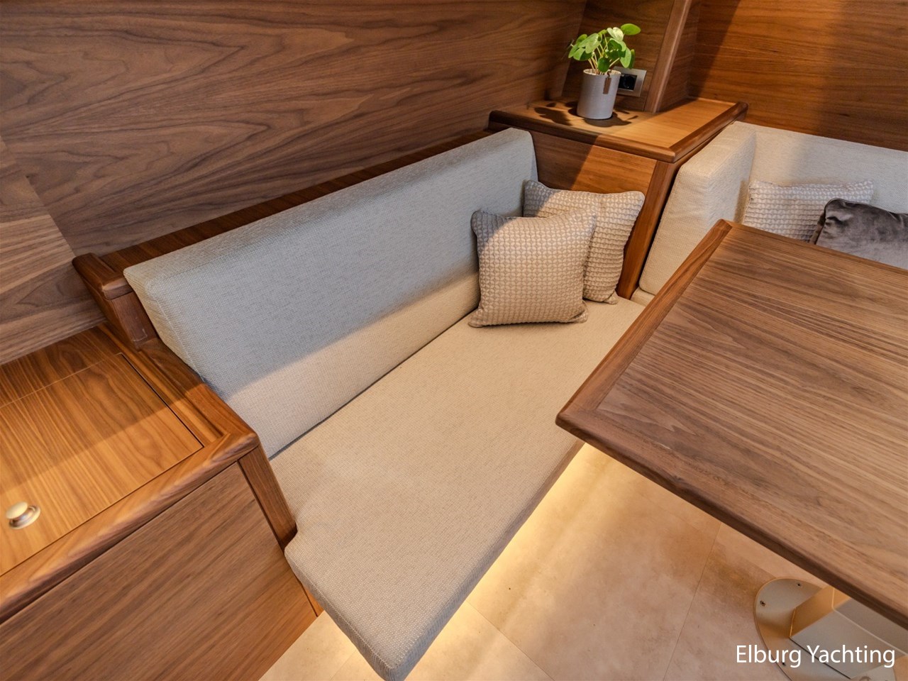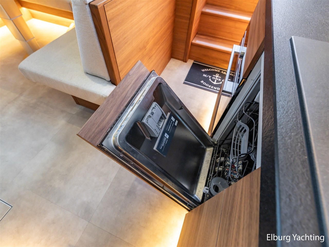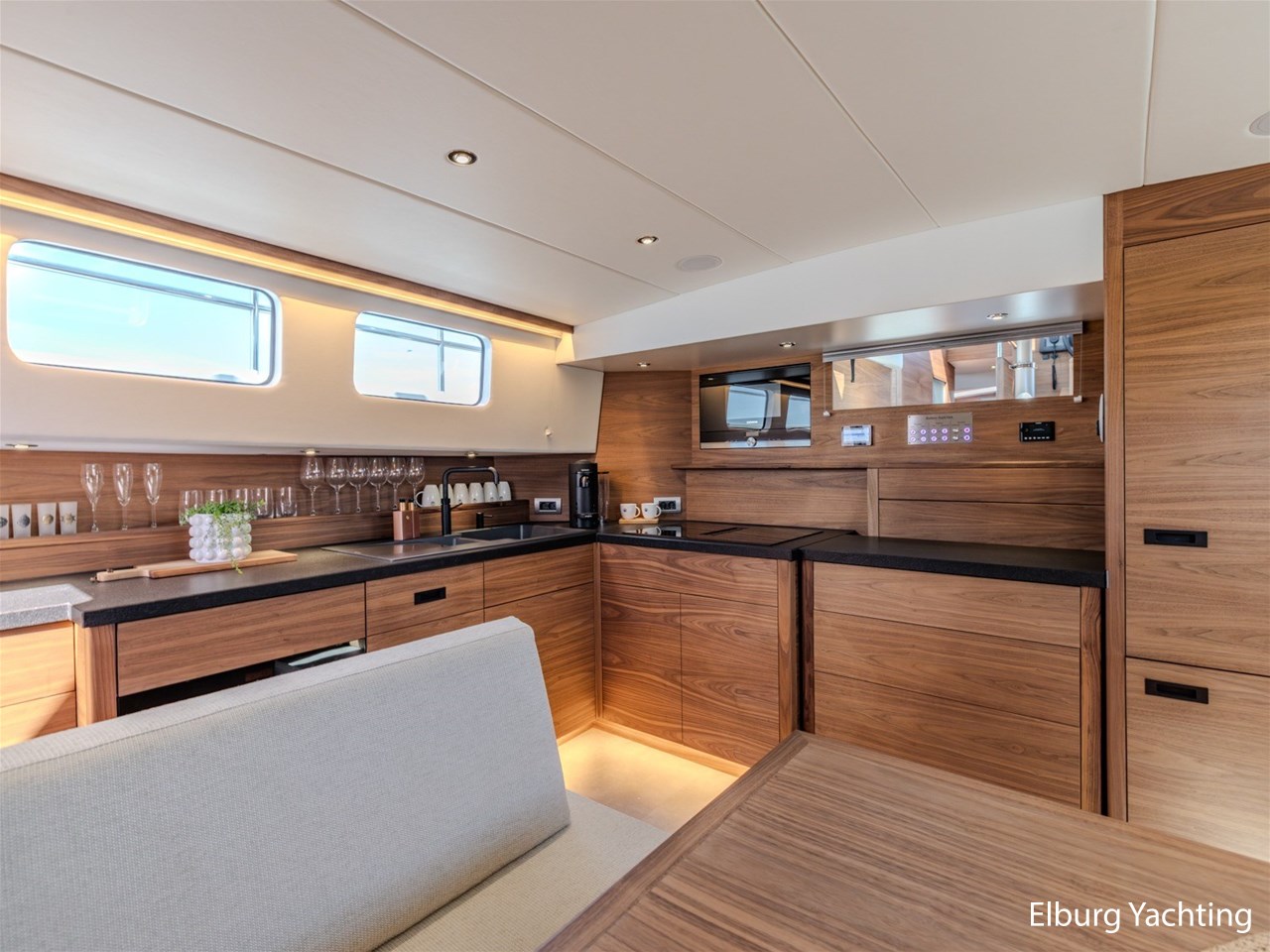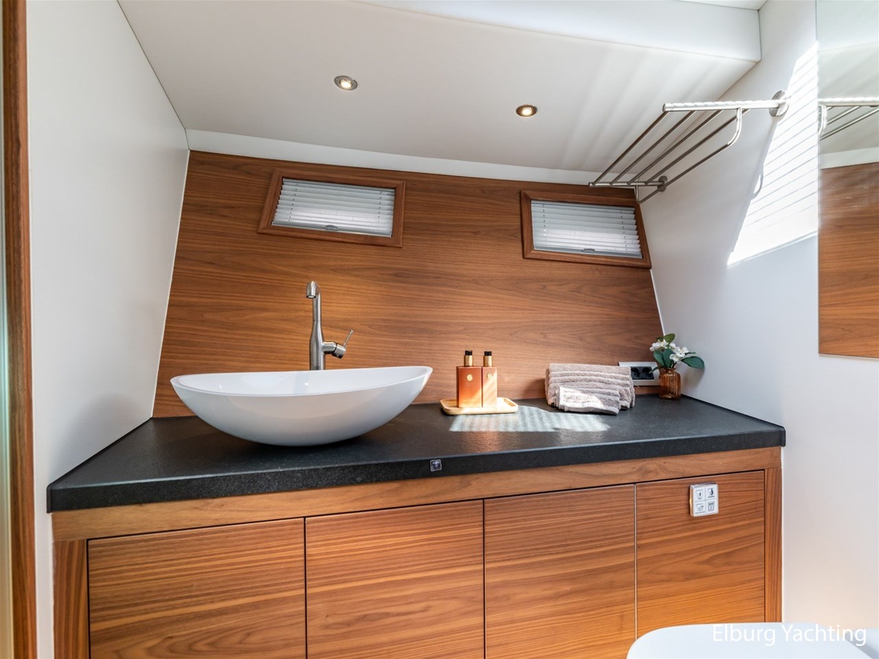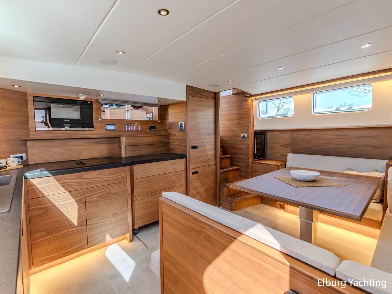 Waanzinnig gebouwde Nieland Explorer 50 door DSA Yachts - Ossenzijl (gebouwd in 2020/2021 en opgeleverd in 2022). Deze fraaie verschijning op het water kenmerkt haar naam "One Off" met verve. Geheel het jacht is doordacht en er is nergens op bezuinigd tijdens het bouwproces. Denk hierbij aan de ruimtelijke indeling van dit jacht in combinatie met de geringe diepgang (ca. 0.98 meter) en de fraaie uitstraling. Rondom is het jacht voorzien van een prachtig en onderhoudsarm Flexiteak dek met een prachtige rvs zeerailing, rvs bolders, dubbelarmige ruitenwissers, een elektrisch neerlaatbare mast, 2 te openen deuren in de spiegel richting het zwemplateau, inklapbare zwemtrap, bimini bij de buitenstuurstand en een ruimtelijk dek met brede gangboorden en voldoende zitgelegenheid. Het vaste stuurhuis is royaal opgezet met rondom goed zicht, genoeg zitgelegenheid, twee zijdeuren naar de gangboorden, Webasto elektrisch schuifdak met muggenhor en een fraaie stuurstand met uitgebreid navigatieapparatuur en een Recaro stuurstoel. Vanuit het vaste stuurhuis is de gezellige salon eenvoudig te benaderen. In de salon bevindt zich een comfortabele zithoek, deur naar het achterdek en de moderne kombuis met hoogwaardig Siemens apparatuur (inductiekookplaat met geïntegreerde afzuiging + vaatwasser + oven/magnetron), Bodega wijnkoeler, de kombuis beschikt over een prachtig granieten aanrechtblad. Vanuit het stuurhuis zijn de twee hutten te benaderen. De master bedroom is aan de voorzijde van het jacht gesitueerd en beschikt over een prachtig vrijstaand tweepersoons bed met veel kastruimte en een royale natte cel met elektrisch toilet, douchecabine, wastafel met granieten blad en kastruimte. De gastenhut beschikt over een tweepersoons vast bed, kastruimte en een tweede natte cel met elektrisch toilet, douchecabine en wastafel met granieten blad. In de gang is een wasruimte gesitueerd met Siemens wasmachine/droger. Door het gehele jacht valt het chique Amerikaans Notenhout interieur op in combinatie met de indirecte LED verlichting. Dit jacht is robuust gebouwd, gezellig vormgegeven en beschikt over een geringe doorvaarthoogte met gestreken mast (ca. 3.60 meter) - een geringere doorvaarthoogte is in overleg te realiseren. Het jacht is eventueel vaarbewijsvrij te varen. Voor vragen en/of het maken van een afspraak bent u 7 dagen per week van harte welkom bij Elburg Yachting