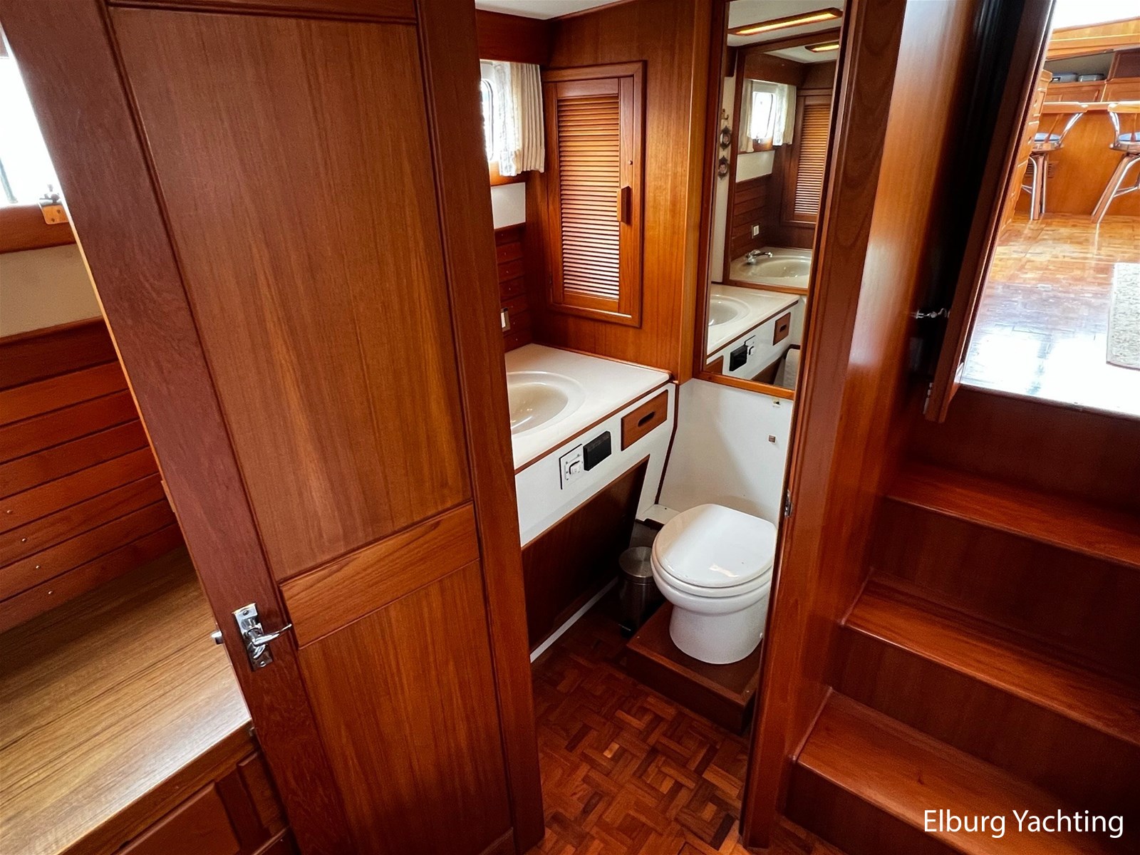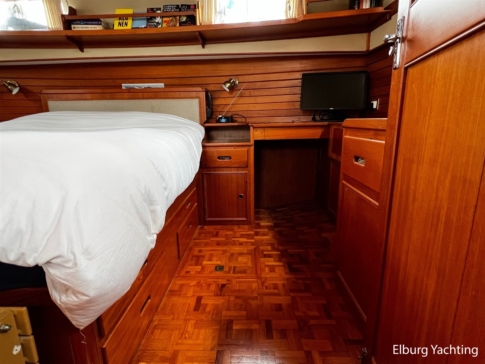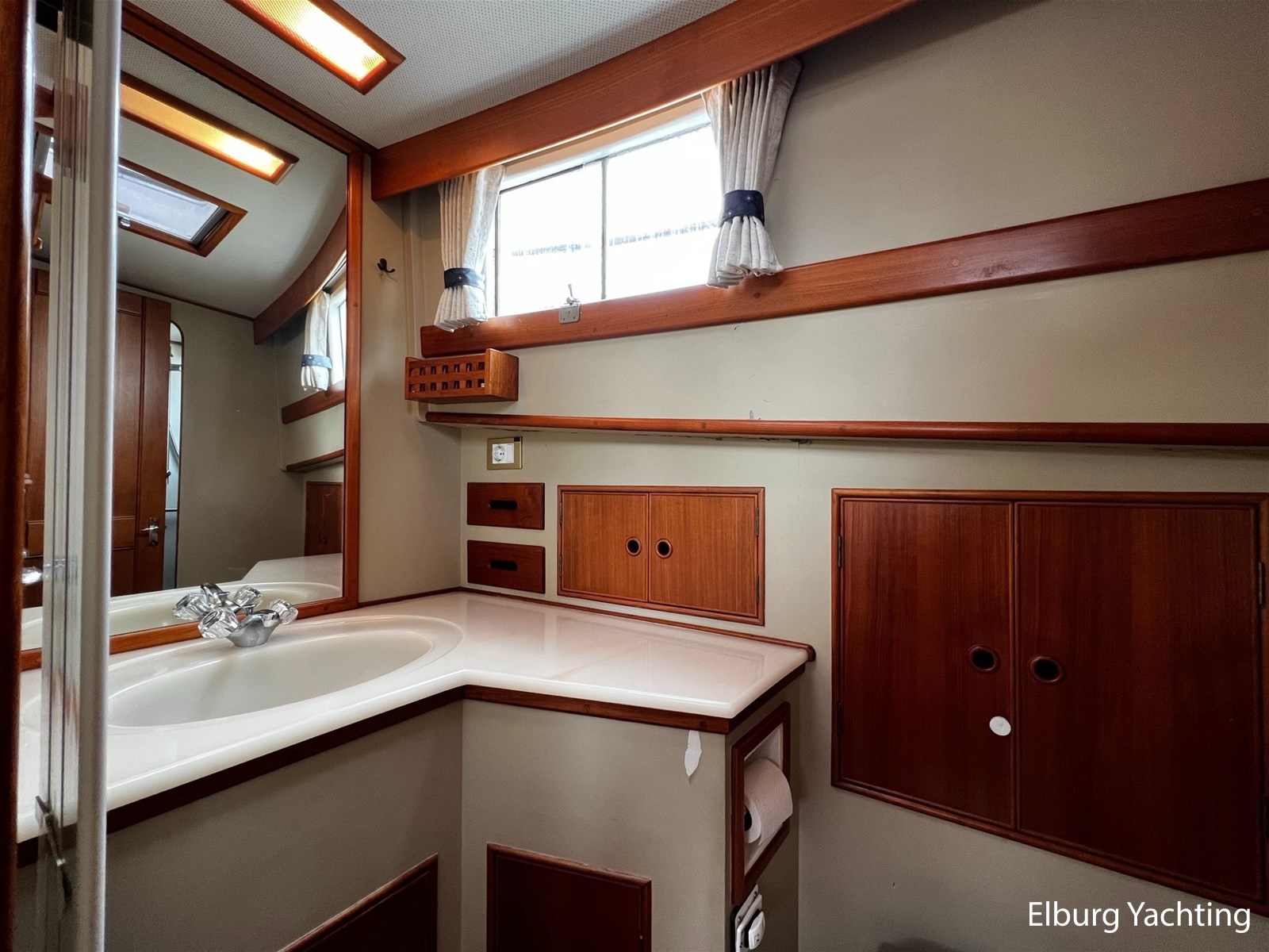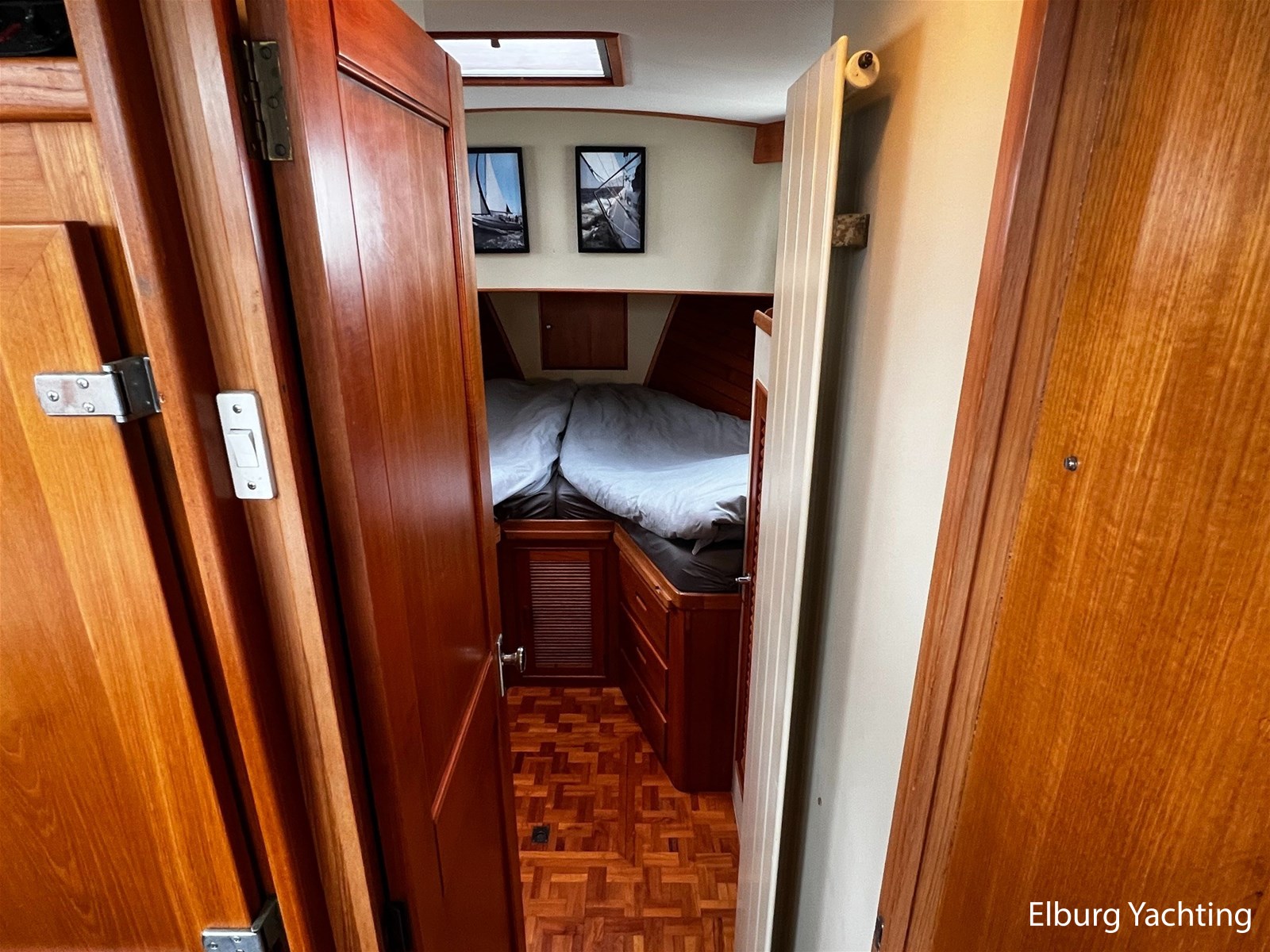 De Grand Banks 42 Motoryacht is een echte Grand Banks in zijn vaarprestaties en kwaliteitsbouw. De 'Motoryacht' uitvoering kenmerkt zich door de achterkajuit die zich rekt over de volledige breedte van het schip. Dit resulteert in een prachtig ruime 2 persoons eigenaarshut, maar biedt direct hiermee ook een groot achterdek met open verbinding naar de flybridge. De binnenstuurstand en salon zijn bereikbaar via een zijdeur in het gangboord aan zowel stuur- als bakboordzijde. De salon is ruim opgezet met diverse zitmogelijkheden en een gezellige bar om aan te ontbijten of bijvoorbeeld te werken. De kombuis is in open verbinding met de salon. De voorhut beschikt over een 1 x 2 persoons V-bed, ook is er een AEG was droog combinatie aanwezig. De badkamer in het voorschip heeft een eigen toilet en douche voorziening. In het achterschip is de eigenaarshut gesitueerd met een groot vrijstaand 2-persoonsbed. Er is bewegingsruimte rondom het bed en er is veel kastruimte beschikbaar. De toilet en douche zijn in een eigen kabine van elkaar gescheiden. Uniek voor dit schip is de centrale verwarming die via meerdere radiatoren door het gehele schip een aangename warmte verspreiden zonder het lawaai van een ventilator. Deze Grand Banks 42 Motoryacht is uitgerust met: Biminitop, geintegreerde banken op flybridge met bijbehorende kussens, TV in salon, bakskisten op het achterdek, dekwaspomp, zonneschermen voor de voorste salonramen, afdekhoes over stuurstand op flybridge, geïsoleerde vloerluiken voor toegang machinekamer, doorvaarthoogte met mast op ca. 8m, met geklapte mast ca. 5m, zonder bimini ca. 4,20m. Eind 2023 is er groot onderhoud aan beide hoofdmotoren en de generator uitgevoerd waarbij de volgende werkzaamheden zijn uitgevoerd: vervangen olie, filters, impellers, V-snaren, kleppendeksel pakking, keerkoppeling olie, 2 x koelwaterpomp vernieuwd. Ook is er nieuwe antifouling aangebracht en zijn de anodes vernieuwd. Voor vragen en/of het maken van een afspraak bent u 7 dagen per week van harte welkom bij Elburg Yachting.