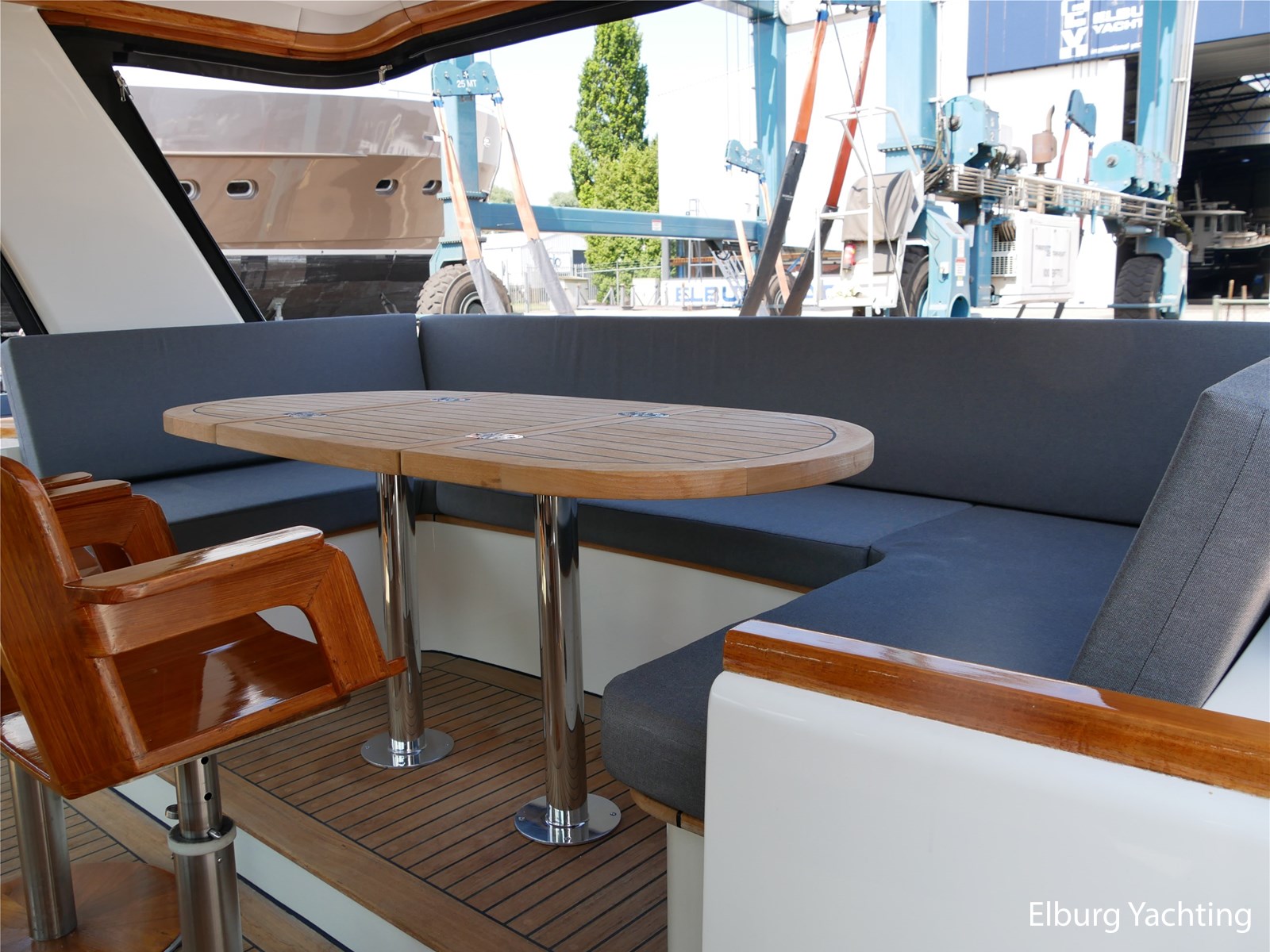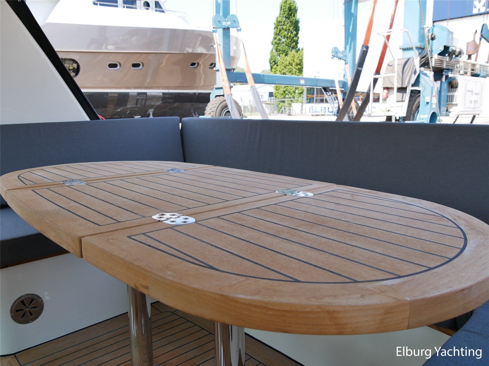 - Geintegreerd met teak dek + r.v.s. zwemtrap