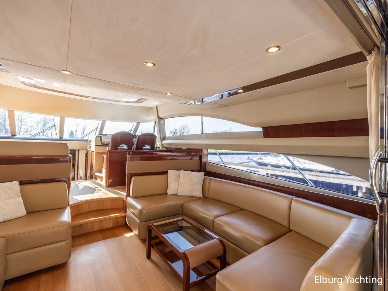 Luxueus interieur. Ruime open kuip die volledig af te sluiten is door middel van een tent en is voorzien van nieuwe bekleding (2024). Een grote r.v.s. schuifdeur naar ruime salon waardoor binnen- en buitenruimte verbonden worden. Bij binnenkomst in de salon treft u een ruime u-vormige bank aan met een TV op lift. De ruime dinette naast de stuurstand zorgt ervoor dat het mogelijk is dat de schipper in contact blijft met het gezelschap aan boord, de stuurstand beschikt over 2 luxe vaarstoelen, en een yachtcontroller afstandsbediening waardoor aan- en afmeren eenvoudig is.