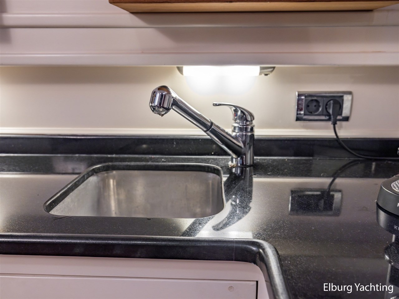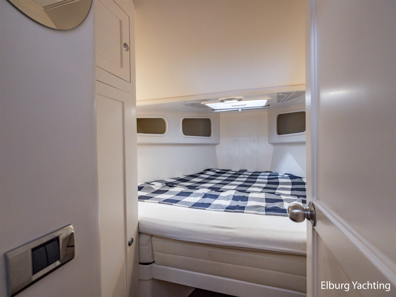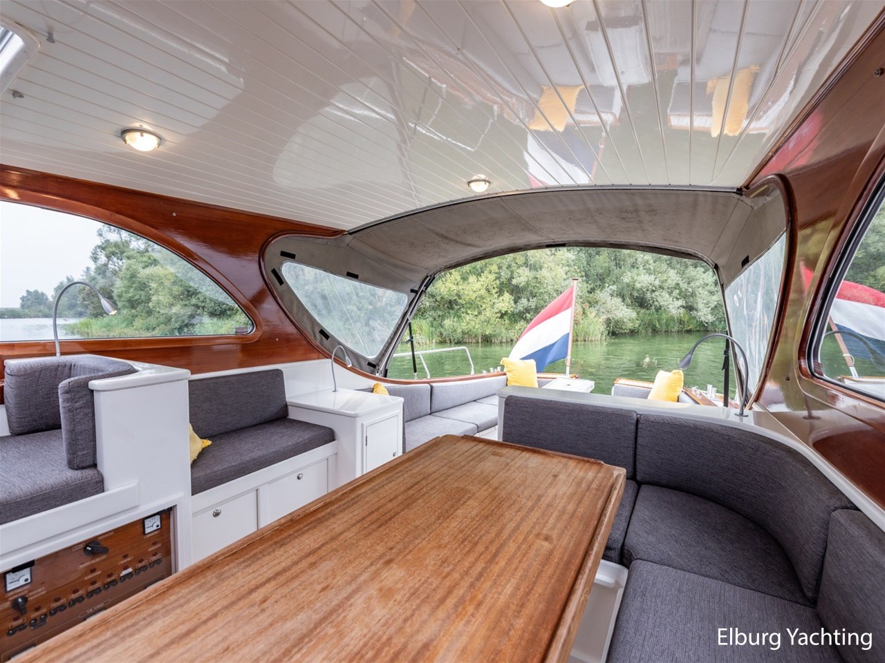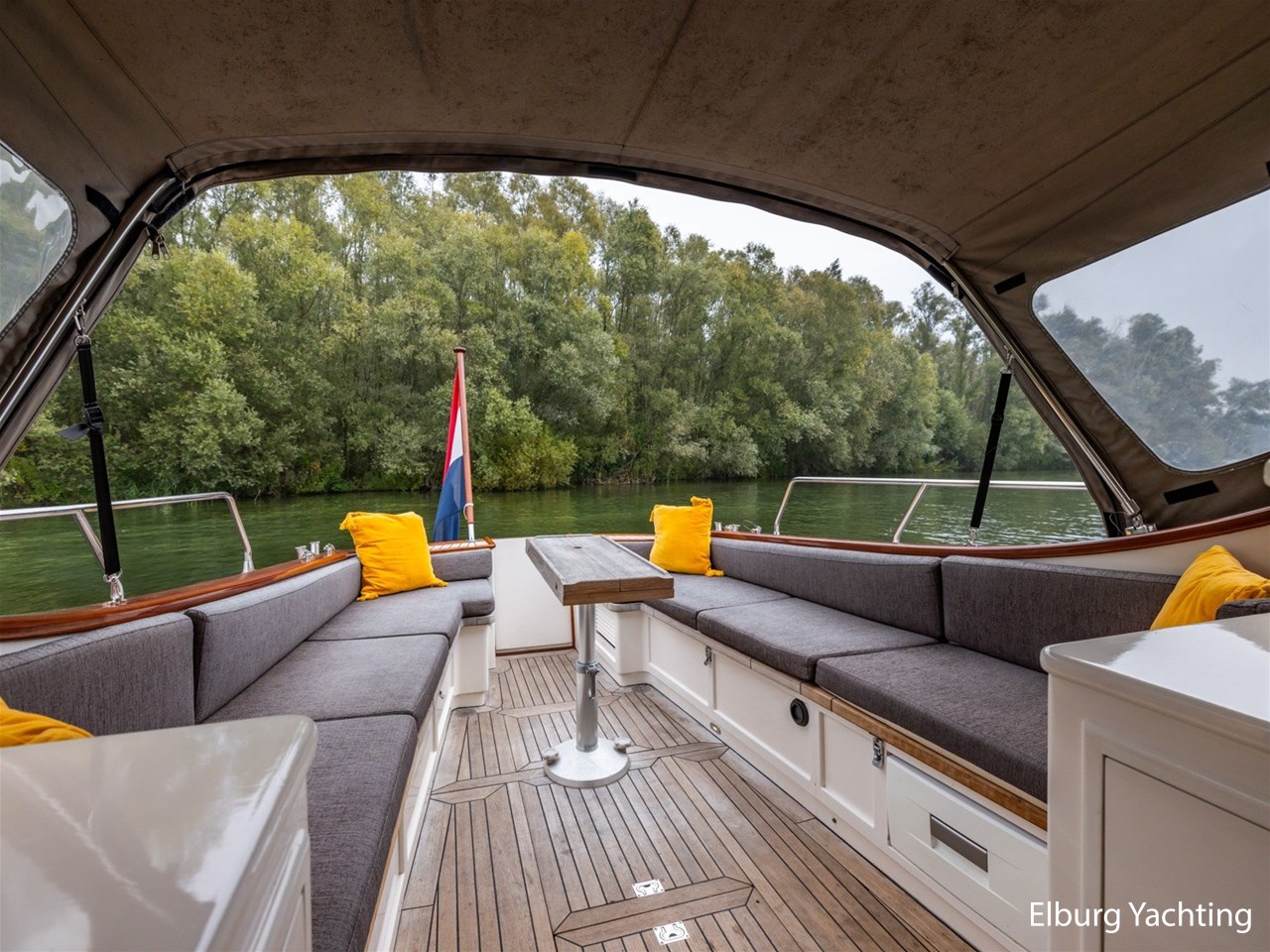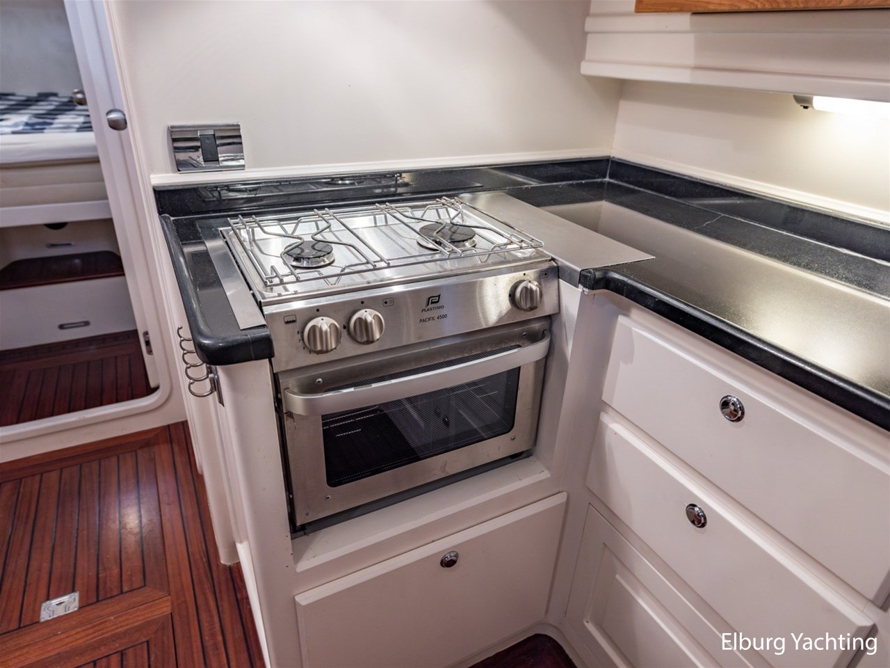 Uiterst fraaie Rapsody 40 Offshore uit bouwjaar 2002 - voorzien van een prachtig Teakdek met gelakte omlijsting en r.v.s. zeerailing. Het jacht beschikt over een prachtige klassieke lijn met moderne ingrediënten zoals de ruime open kuip en het frisse lichte interieur. Het jacht is rondom voorzien van een Teakdek en is afgewerkt met gelakt Teak (zowel de opbouw, het dek en het zwemplateau). De ruime kuip beschikt over een prettige zitgelegenheid, een ijskast en veel bergruimte onder de banken. De stuurstand met nabijgelegen dinette is gezellig gesitueerd onder het vaste dak. Het vaste dak beschikt over twee dakluiken en twee schuiframen aan de zijden. De stuurstand is overzichtelijk vormgegeven en beschikt over onder andere een functioneel Stentec navigatiesysteem, boegschroef, motorbediening en dieptemeter . Aan boord is de kombuis aan stuurboord gesitueerd met de tweede dinette aan bakboord. De kombuis is ruimtelijk georganiseerd met een Plastimo kooktoestel + oven, koelkast, spoelbak en veel kastruimte. Voorin is de eigenaarshut gesitueerd met nabijgelegen toilet en douche. De doorvaarthoogte is ca. 3.65 meter met een minimale kruiphoogte van ca. 2.70 meter. Voor vragen en/of het maken van een afspraak bent u 7 dagen per week van harte welkom bij Elburg Yachting.