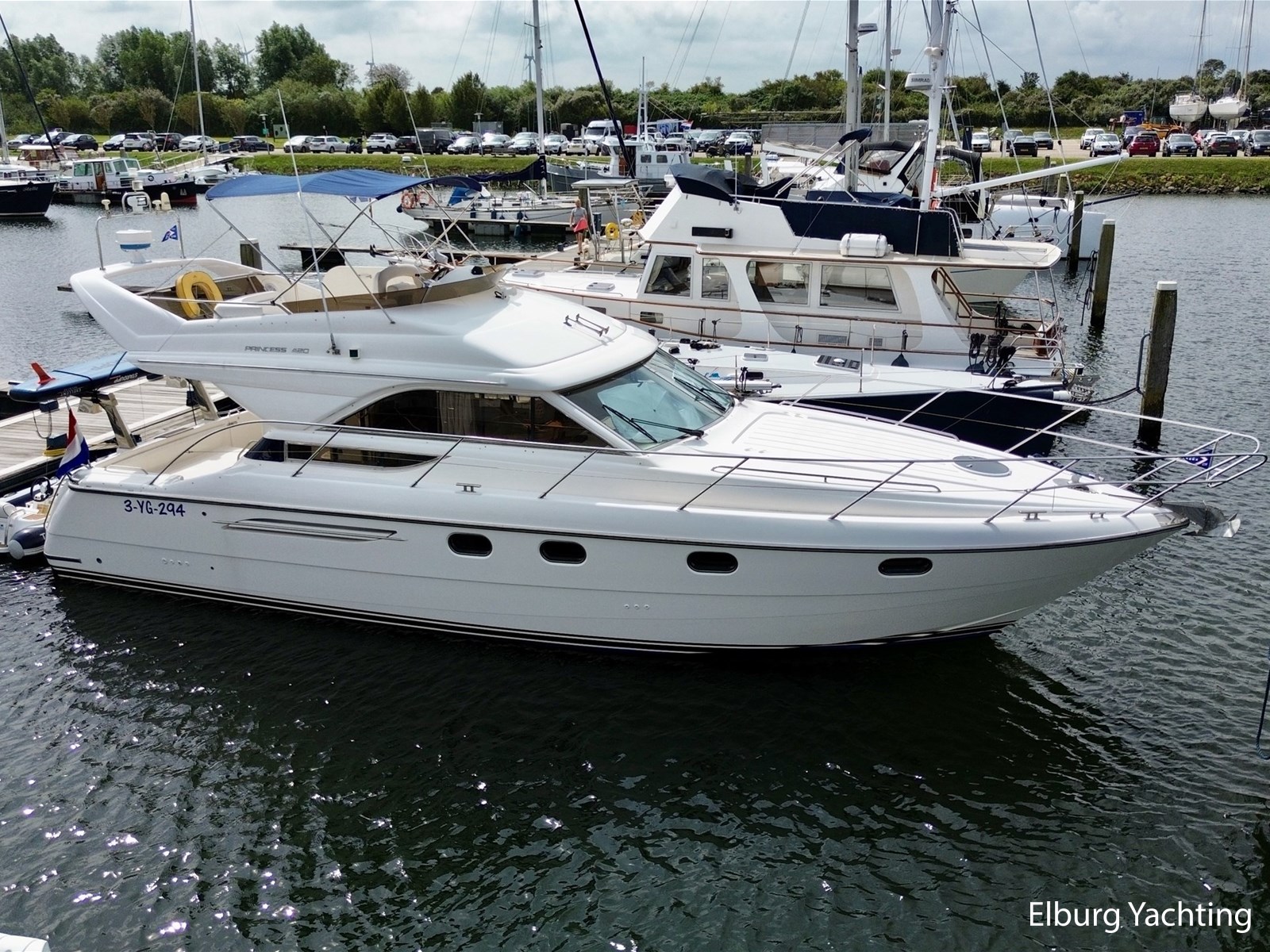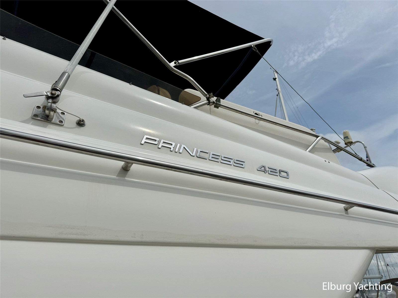 De Princess 420 is een sportief gelijnd, polyester jacht met flybridge. Het jacht beschikt over 2 hutten. Eigenaarshut met een 2 pers. bed, guestcabin heeft 2 x 1 pers. bed. Het jacht heeft een moderne uitstraling met hoogglans kersenhouten interieur.