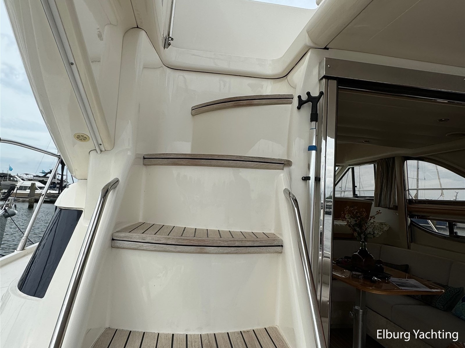 Het jacht heeft een luie trap naar de flybridge, salon, open kuip en zwemplateau gelijkvloers, biminitop op flybridge, nieuwe stoffering in 2024, nieuwe teaklook vloer in de salon, RVS reling rondom, meevaarbank bij stuurstand, RVS stootstrip rondom, de romp is gepolijst in 2024, antifouling 2024, , er is met zorg met het schip omgegaan.