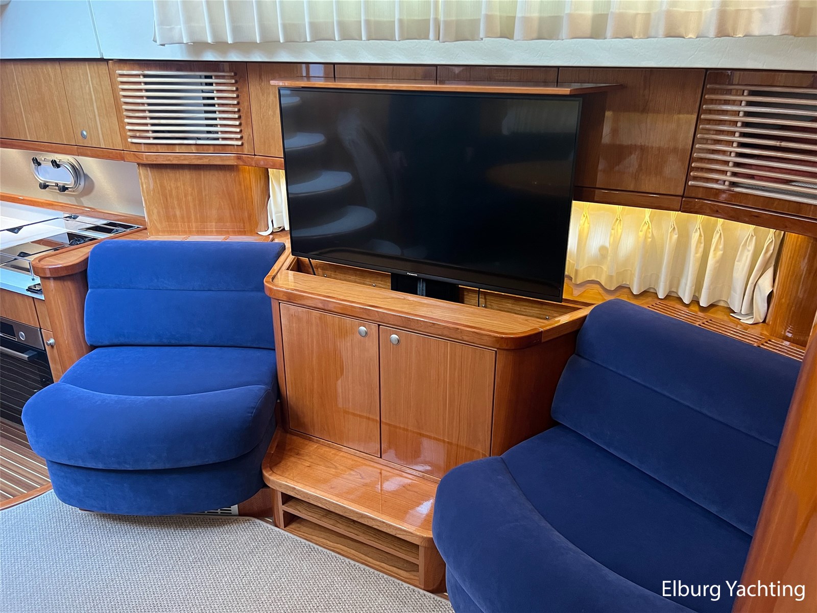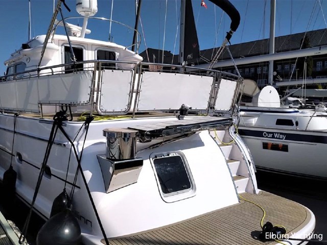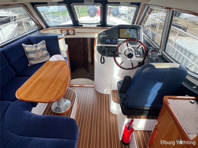 Prachtige en compleet uitgevoerde Elling E4 Ultimate van bouwjaar 2018. Deze alleskunner is zeewaardig gebouwd met CE-A categorisering en is tevens voorzien van een Seakeeper 5 Gyro stabilisator welke de rolbeweging van het schip aanzienlijk reduceert op onrustig water. Met een minimale doorvaarthoogte van ca. 3,45m heeft deze Elling E4 ook een groot vaarbereik op het binnenwater. Er is gekozen voor een 435 pk Volvo Penta hoofdmotor waarmee deze halfgleider een snelheid kan behalen van ca. 17 knopen. De 30 pk hulpmotor heeft een eigen saildrive aandrijving met klapschroef en is met een eigen dieseltank 'stand-alone' van de hoofdaandrijving. Voor de navigatie apparatuur is gekozen voor een compleet pakket van Raymarine met de opties zoals plotter / radar / autopilot / AIS / diepte en snelheid. Deze Elling E4 is uitgevoerd met: Inklapbare biminitop over achterdek, windscherm in het wit rondom reling achterdek, zoeklicht op boeg, r.v.s. fenderhouders, buitenbanken met afneembare kussenset, inklapbare bank op voordek, Yachtcontrol paneel voor bootinformatie zoals informatie over het elektrischsysteem aan boord, klapraam voorste ruit stuurhuis, vaatwasser, was-droog combinatie, ruitenwisser met sproei installatie, grote tafel op het achterdek, zonneschermen voor stuurhuis, achteruitkijkcamera, Corian topbladen, hydraulisch bedienbare gangway met eigen doorgang in reling, SB zijhut kan gebruikt worden kantoor met een bureau maar ook als extra 1 persoons slaapplaats. Laatste motorisch onderhoud uitgevoerd in 2024. Dit schip ligt momenteel op de wal voor de winterstalling en is te bezichtigen aan de Oostzee in Duitsland. Een verbeterde en uitgebreidere fotoreportage volgt op korte termijn.