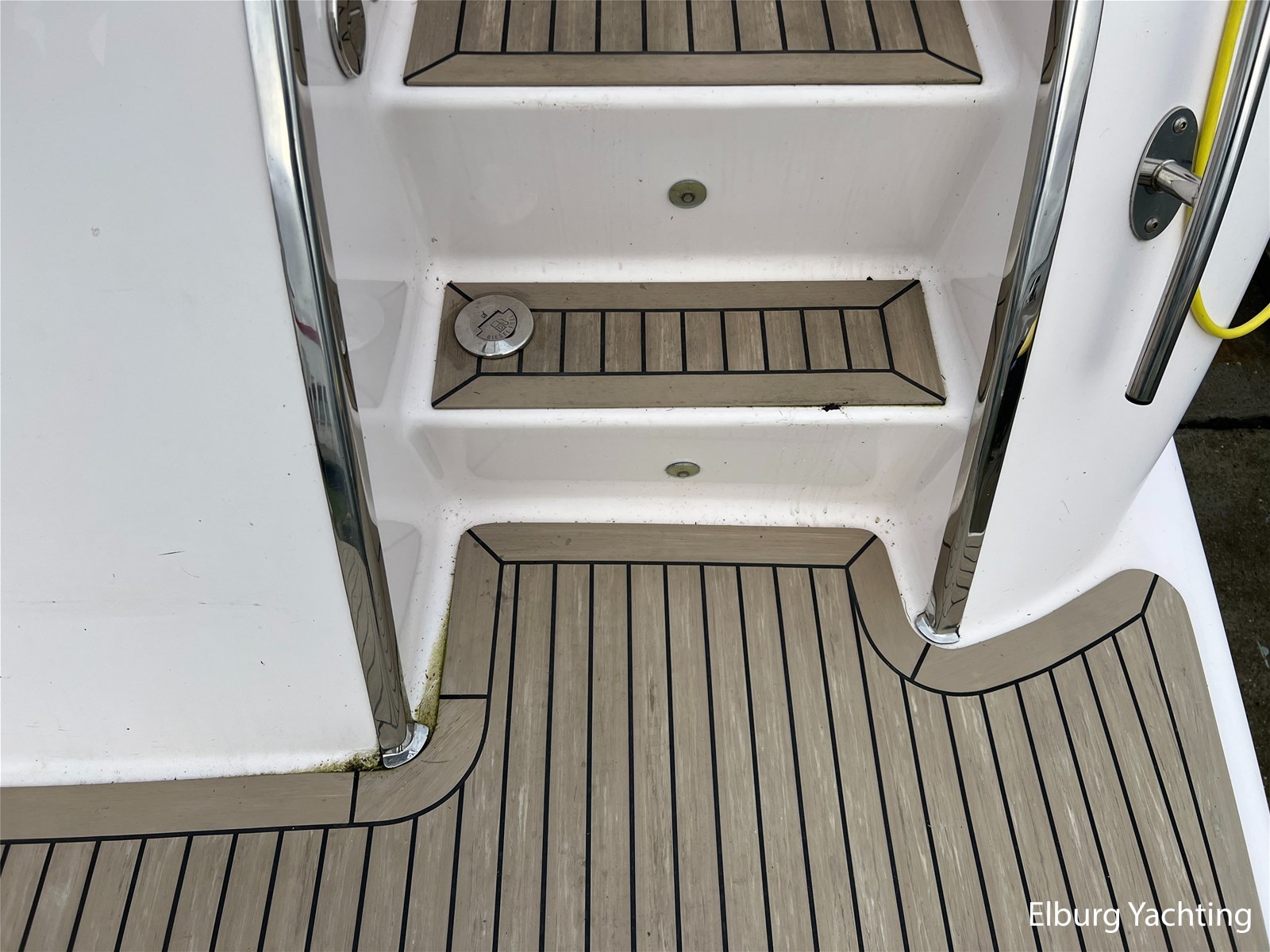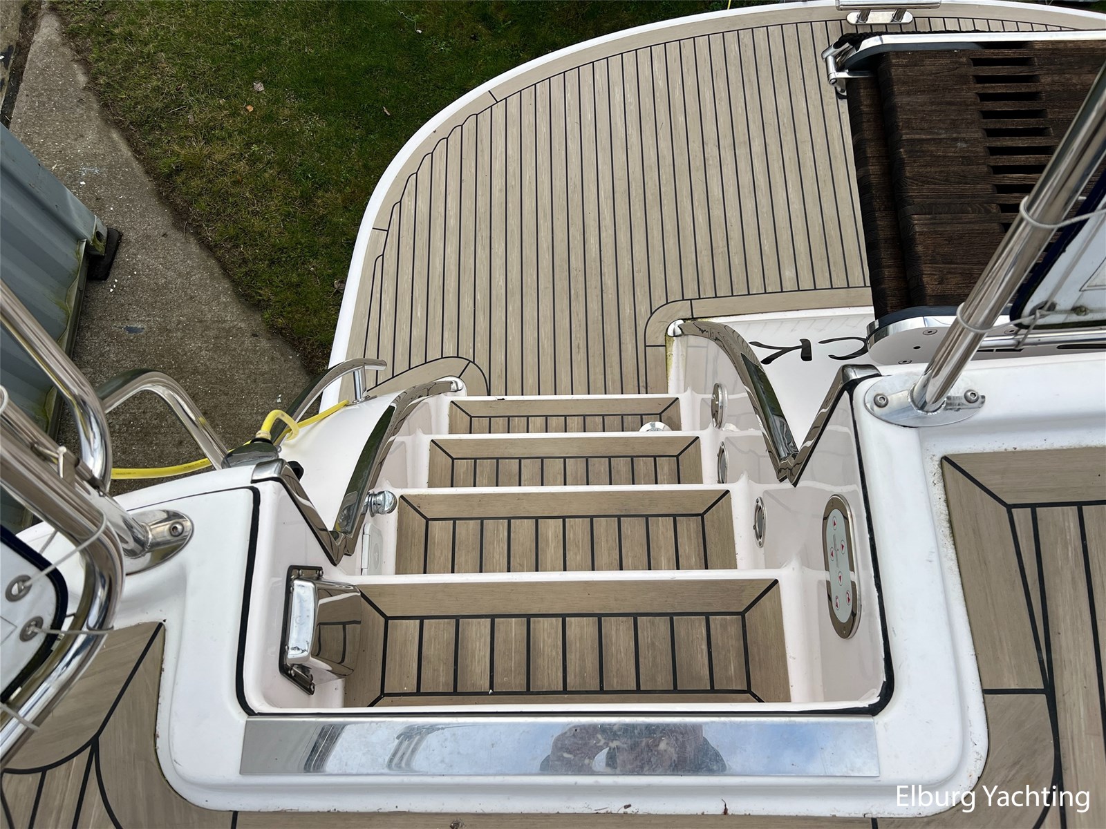 - Geïntegreerd met kunststof teak + r.v.s. zwemtrap