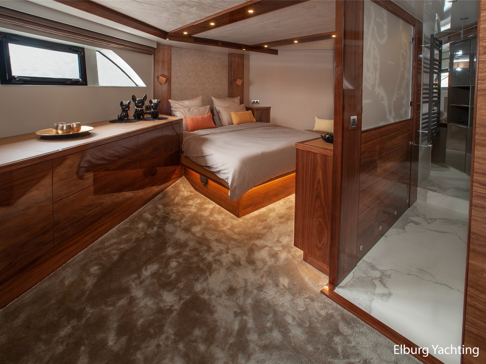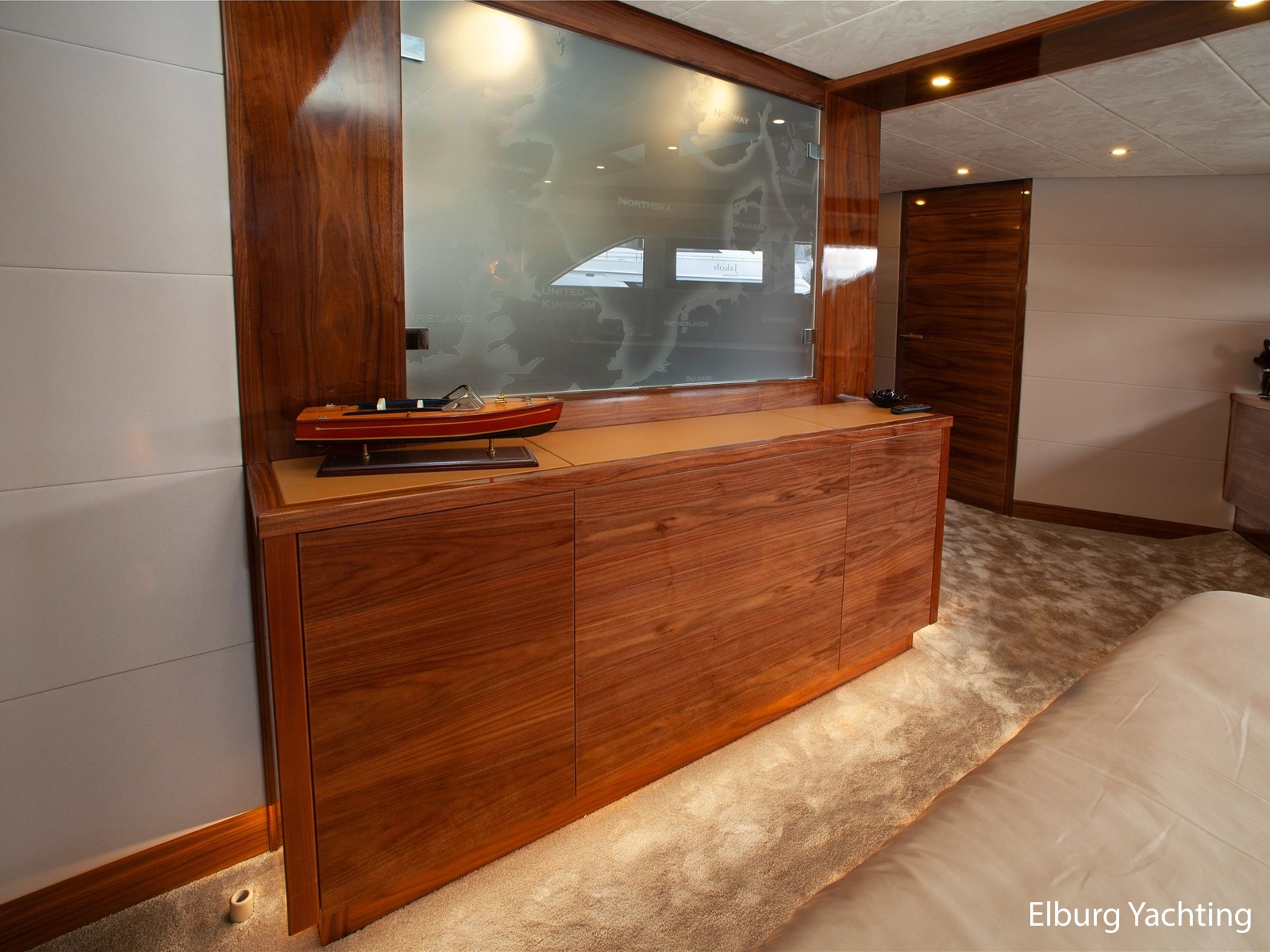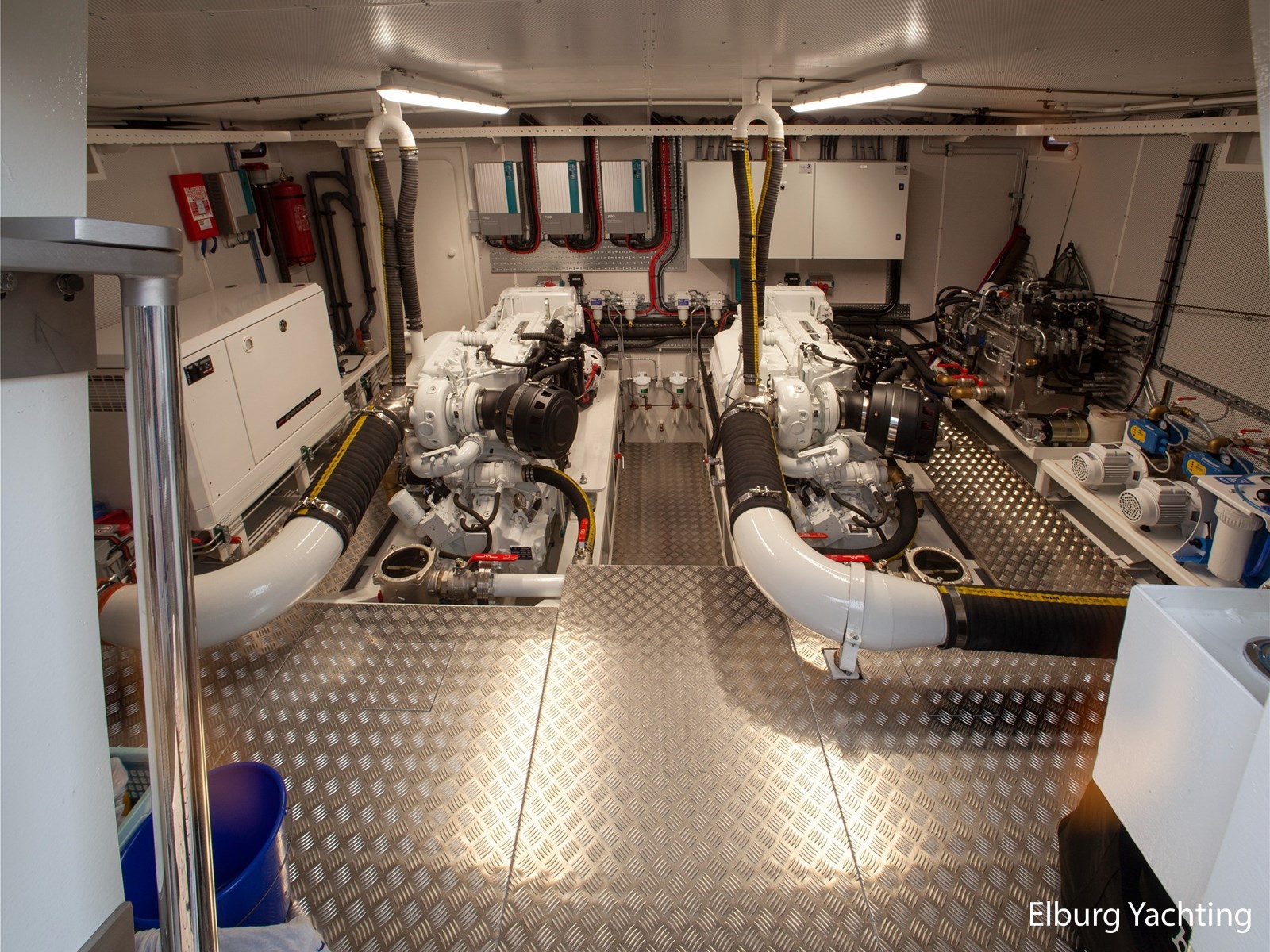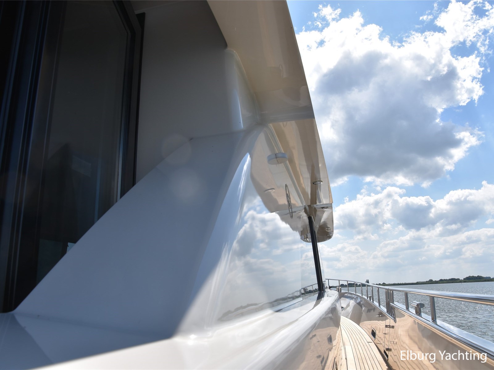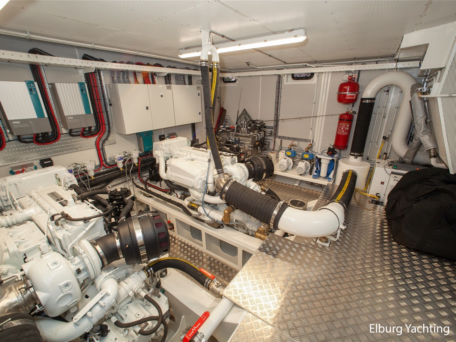 Deze Van den Hoven Executive 2100 is ontworpen voor wie graag langdurig en comfortabel aan boord verblijft. Dit jacht uit 2019 beschikt over één zeer royale eigenaarshut midscheeps, voorzien van een ruime inloopkast en een complete badkamer. De ruimte in de voorpunt doet momenteel dienst als berging, maar is voorbereid om te worden omgebouwd tot een tweede slaapkamer, indien gewenst. Daarnaast kan een deel van de inloopkast worden ingericht als derde slaapvertrek. Dergelijke wensen kunnen met de jachtwerf Van den Hoven worden besproken. De salon op dekniveau biedt een spectaculair 360-graden uitzicht, wat het gevoel van ruimte en licht versterkt doormiddel van de grote raampartijen. De brede gangboorden rondom maken het veilig en gemakkelijk om gelijkvloers rondom het dek te bewegen. Het voordek biedt volop ruimte om te loungen, compleet met een comfortabele bank om in alle rust van het uitzicht te genieten. Ook het achterdek is royaal opgezet, met een halfronde bank voor vijf personen en een overkapping die schaduw biedt tijdens zonnige dagen. Aan beide zijden van het jacht leiden stijlvolle trappen naar het ruime zwemplateau, dat tevens toegang biedt tot de professioneel ingerichte machinekamer met stahoogte. Met plezier maak je hier een dagelijks inspectie rondje en ziet in een oogopslag dat alle techniek in orde is. Dit schip beschikt over een geldig CVO certificaat. Verder is deze Van den Hoven Executive 2100 voorzien van: TV op lift in eigenaarshut en salon, doorgang naar machinekamer van binnenuit en via het zwemplateau, separate wasmachine en droger, dekwasaansluiting, afsluitbare deuren van de kuip naar het zwemplateau, plissé gordijnen in salon, zijdeur aan stuurboordzijde nabij de stuurstand, r.v.s. fenderhouders op het voordek, dekverlichting, klapbare radarbeugel, ovale r.v.s. reling met r.v.s. potdeksel rondom, dubbele brandstoffilters, buitendouche, vaatwasser, LED binnenverlichting, 4 x aluminium klapbare deuren naar salon, AIS, Hydronautica afstandsbediening voor bediening boeg- en hekschroef en motoren, hordeur in achterpui salon, afdekhoes t.b.v. buitenbank. Dit jacht is op afspraak op locatie in België te bezichtigen. Voor vragen en/of het maken van een afspraak bent u 7 dagen per week van harte welkom bij Elburg Yachting