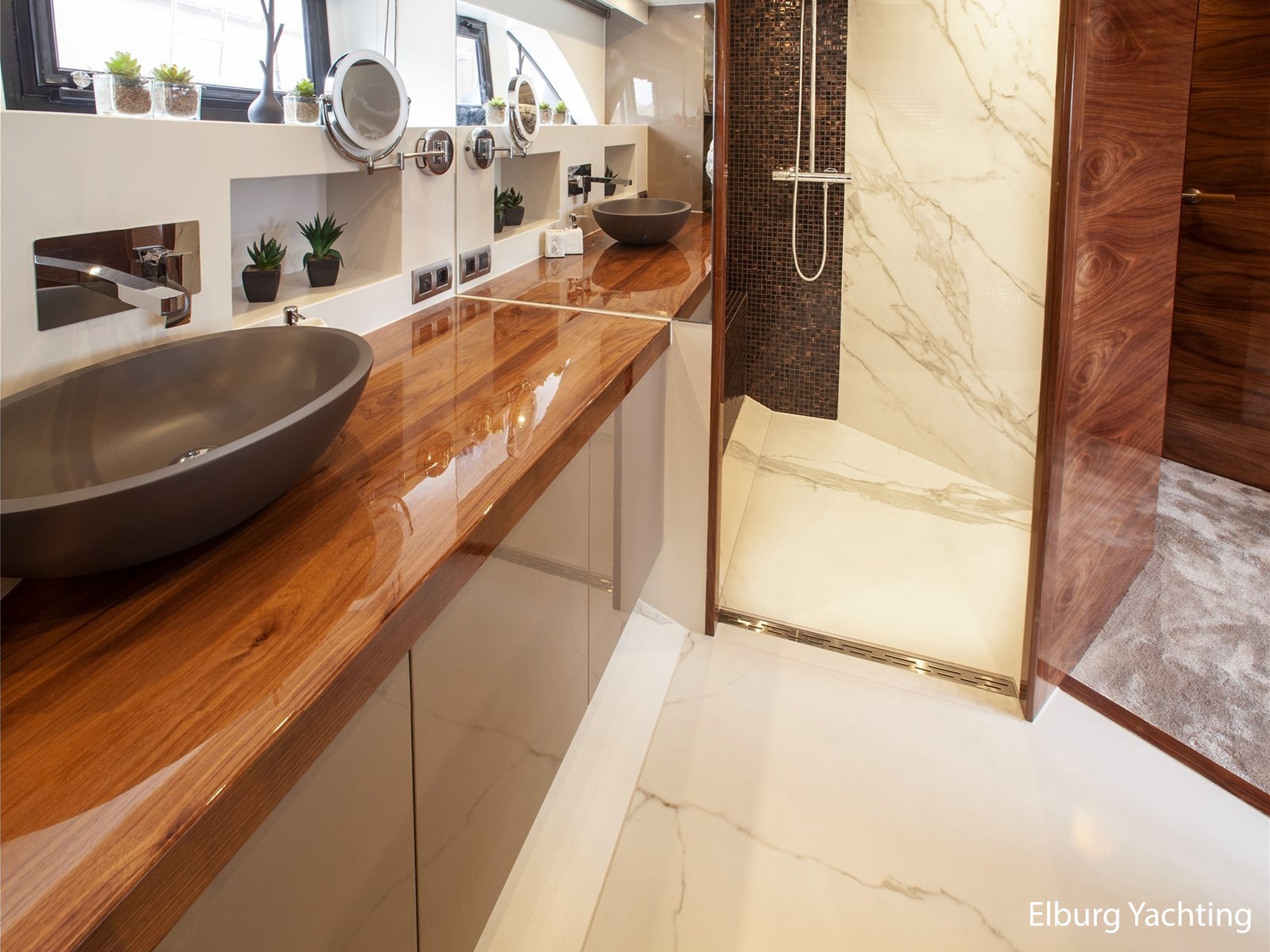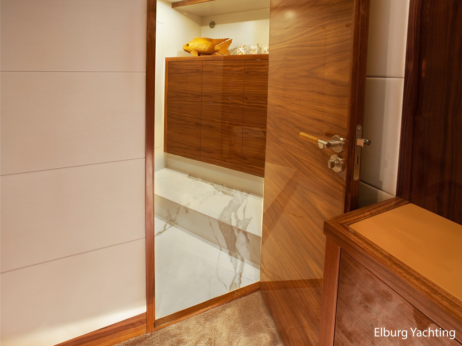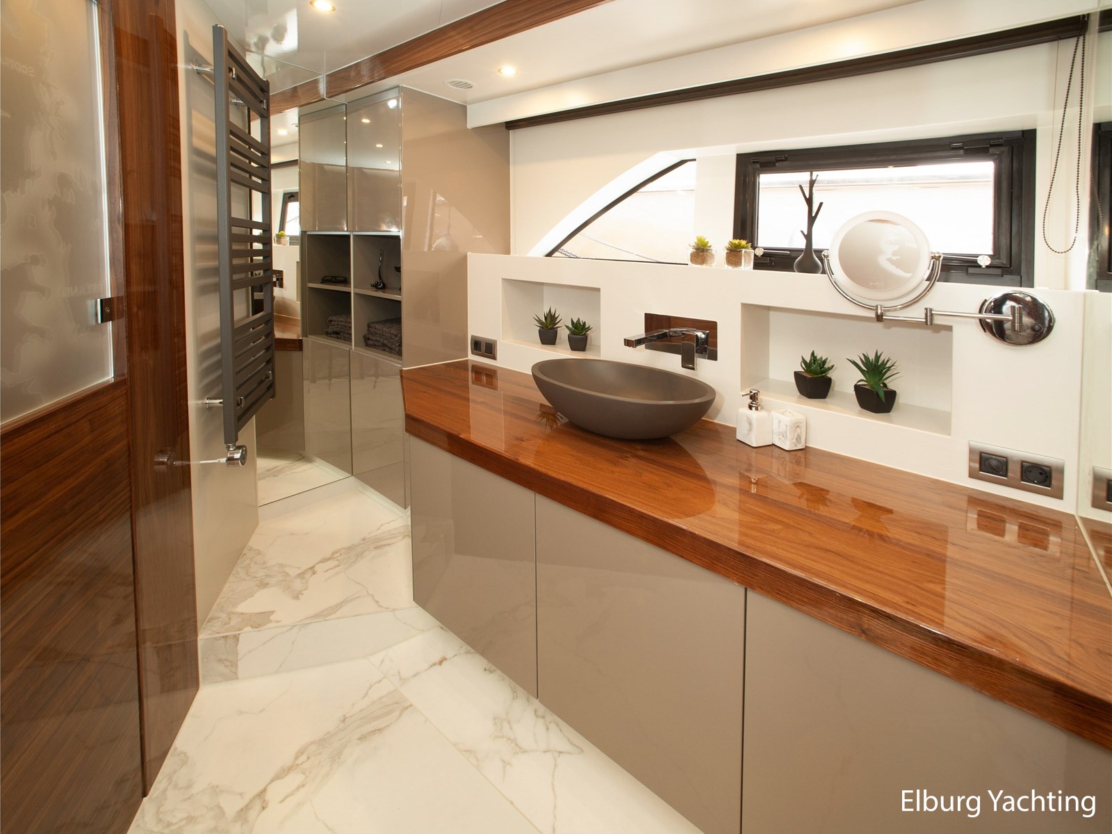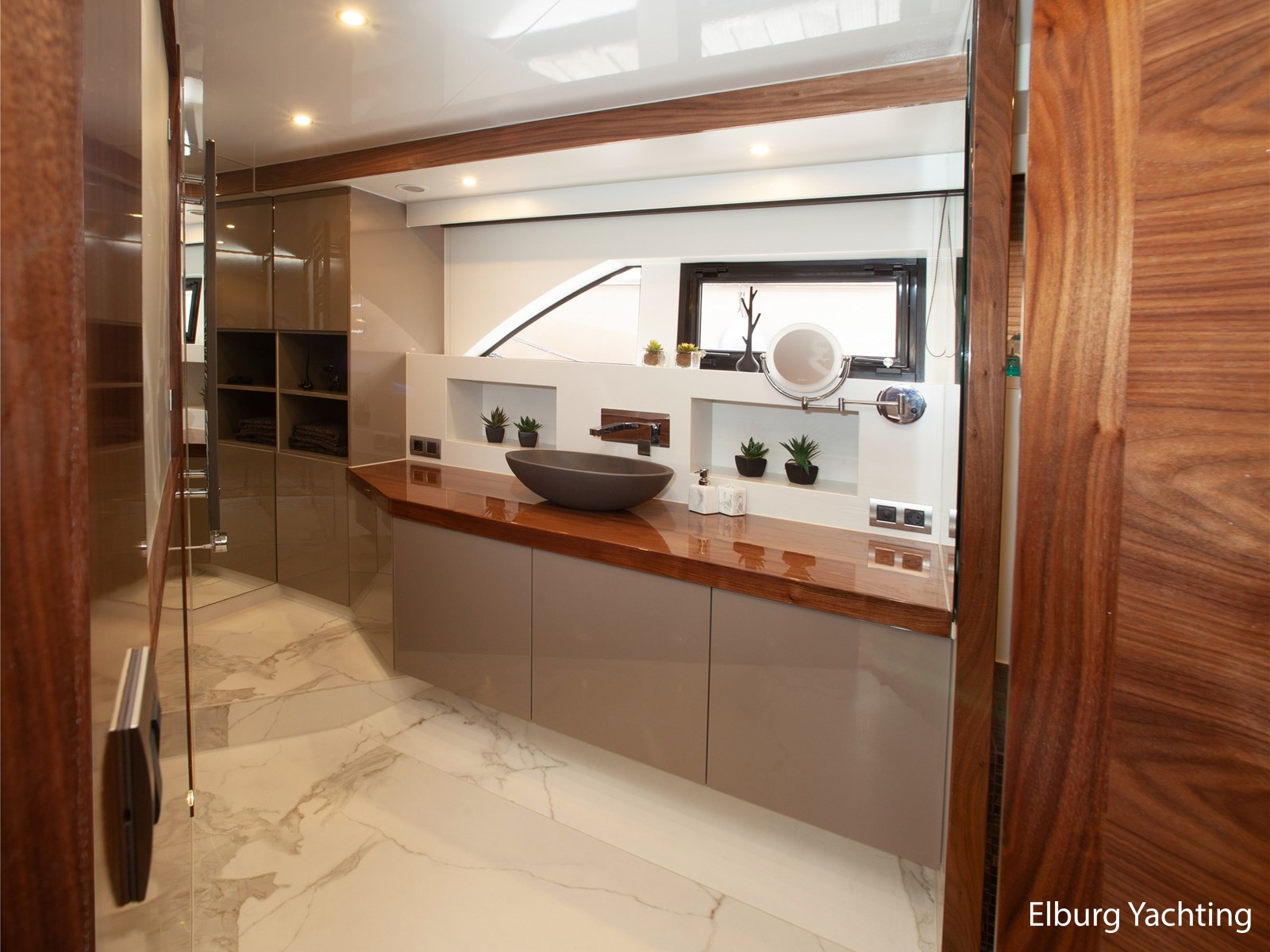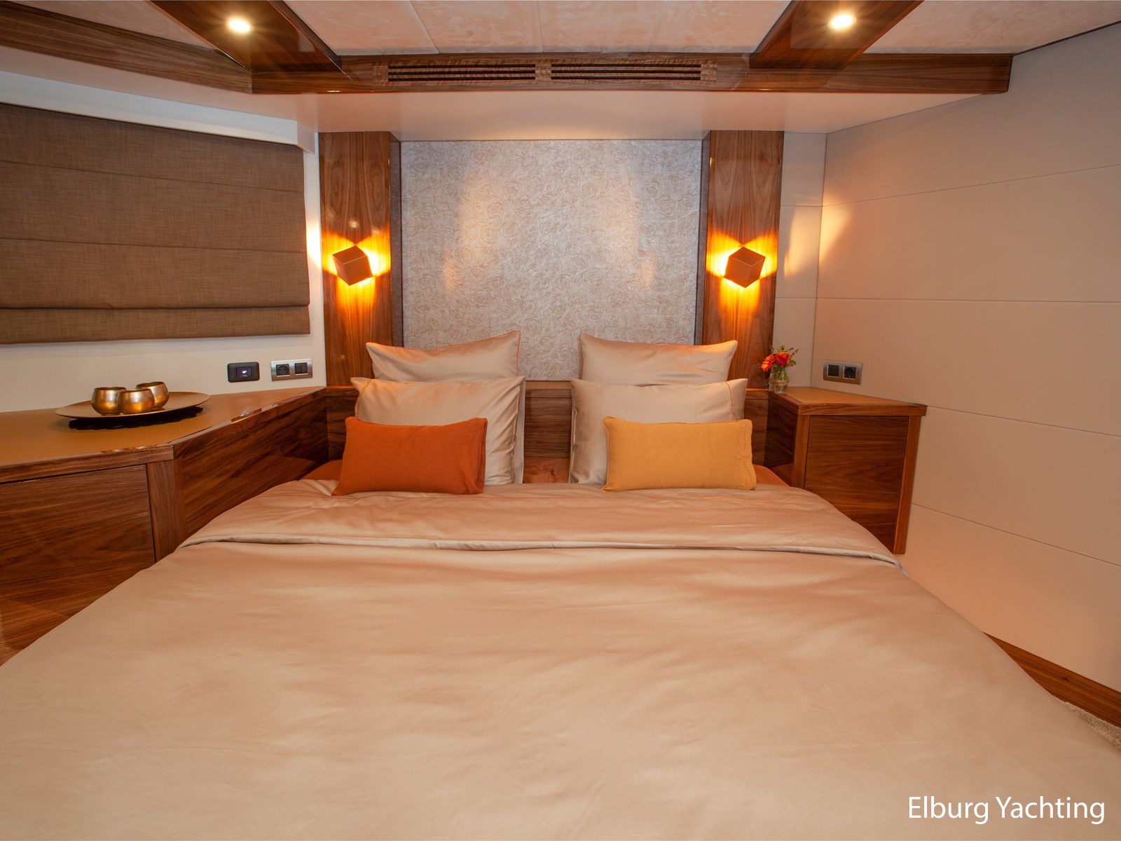 Deze Van den Hoven Executive 2100 is ontworpen voor wie graag langdurig en comfortabel aan boord verblijft. Dit jacht uit 2019 beschikt over één zeer royale eigenaarshut midscheeps, voorzien van een ruime inloopkast en een complete badkamer. De ruimte in de voorpunt doet momenteel dienst als berging, maar is voorbereid om te worden omgebouwd tot een tweede slaapkamer, indien gewenst. Daarnaast kan een deel van de inloopkast worden ingericht als derde slaapvertrek. Dergelijke wensen kunnen met de jachtwerf Van den Hoven worden besproken. De salon op dekniveau biedt een spectaculair 360-graden uitzicht, wat het gevoel van ruimte en licht versterkt doormiddel van de grote raampartijen. De brede gangboorden rondom maken het veilig en gemakkelijk om gelijkvloers rondom het dek te bewegen. Het voordek biedt volop ruimte om te loungen, compleet met een comfortabele bank om in alle rust van het uitzicht te genieten. Ook het achterdek is royaal opgezet, met een halfronde bank voor vijf personen en een overkapping die schaduw biedt tijdens zonnige dagen. Aan beide zijden van het jacht leiden stijlvolle trappen naar het ruime zwemplateau, dat tevens toegang biedt tot de professioneel ingerichte machinekamer met stahoogte. Met plezier maak je hier een dagelijks inspectie rondje en ziet in een oogopslag dat alle techniek in orde is. Dit schip beschikt over een geldig CVO certificaat. Verder is deze Van den Hoven Executive 2100 voorzien van: TV op lift in eigenaarshut en salon, doorgang naar machinekamer van binnenuit en via het zwemplateau, separate wasmachine en droger, dekwasaansluiting, afsluitbare deuren van de kuip naar het zwemplateau, plissé gordijnen in salon, zijdeur aan stuurboordzijde nabij de stuurstand, r.v.s. fenderhouders op het voordek, dekverlichting, klapbare radarbeugel, ovale r.v.s. reling met r.v.s. potdeksel rondom, dubbele brandstoffilters, buitendouche, vaatwasser, LED binnenverlichting, 4 x aluminium klapbare deuren naar salon, AIS, Hydronautica afstandsbediening voor bediening boeg- en hekschroef en motoren, hordeur in achterpui salon, afdekhoes t.b.v. buitenbank. Dit jacht is op afspraak op locatie in België te bezichtigen. Voor vragen en/of het maken van een afspraak bent u 7 dagen per week van harte welkom bij Elburg Yachting