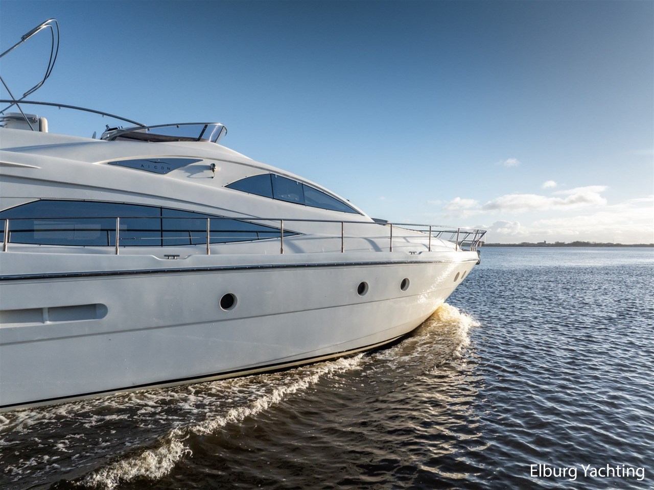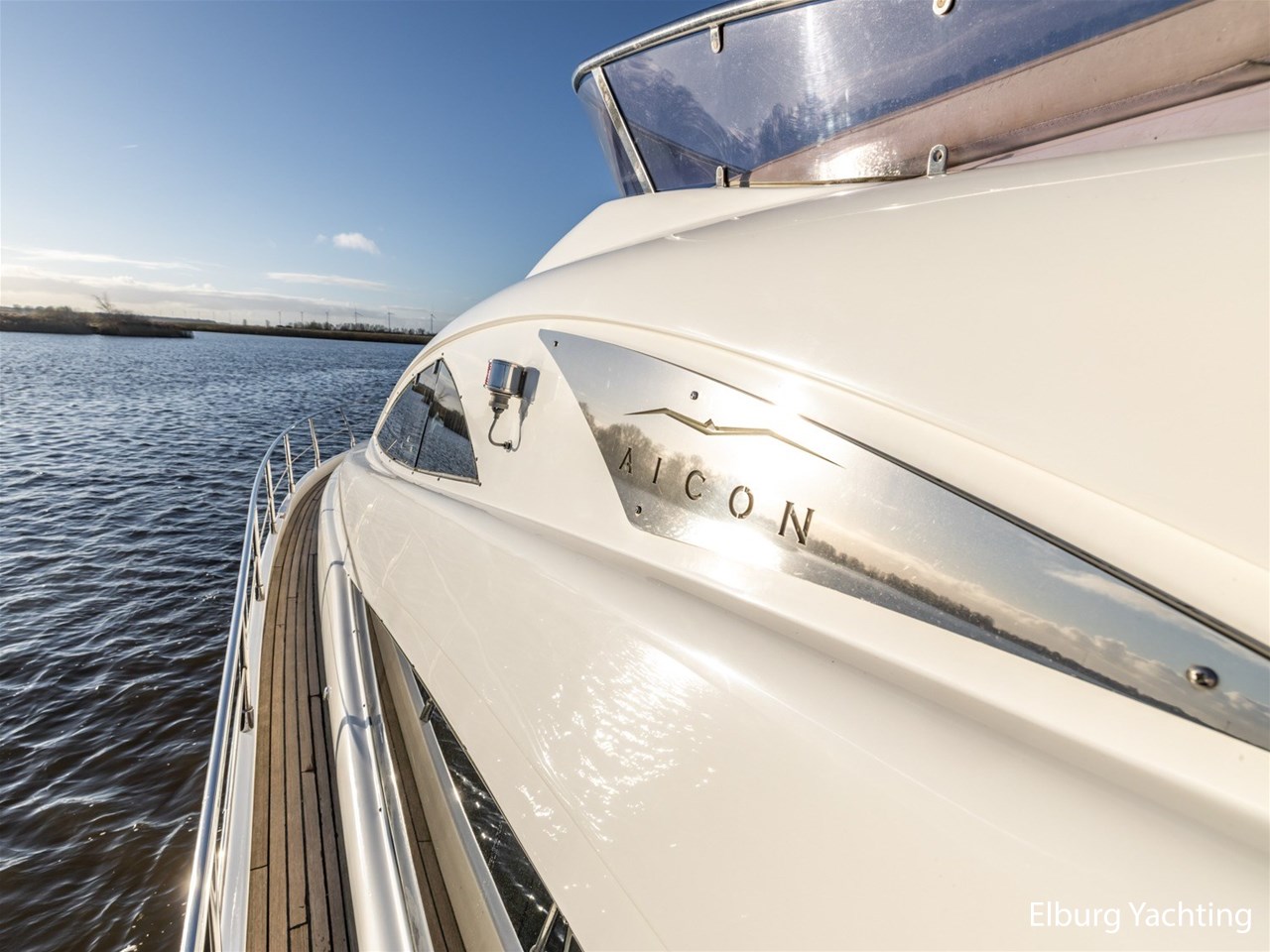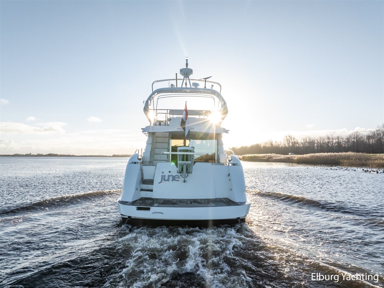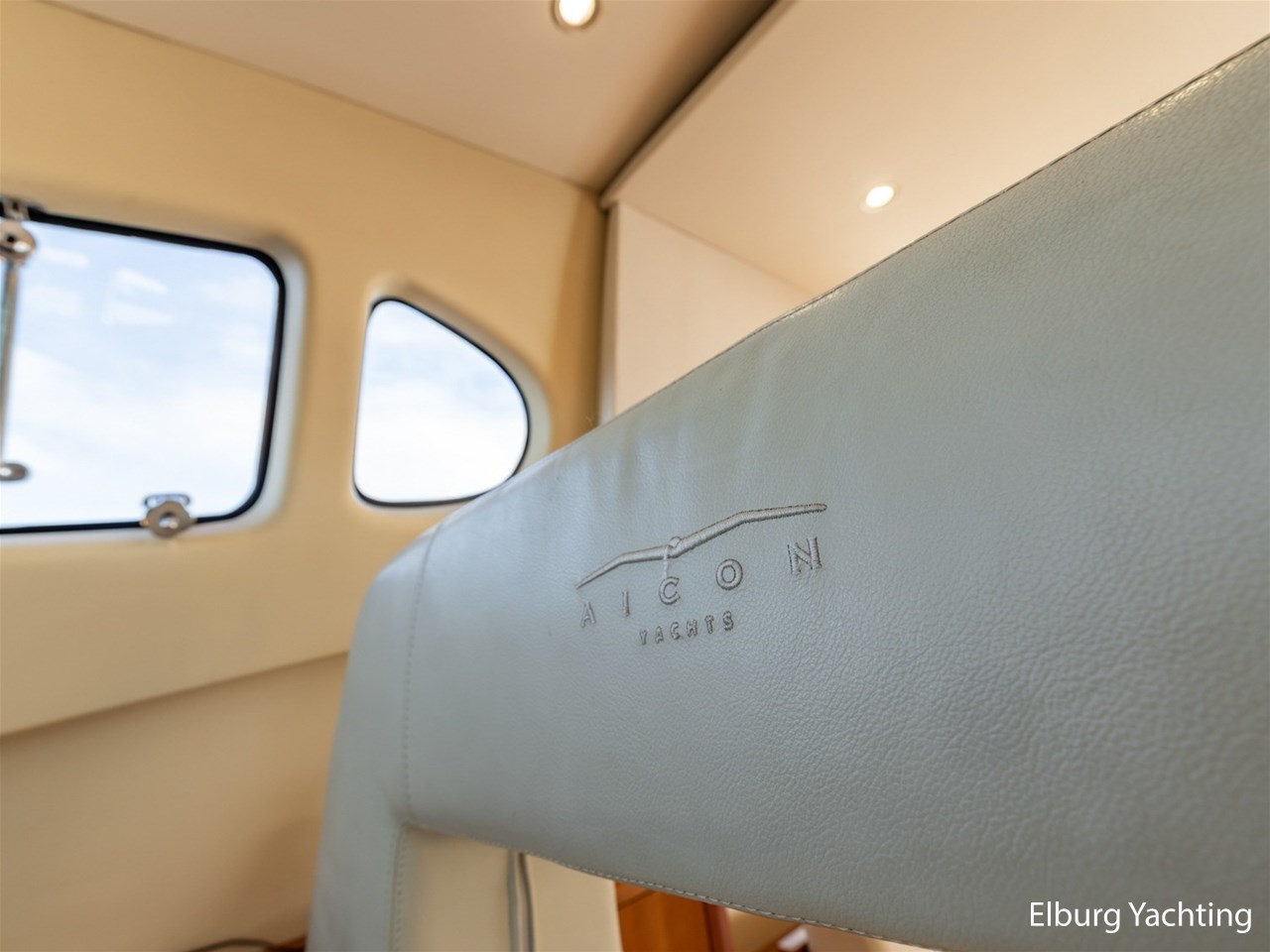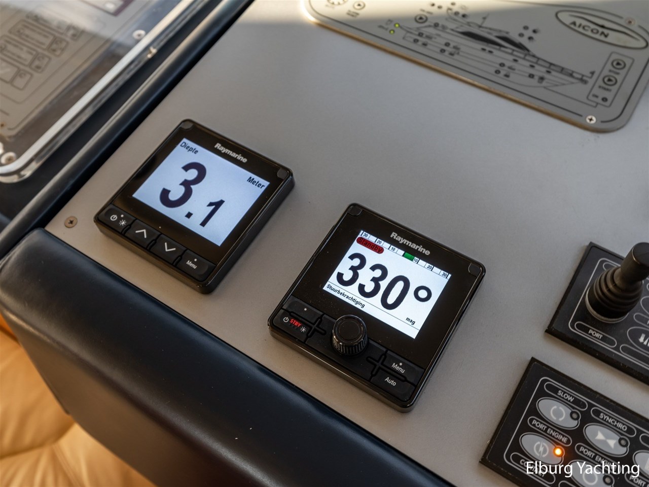 Deze Aicon 54 is een sportief gelijnd snelvarend motorjacht. Het schip heeft een ruime en open indeling, zo is de salon / dinette / stuurstand / kombuis met elkaar verbonden in een en dezelfde ruimte. Benedendeks bevinden zich de 3 x 2 persoons hutten en twee badkamers. Via de grote r.v.s. schuifpui is de binnenruimte met buiten te verbinden. In de kuip is een geïntegreerde kuipbank gesitueerd met bijbehorende kussens. In het achterschip bevindt er zich nog een 1 persoons crew cabin. Via een deur in de spiegel heb je toegang toe het brede zwemplateau, tevens kan hier een bijboot worden geplaatst welke met de hydraulisch gangway te water gelaten kan worden. Via een 'luie' trap vanuit de kuip bereik je de flybridge. De flybridge is van alle gemakken voorzien om hier overzichtelijk het schip te kunnen bedienen en hebben gasten alle comfort van een wetbar, zonnebed en volledige biminitop. Deze Aicon 54 genaamd 'June' is voorzien van: Volledige tent rondom achterdek met uitritsbare delen, 2 x elektrisch bedienbare lieren om het aanleggen te vergemakkelijken, groot afneembaar zonnebed op voordek, volledige kussenset voor open kuip en op flybridge, TV in salon op draaibare beugel, recent vernieuwde Raymarine navigatieapparatuur, de Hydronautica afstandsbediening maakt het aan- en afmeren kinderspel met een directe bediening voor de boeg-/hekschroef en motor(en) voor- en achteruit, wasmachine benedendeks, overzichtelijk elektrisch schakelpaneel, Caterpillar motormanagement displays. Volledig nieuw kunststof teakdek gelegd rondom en op de flybridge in 2026. Voor vragen en/of het maken van een afspraak bent u 7 dagen per week van harte welkom bij Elburg Yachting.