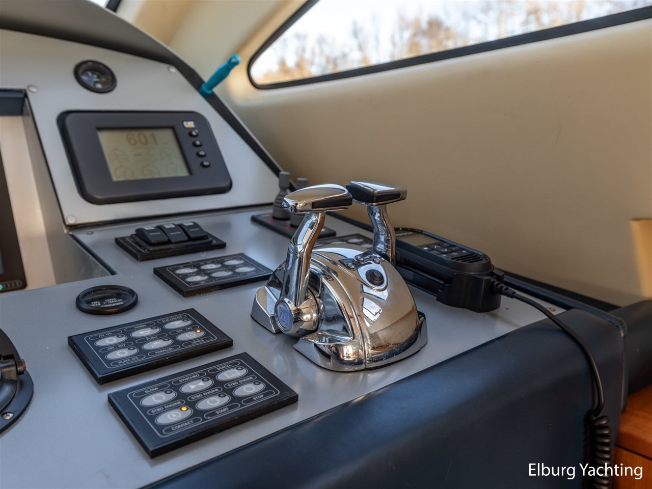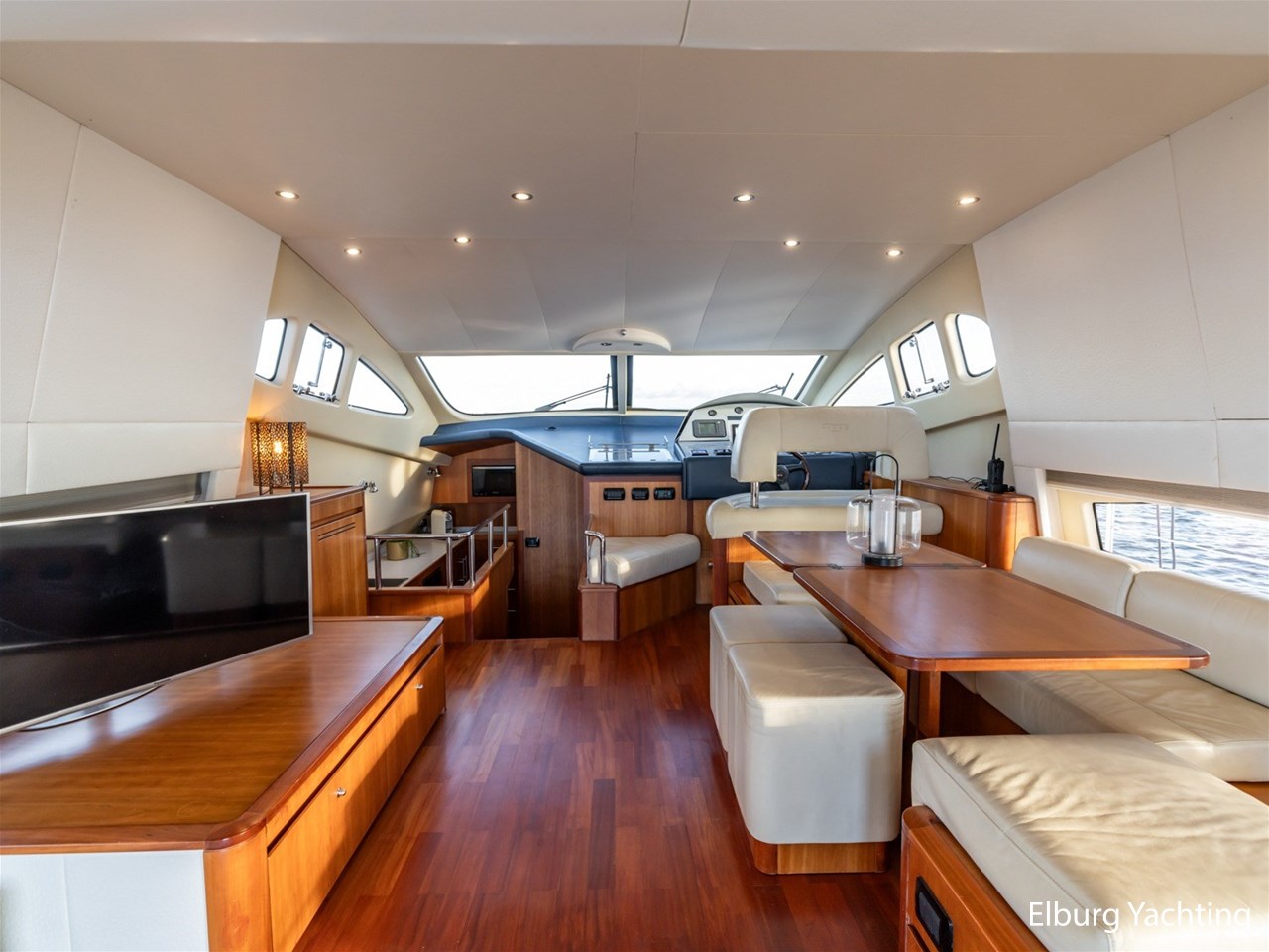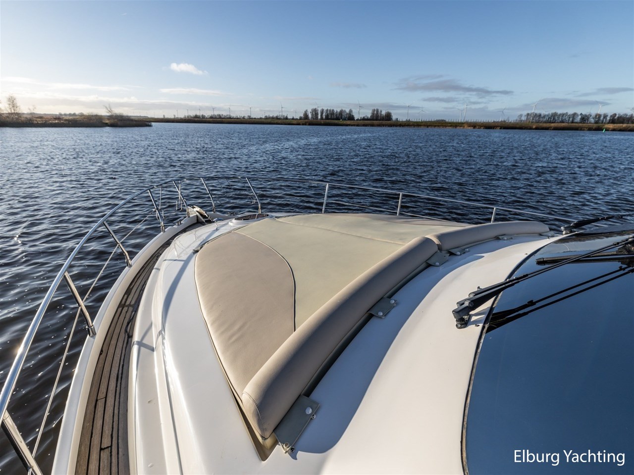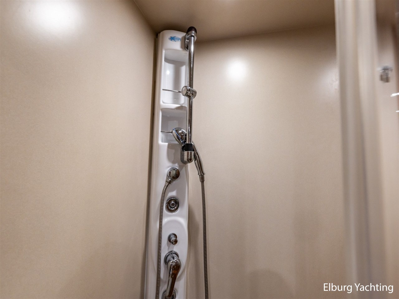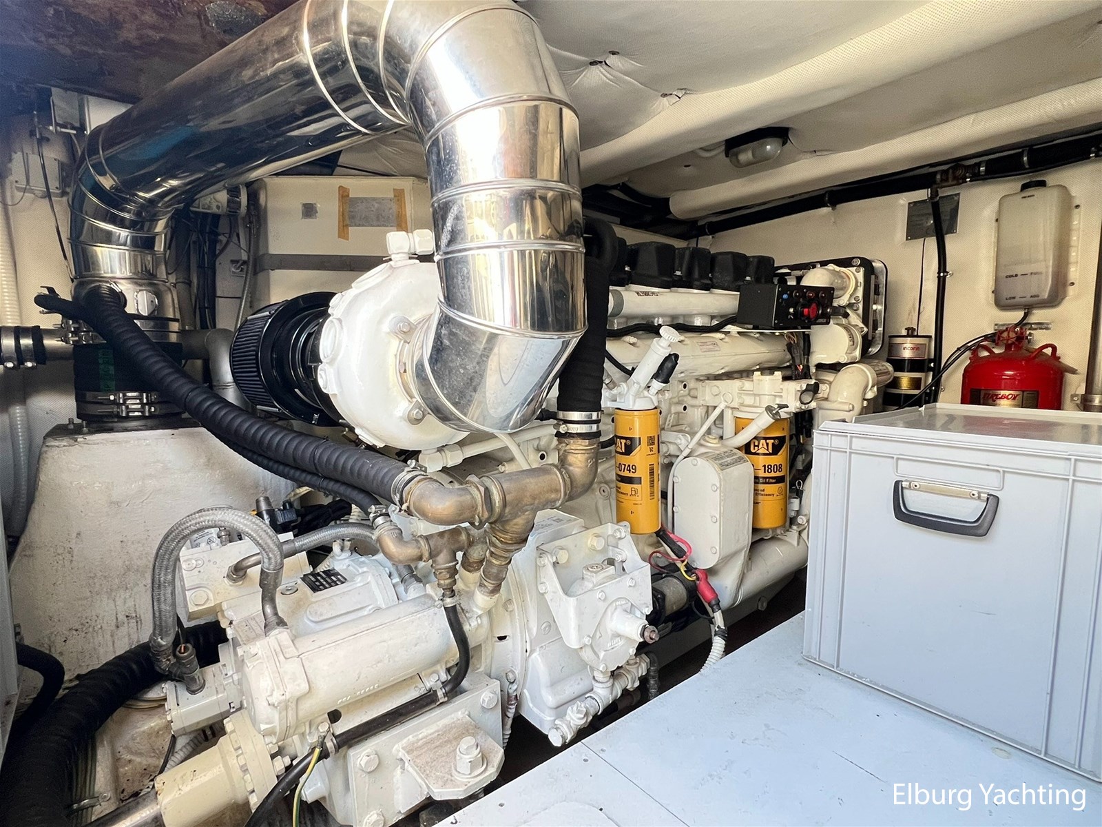 Deze Aicon 54 is een sportief gelijnd snelvarend motorjacht. Het schip heeft een ruime en open indeling, zo is de salon / dinette / stuurstand / kombuis met elkaar verbonden in een en dezelfde ruimte. Benedendeks bevinden zich de 3 x 2 persoons hutten en twee badkamers. Via de grote r.v.s. schuifpui is de binnenruimte met buiten te verbinden. In de kuip is een geïntegreerde kuipbank gesitueerd met bijbehorende kussens. In het achterschip bevindt er zich nog een 1 persoons crew cabin. Via een deur in de spiegel heb je toegang toe het brede zwemplateau, tevens kan hier een bijboot worden geplaatst welke met de hydraulisch gangway te water gelaten kan worden. Via een 'luie' trap vanuit de kuip bereik je de flybridge. De flybridge is van alle gemakken voorzien om hier overzichtelijk het schip te kunnen bedienen en hebben gasten alle comfort van een wetbar, zonnebed en volledige biminitop. Deze Aicon 54 genaamd 'June' is voorzien van: Volledige tent rondom achterdek met uitritsbare delen, 2 x elektrisch bedienbare lieren om het aanleggen te vergemakkelijken, groot afneembaar zonnebed op voordek, volledige kussenset voor open kuip en op flybridge, TV in salon op draaibare beugel, recent vernieuwde Raymarine navigatieapparatuur, de Hydronautica afstandsbediening maakt het aan- en afmeren kinderspel met een directe bediening voor de boeg-/hekschroef en motor(en) voor- en achteruit, wasmachine benedendeks, overzichtelijk elektrisch schakelpaneel, Caterpillar motormanagement displays. Volledig nieuw kunststof teakdek gelegd rondom en op de flybridge in 2026. Voor vragen en/of het maken van een afspraak bent u 7 dagen per week van harte welkom bij Elburg Yachting.