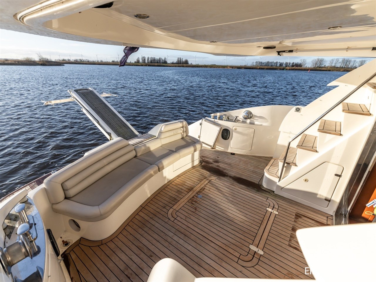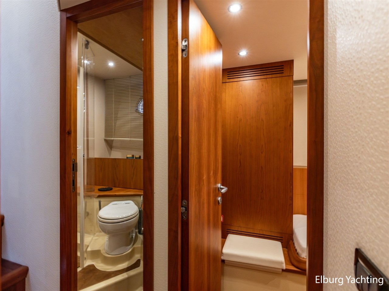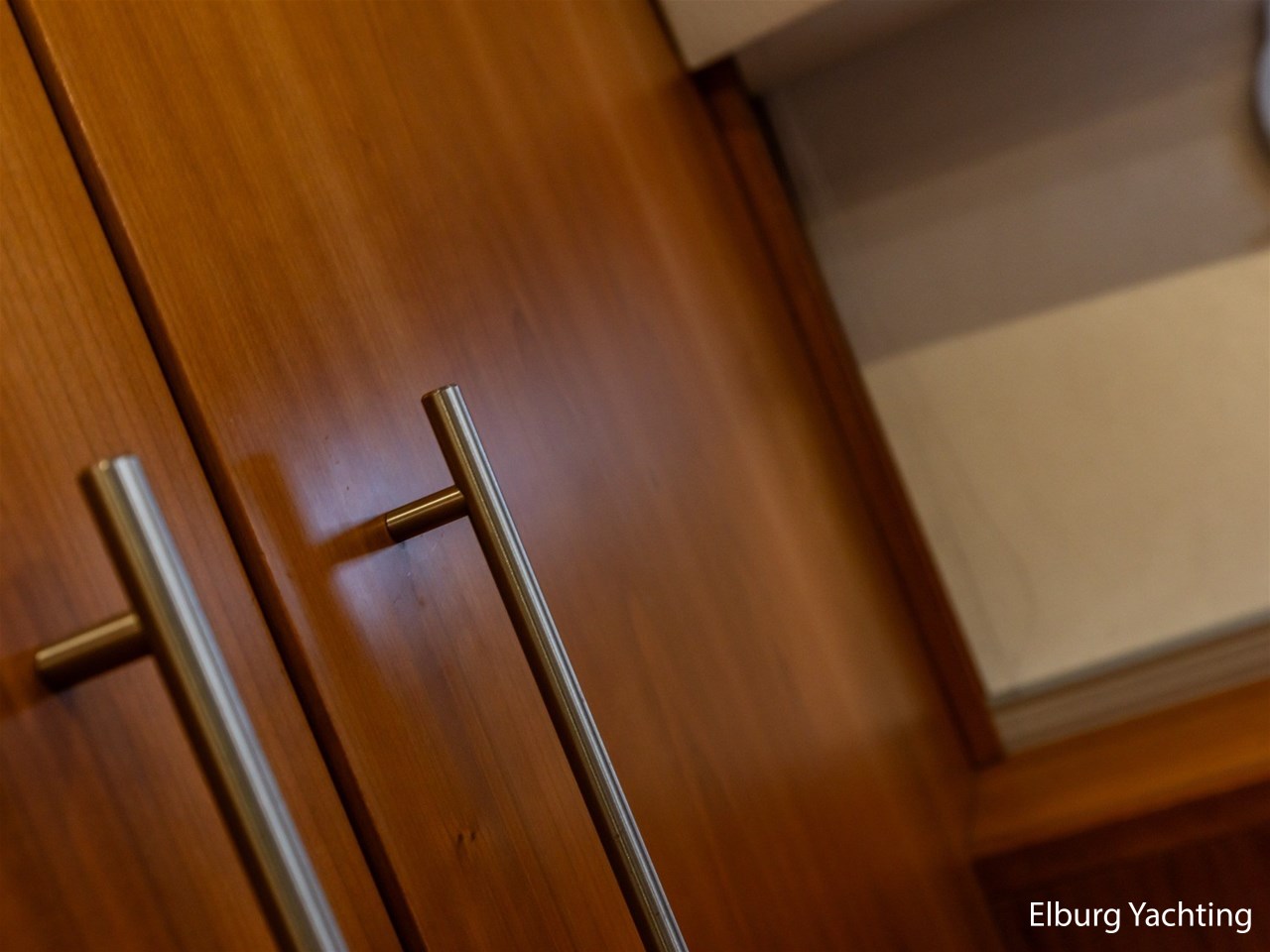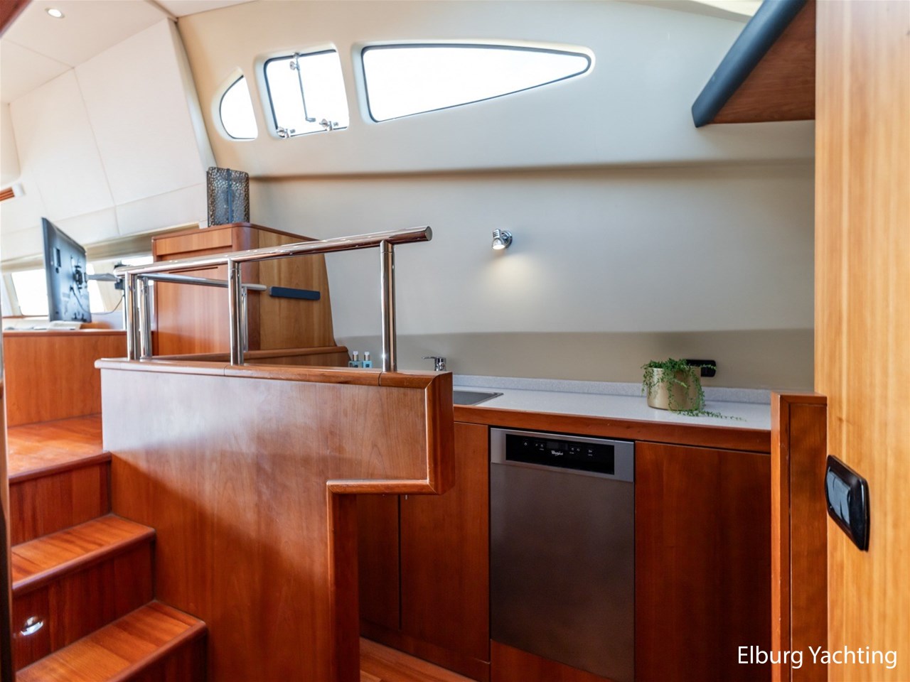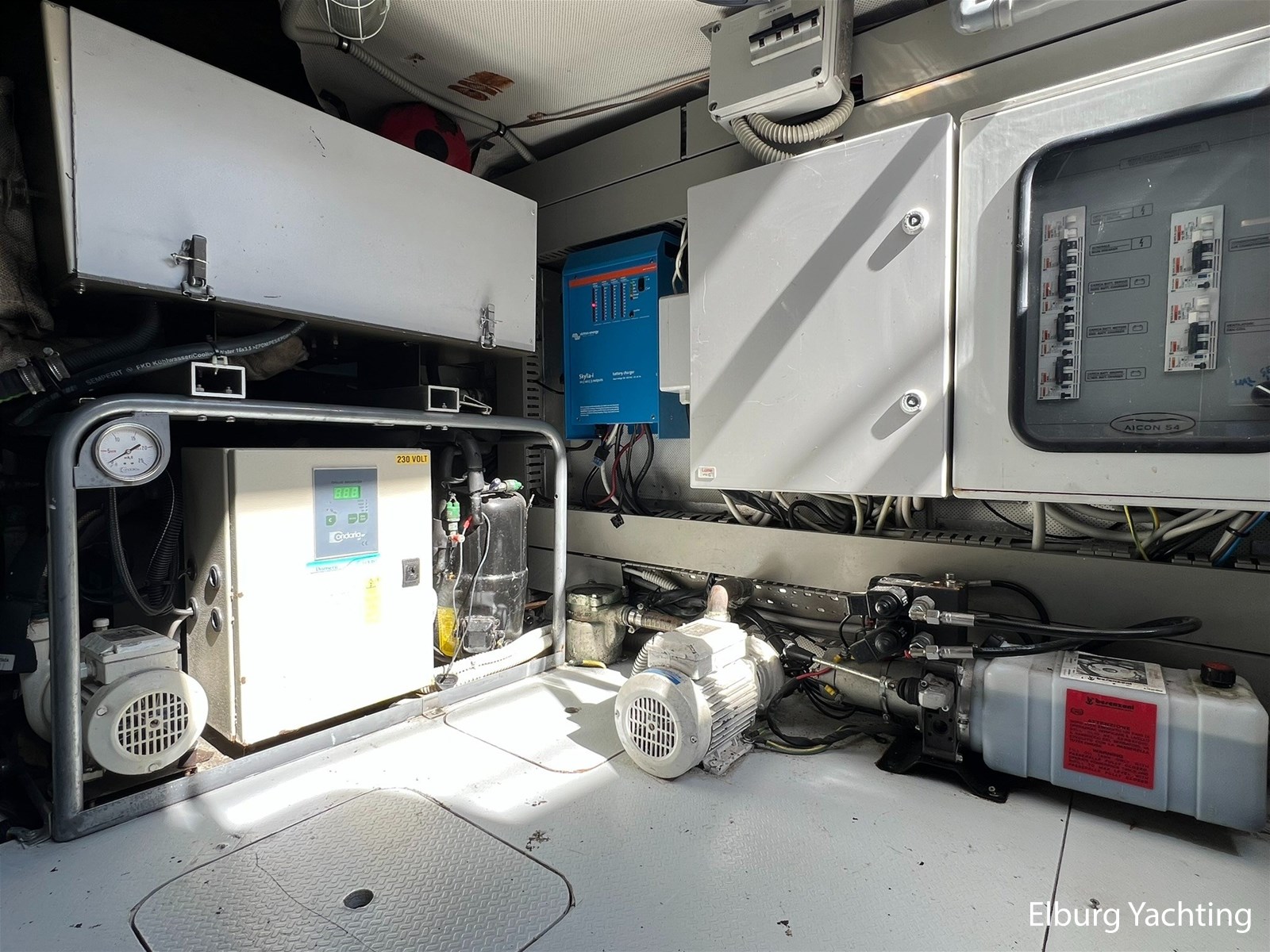 Deze Aicon 54 is een sportief gelijnd snelvarend motorjacht. Het schip heeft een ruime en open indeling, zo is de salon / dinette / stuurstand / kombuis met elkaar verbonden in een en dezelfde ruimte. Benedendeks bevinden zich de 3 x 2 persoons hutten en twee badkamers. Via de grote r.v.s. schuifpui is de binnenruimte met buiten te verbinden. In de kuip is een geïntegreerde kuipbank gesitueerd met bijbehorende kussens. In het achterschip bevindt er zich nog een 1 persoons crew cabin. Via een deur in de spiegel heb je toegang toe het brede zwemplateau, tevens kan hier een bijboot worden geplaatst welke met de hydraulisch gangway te water gelaten kan worden. Via een 'luie' trap vanuit de kuip bereik je de flybridge. De flybridge is van alle gemakken voorzien om hier overzichtelijk het schip te kunnen bedienen en hebben gasten alle comfort van een wetbar, zonnebed en volledige biminitop. Deze Aicon 54 genaamd 'June' is voorzien van: Volledige tent rondom achterdek met uitritsbare delen, 2 x elektrisch bedienbare lieren om het aanleggen te vergemakkelijken, groot afneembaar zonnebed op voordek, volledige kussenset voor open kuip en op flybridge, TV in salon op draaibare beugel, recent vernieuwde Raymarine navigatieapparatuur, de Hydronautica afstandsbediening maakt het aan- en afmeren kinderspel met een directe bediening voor de boeg-/hekschroef en motor(en) voor- en achteruit, wasmachine benedendeks, overzichtelijk elektrisch schakelpaneel, Caterpillar motormanagement displays. Volledig nieuw kunststof teakdek gelegd rondom en op de flybridge in 2026. Voor vragen en/of het maken van een afspraak bent u 7 dagen per week van harte welkom bij Elburg Yachting.
