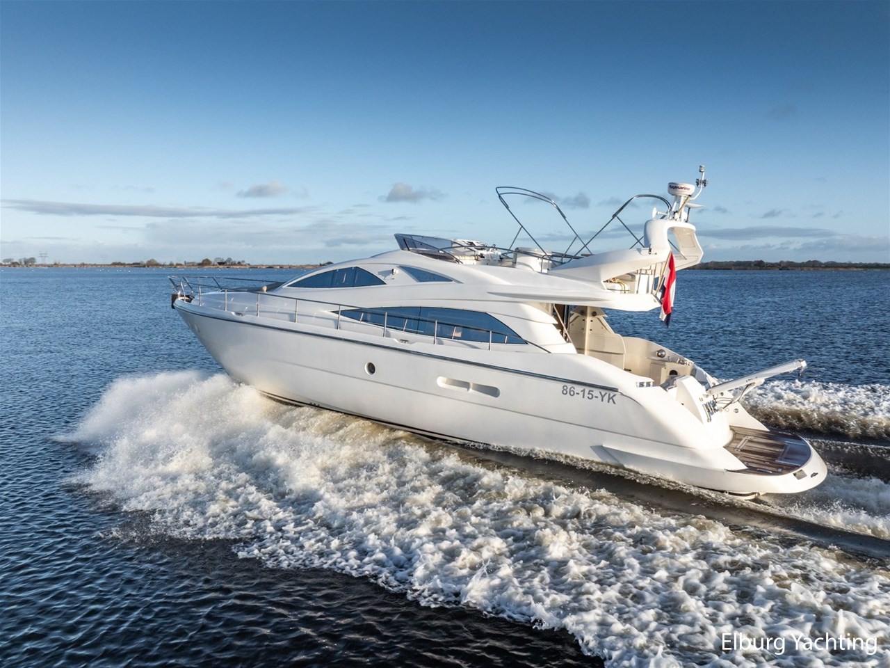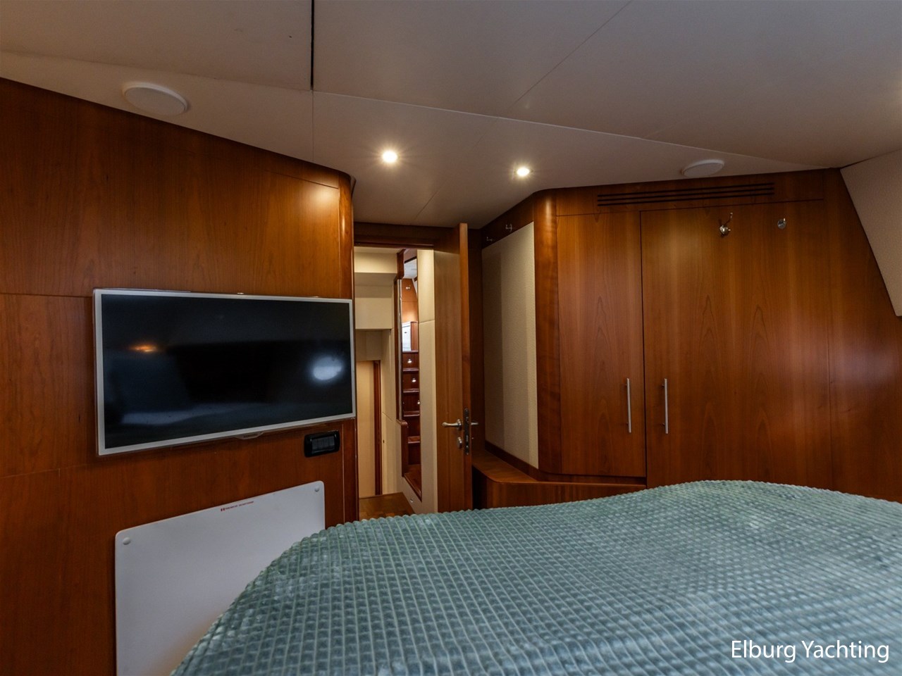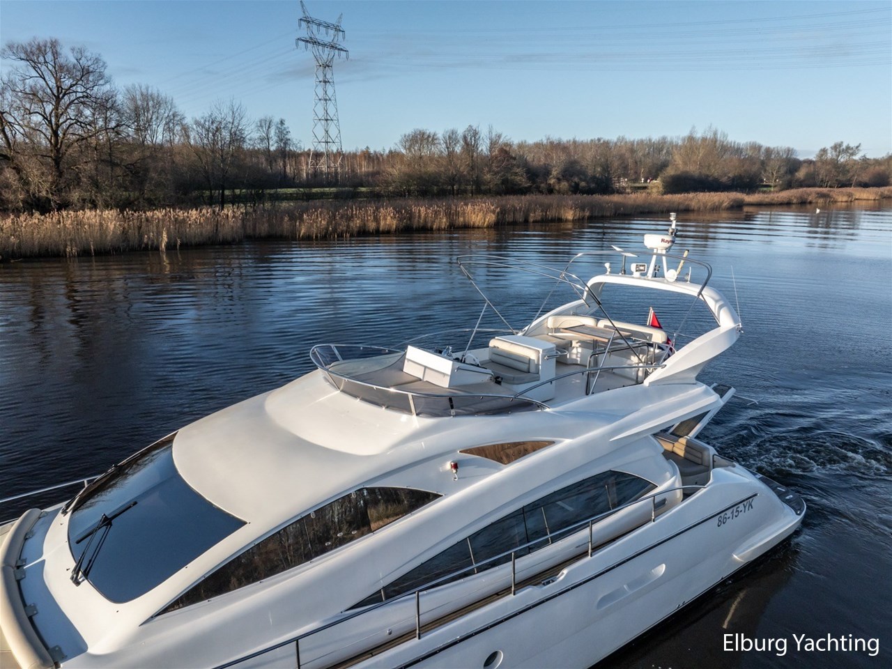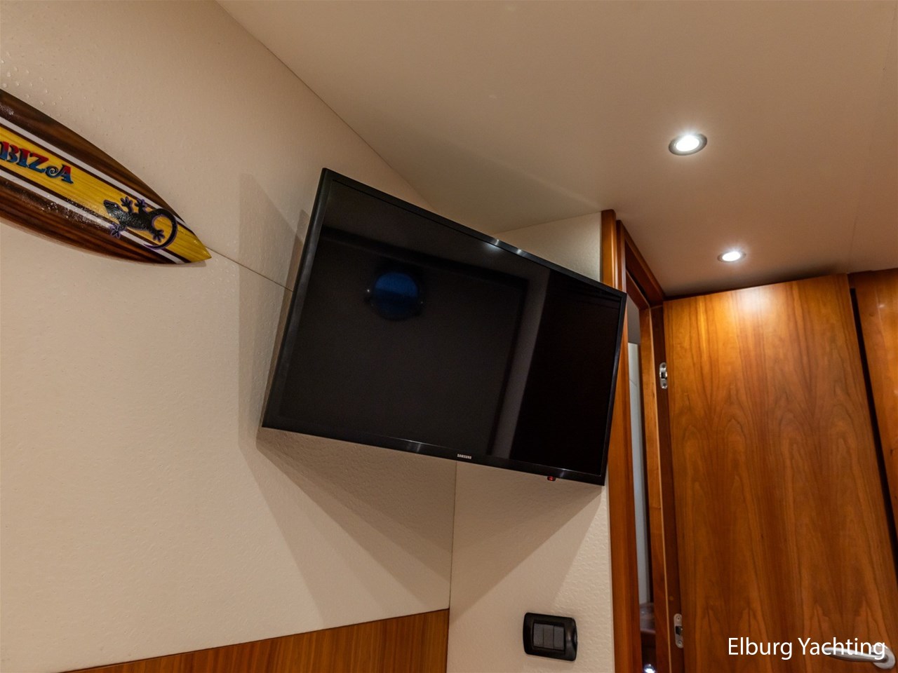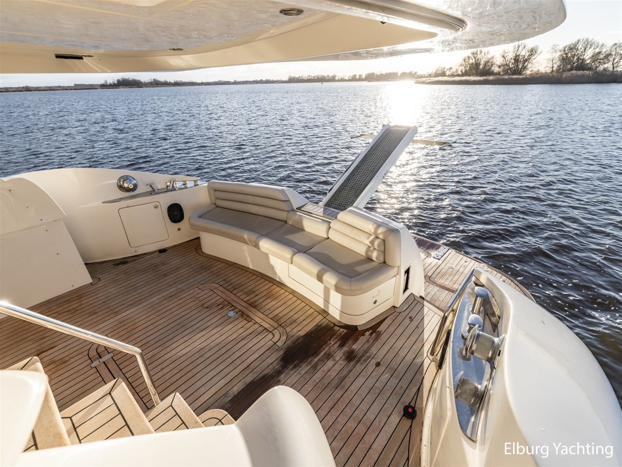 Deze Aicon 54 is een sportief gelijnd snelvarend motorjacht. Het schip heeft een ruime en open indeling, zo is de salon / dinette / stuurstand / kombuis met elkaar verbonden in een en dezelfde ruimte. Benedendeks bevinden zich de 3 x 2 persoons hutten en twee badkamers. Via de grote r.v.s. schuifpui is de binnenruimte met buiten te verbinden. In de kuip is een geïntegreerde kuipbank gesitueerd met bijbehorende kussens. In het achterschip bevindt er zich nog een 1 persoons crew cabin. Via een deur in de spiegel heb je toegang toe het brede zwemplateau, tevens kan hier een bijboot worden geplaatst welke met de hydraulisch gangway te water gelaten kan worden. Via een 'luie' trap vanuit de kuip bereik je de flybridge. De flybridge is van alle gemakken voorzien om hier overzichtelijk het schip te kunnen bedienen en hebben gasten alle comfort van een wetbar, zonnebed en volledige biminitop. Deze Aicon 54 genaamd 'June' is voorzien van: Volledige tent rondom achterdek met uitritsbare delen, 2 x elektrisch bedienbare lieren om het aanleggen te vergemakkelijken, groot afneembaar zonnebed op voordek, volledige kussenset voor open kuip en op flybridge, TV in salon op draaibare beugel, recent vernieuwde Raymarine navigatieapparatuur, de Hydronautica afstandsbediening maakt het aan- en afmeren kinderspel met een directe bediening voor de boeg-/hekschroef en motor(en) voor- en achteruit, wasmachine benedendeks, overzichtelijk elektrisch schakelpaneel, Caterpillar motormanagement displays. Volledig nieuw kunststof teakdek gelegd rondom en op de flybridge in 2026. Voor vragen en/of het maken van een afspraak bent u 7 dagen per week van harte welkom bij Elburg Yachting.