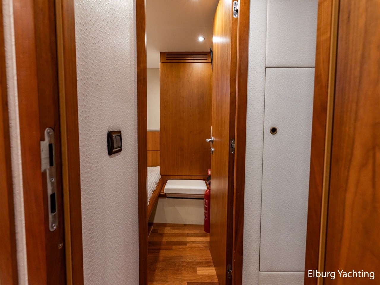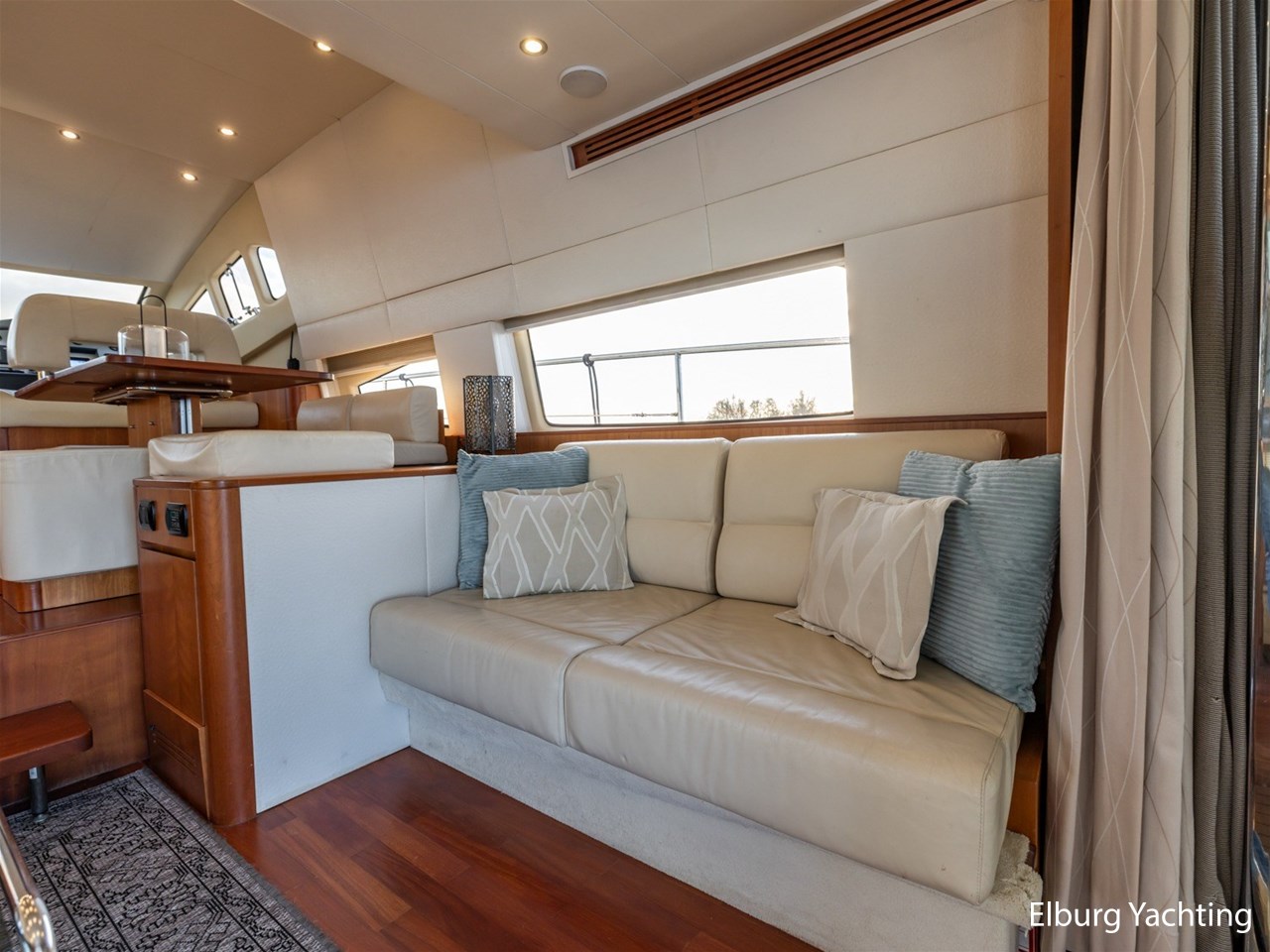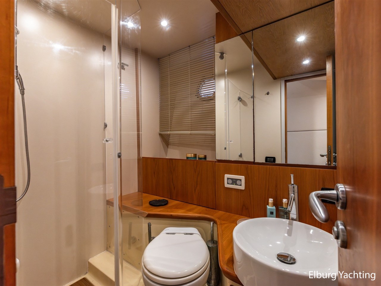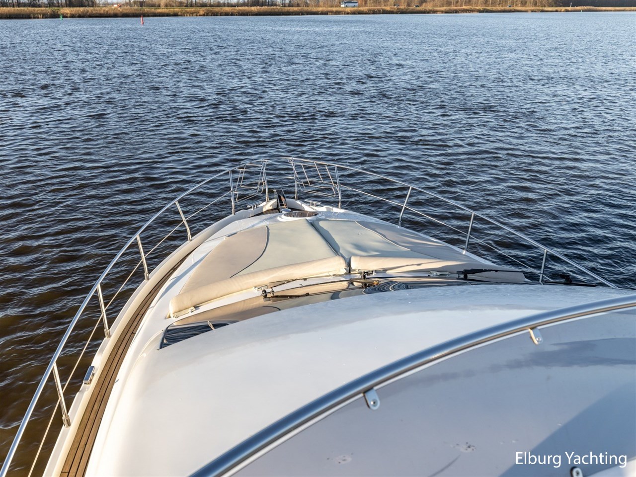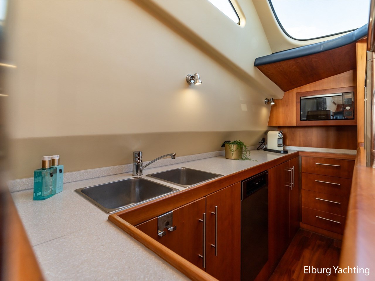 Deze Aicon 54 is een sportief gelijnd snelvarend motorjacht. Het schip heeft een ruime en open indeling, zo is de salon / dinette / stuurstand / kombuis met elkaar verbonden in een en dezelfde ruimte. Benedendeks bevinden zich de 3 x 2 persoons hutten en twee badkamers. Via de grote r.v.s. schuifpui is de binnenruimte met buiten te verbinden. In de kuip is een geïntegreerde kuipbank gesitueerd met bijbehorende kussens. In het achterschip bevindt er zich nog een 1 persoons crew cabin. Via een deur in de spiegel heb je toegang toe het brede zwemplateau, tevens kan hier een bijboot worden geplaatst welke met de hydraulisch gangway te water gelaten kan worden. Via een 'luie' trap vanuit de kuip bereik je de flybridge. De flybridge is van alle gemakken voorzien om hier overzichtelijk het schip te kunnen bedienen en hebben gasten alle comfort van een wetbar, zonnebed en volledige biminitop. Deze Aicon 54 genaamd 'June' is voorzien van: Volledige tent rondom achterdek met uitritsbare delen, 2 x elektrisch bedienbare lieren om het aanleggen te vergemakkelijken, groot afneembaar zonnebed op voordek, volledige kussenset voor open kuip en op flybridge, TV in salon op draaibare beugel, recent vernieuwde Raymarine navigatieapparatuur, de Hydronautica afstandsbediening maakt het aan- en afmeren kinderspel met een directe bediening voor de boeg-/hekschroef en motor(en) voor- en achteruit, wasmachine benedendeks, overzichtelijk elektrisch schakelpaneel, Caterpillar motormanagement displays. Volledig nieuw kunststof teakdek gelegd rondom en op de flybridge in 2026. Voor vragen en/of het maken van een afspraak bent u 7 dagen per week van harte welkom bij Elburg Yachting.