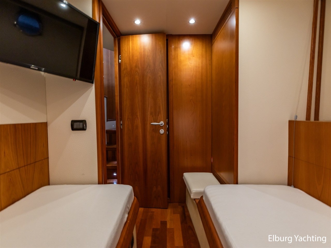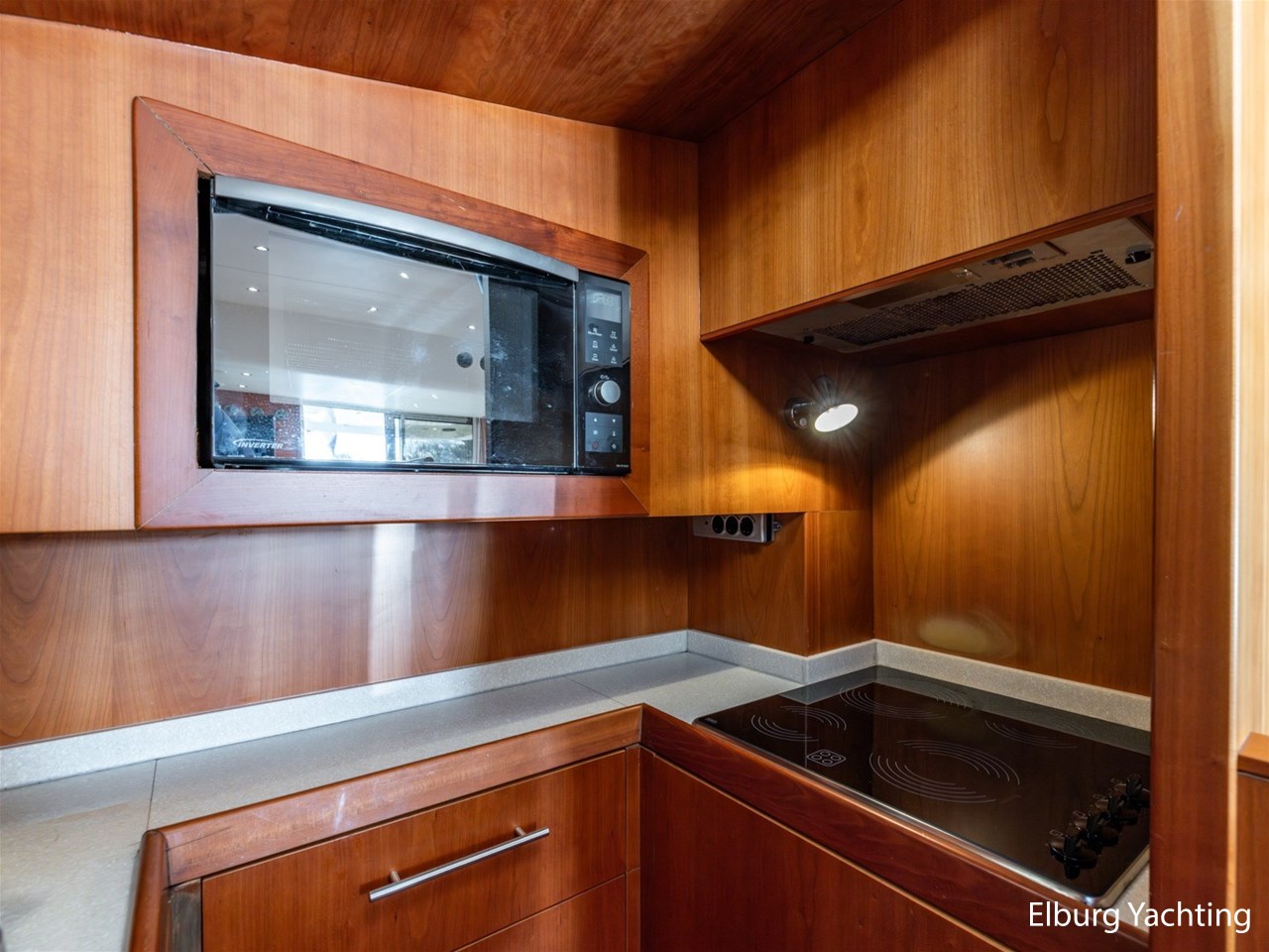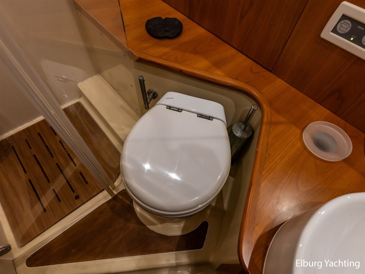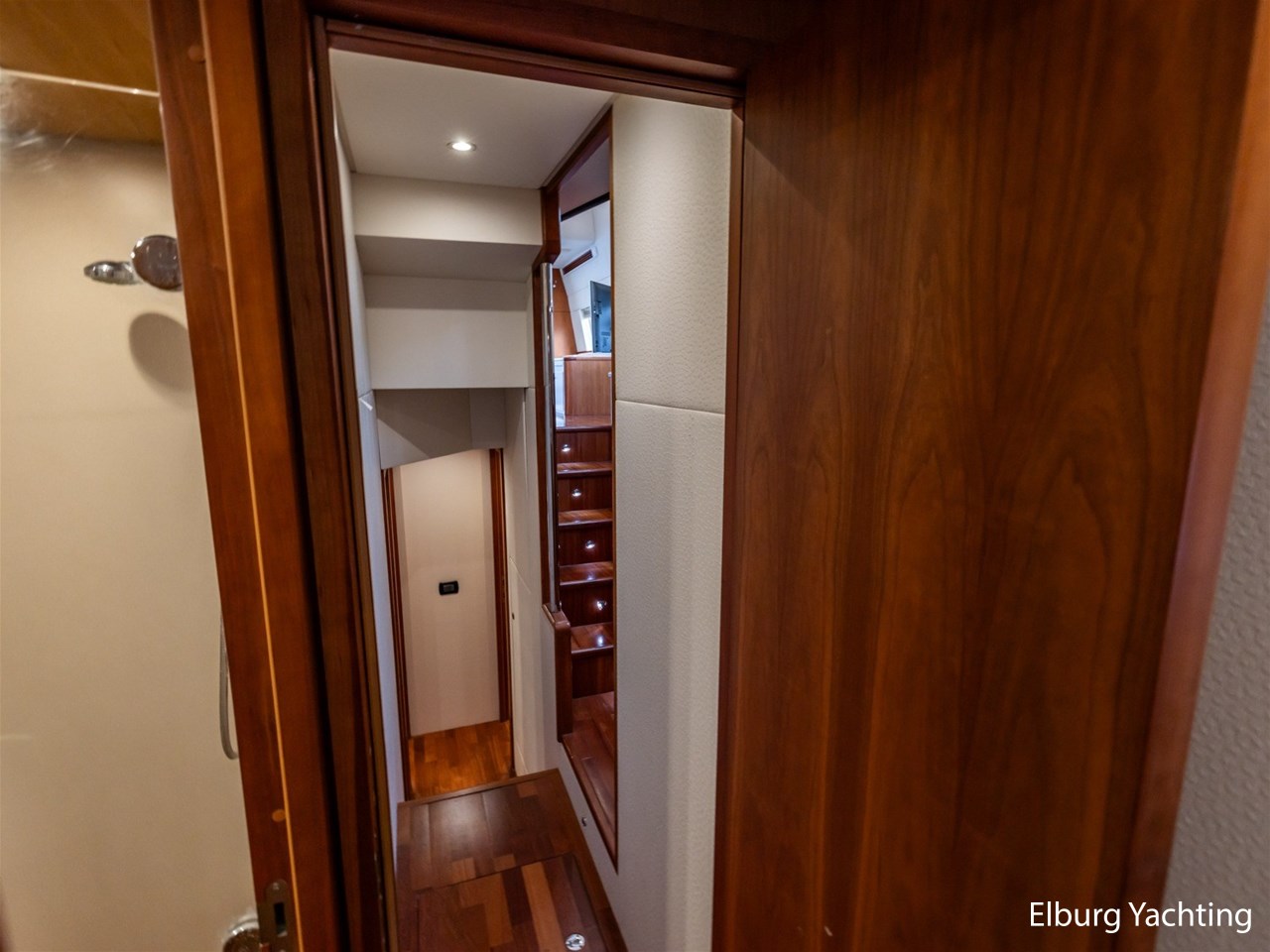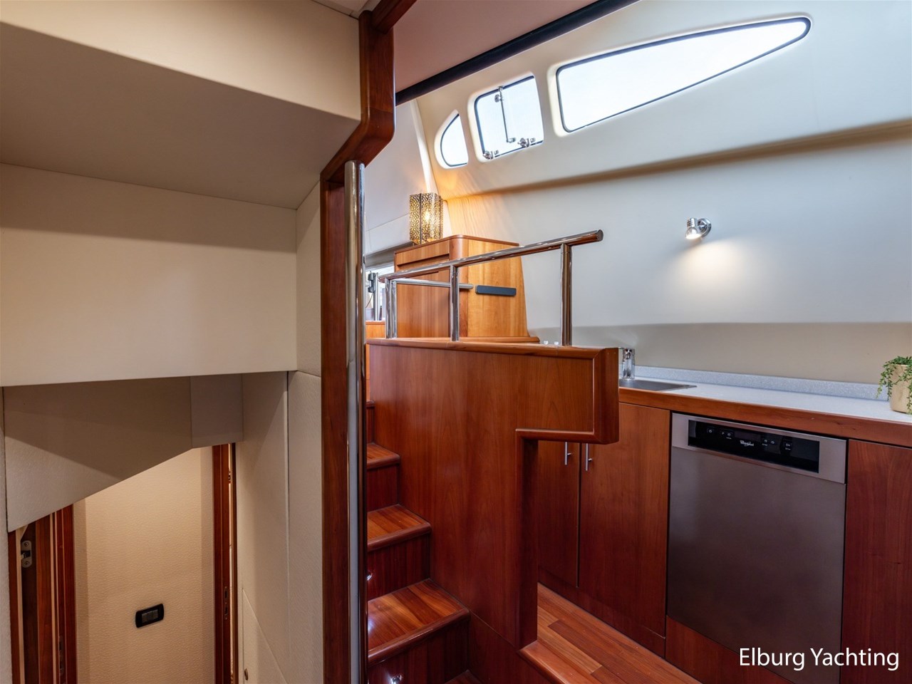 Deze Aicon 54 is een sportief gelijnd snelvarend motorjacht. Het schip heeft een ruime en open indeling, zo is de salon / dinette / stuurstand / kombuis met elkaar verbonden in een en dezelfde ruimte. Benedendeks bevinden zich de 3 x 2 persoons hutten en twee badkamers. Via de grote r.v.s. schuifpui is de binnenruimte met buiten te verbinden. In de kuip is een geïntegreerde kuipbank gesitueerd met bijbehorende kussens. In het achterschip bevindt er zich nog een 1 persoons crew cabin. Via een deur in de spiegel heb je toegang toe het brede zwemplateau, tevens kan hier een bijboot worden geplaatst welke met de hydraulisch gangway te water gelaten kan worden. Via een 'luie' trap vanuit de kuip bereik je de flybridge. De flybridge is van alle gemakken voorzien om hier overzichtelijk het schip te kunnen bedienen en hebben gasten alle comfort van een wetbar, zonnebed en volledige biminitop. Deze Aicon 54 genaamd 'June' is voorzien van: Volledige tent rondom achterdek met uitritsbare delen, 2 x elektrisch bedienbare lieren om het aanleggen te vergemakkelijken, groot afneembaar zonnebed op voordek, volledige kussenset voor open kuip en op flybridge, TV in salon op draaibare beugel, recent vernieuwde Raymarine navigatieapparatuur, de Hydronautica afstandsbediening maakt het aan- en afmeren kinderspel met een directe bediening voor de boeg-/hekschroef en motor(en) voor- en achteruit, wasmachine benedendeks, overzichtelijk elektrisch schakelpaneel, Caterpillar motormanagement displays. Volledig nieuw kunststof teakdek gelegd rondom en op de flybridge in 2026. Voor vragen en/of het maken van een afspraak bent u 7 dagen per week van harte welkom bij Elburg Yachting.