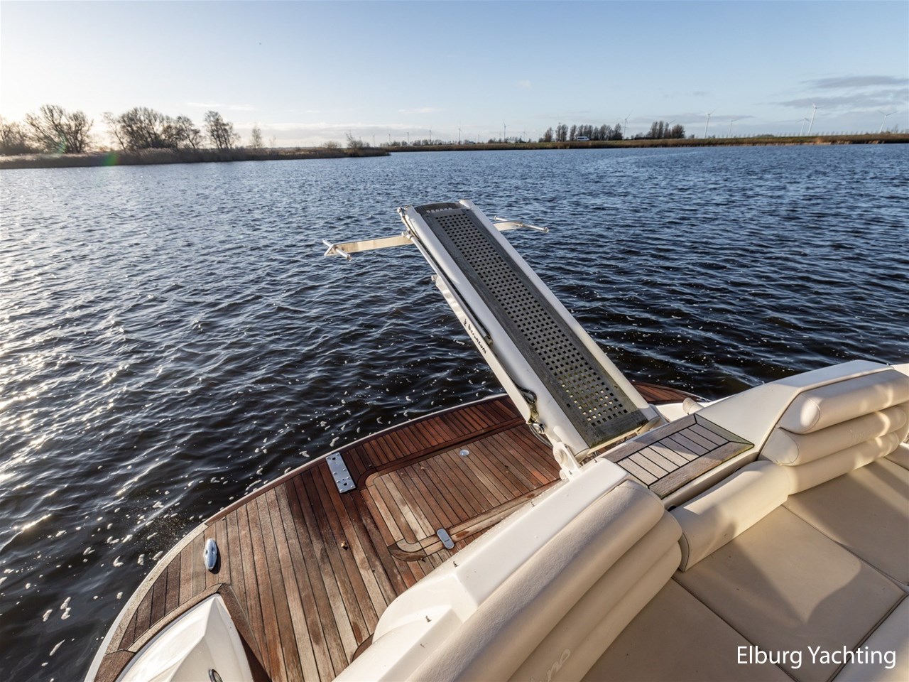 Geïntegreerd met teak + inklapbare r.v.s. zwemtrap