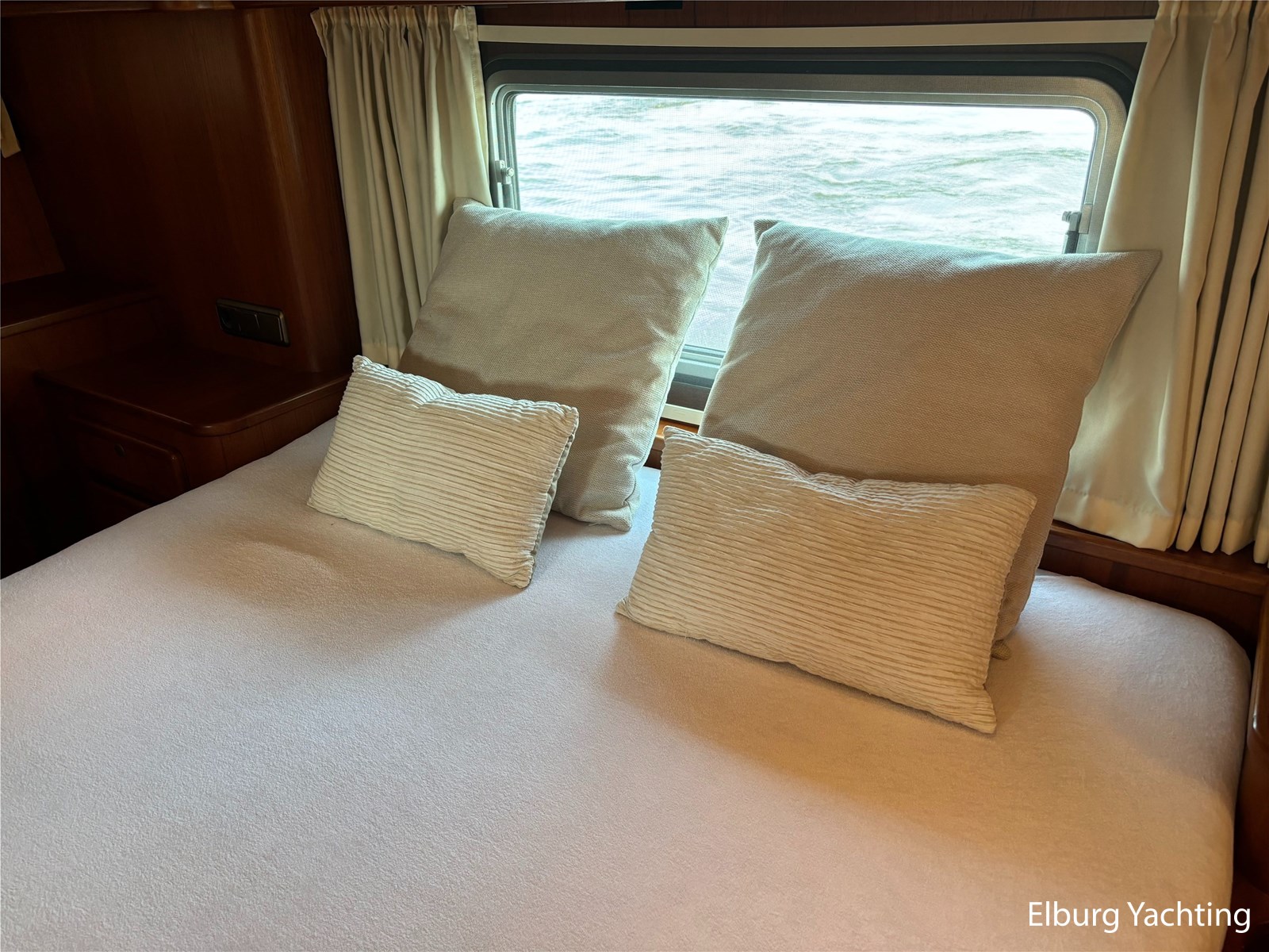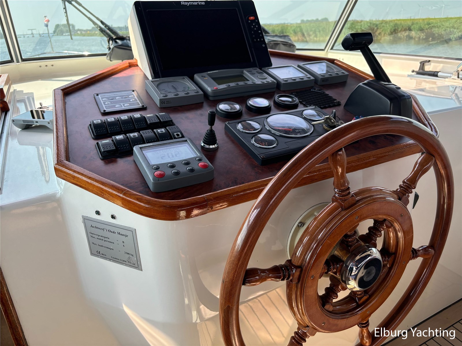Door Vripack ontworpen Spiegelkotter, gebouwd door de gerenommeerde jachtwerf Het Oude Maasje in Waspik. Deze Vripack Spiegelkotter 13.50 is gebouwd met een mooi zwaar en degelijk casco met veel zichtbare details zoals de vaste beschutting rondom het achterdek, dichte/dubbele verschansing rondom het gangboord, dubbele r.v.s. reling, ca. 10 bolders rondom het dek en klapbare beugel. Het interieur is licht en ruim opgezet. De houtbetimmering is van hoge kwaliteit en voelt degelijk aan met ronde afwerking in de omlijsting. Het schip biedt veel luxe en comfort aan boord zoals centrale verwarming, dubbel glas, was-droog combinatie Haier I-pro serie 7 (2024), generator, groot overdekt achterdek. Verder is deze Vripack Spiegelkotter 13.50 uitgerust met: Afneembare r.v.s. zijtrap, elektrisch bedienbare beugel over stuurstand, volledig afsluitbare tent over stuurstand en biminitop, Raymarine roerstandaangever, deur naar machinekamer voor makkelijke toegang, muggenhorren voor patrijspoorten met regenkappen, groot raam in spiegel, bergruimte onder salonbank, wateraansluiting aan dek, douche en toilet gescheiden in achterschip. Antifouling en anodes vernieuwd in 2024. Het schip is op afspraak op locatie te bezichtigen, wij maken graag met u een afspraak hiervoor. Voor vragen en/of het maken van een afspraak bent u 7 dagen per week van harte welkom bij Elburg Yachting.