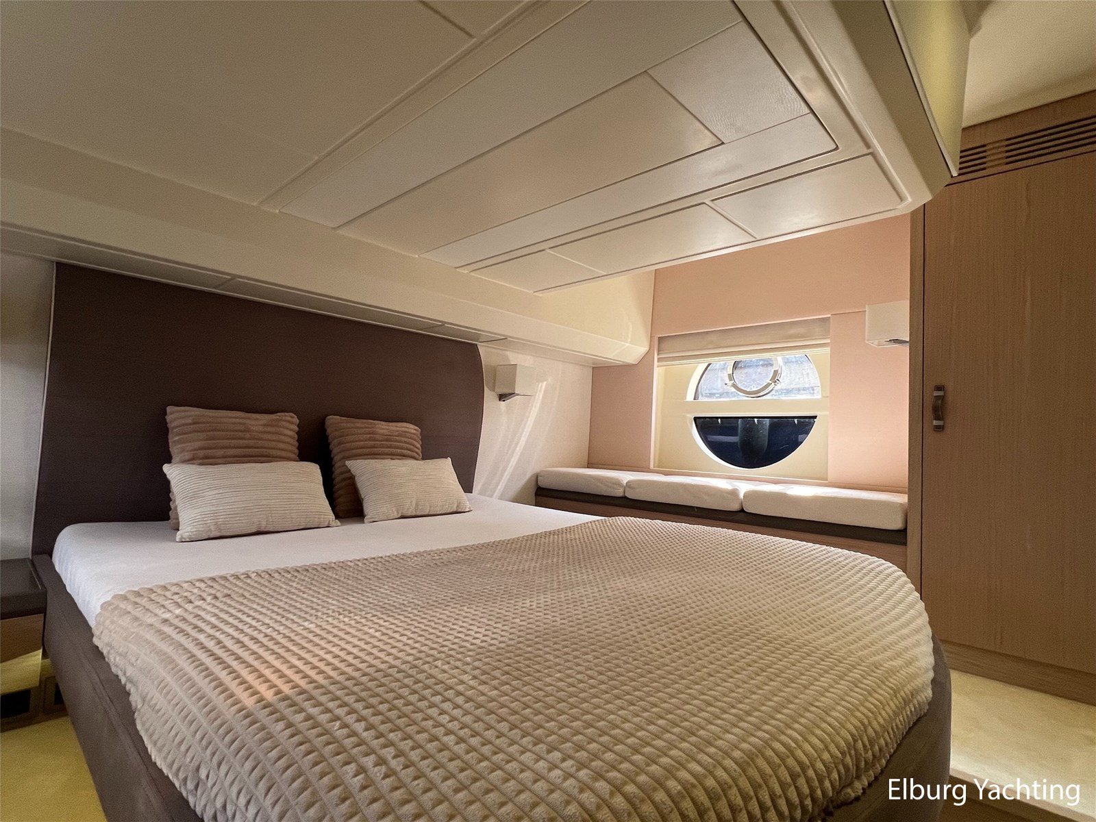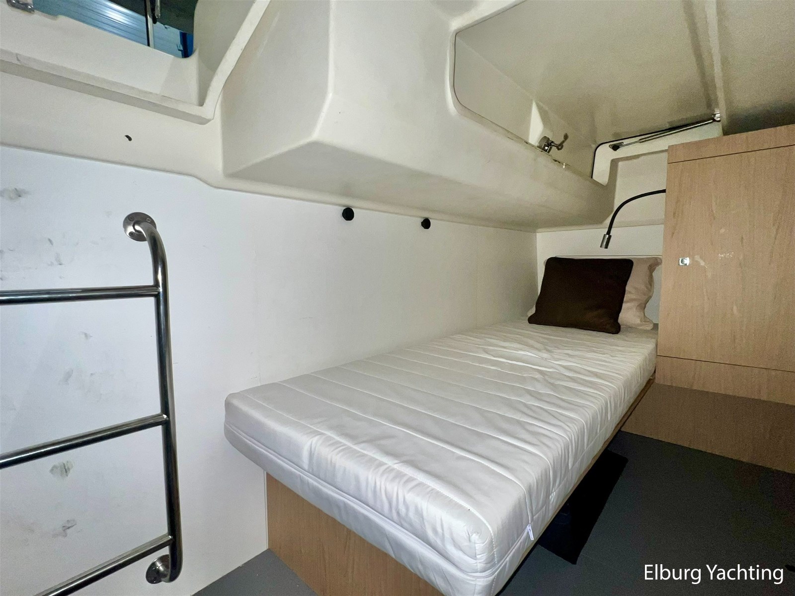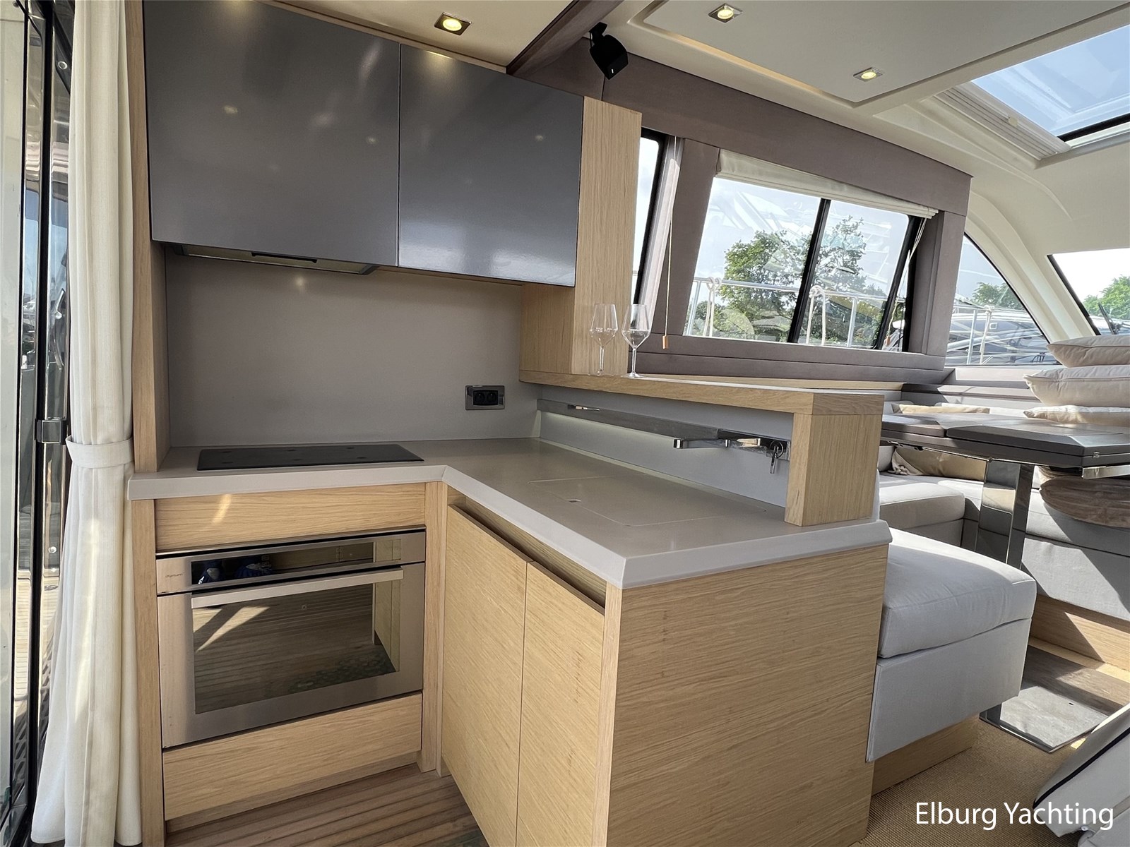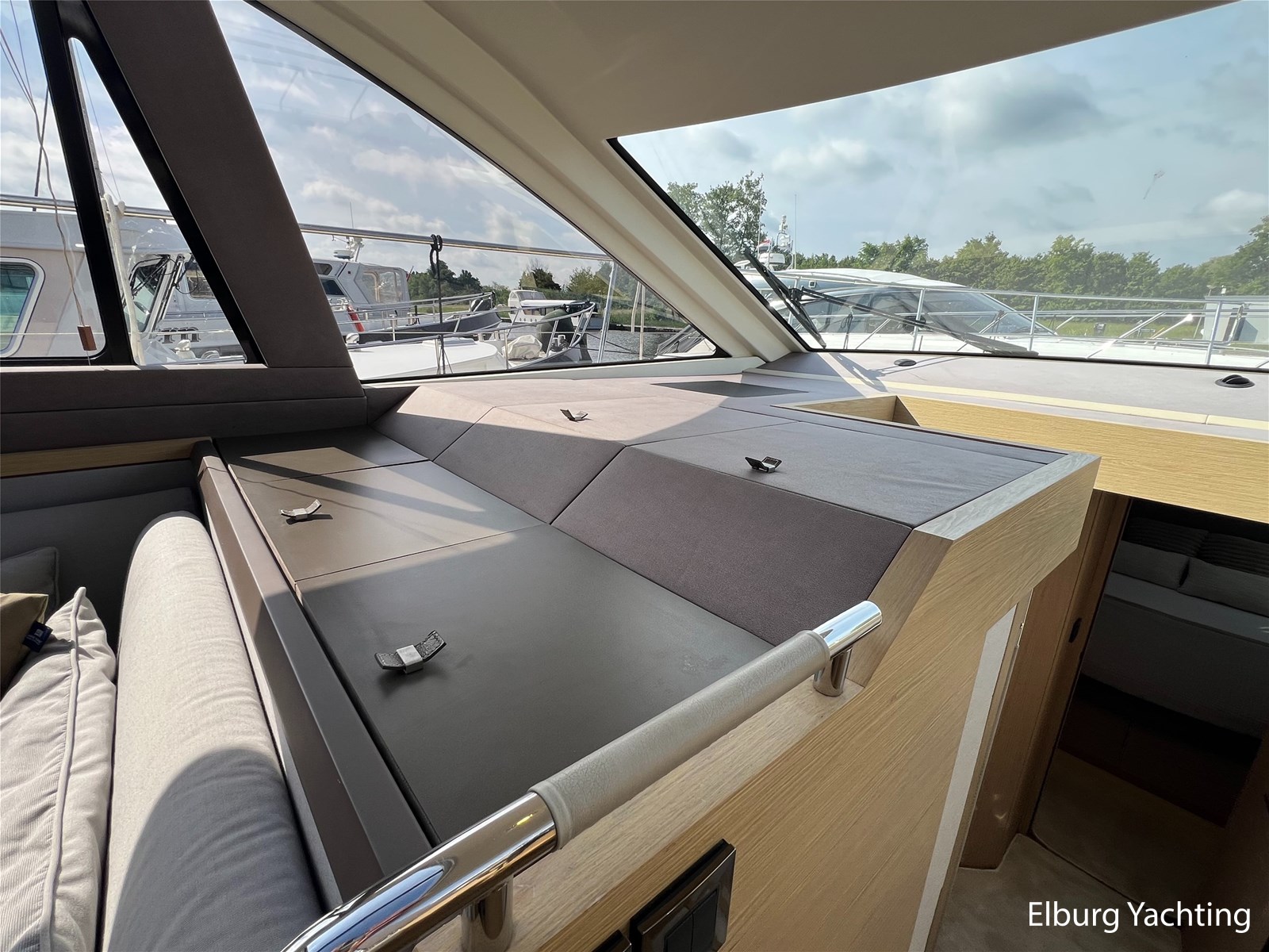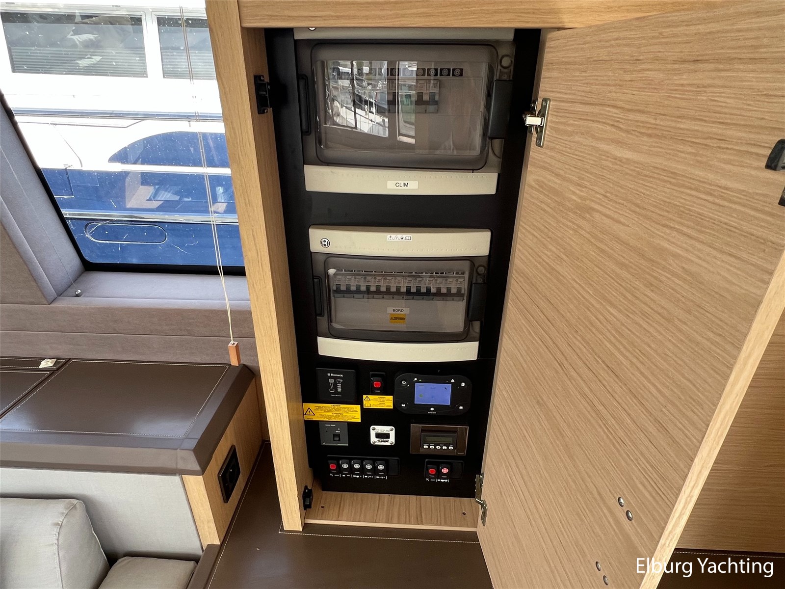Zeer compleet uitgevoerde Monte Carlo 5S. De 5S-serie onderscheidt zich door stoere en sportieve looks en een hardtop met een buitenlounge op het dak. Vanaf het hydraulisch beweegbare zwemplateau wordt de open kuip betreden. De kuip heeft een geïntegreerde bank met bijbehorende kussens en vaste tafel. Aan SB zijde in de kuip bevindt zich de toegang tot de extra hut (crew cabin) in het achterschip, deze hut is tevens te gebruiken als extra opbergruimte. Via de open kuip stap je eenvoudig op naar het gangboord met goede houvast rondom voor een veilige loop over het dek. Op het voordek zijn twee geïntegreerde klapbare zonnebedden aanwezig. Via een geïntegreerde trap vanuit de kuip betreed je de buitenlounge op het dak. Deze buitenlounge heeft een in hoogte verstelbare tafel waarmee er ook een groot zonnebed gecreëerd kan worden. De salon en de kuip laten zich verbinden door drie grote glazen wegklapbare deuren. De kombuis is gesitueerd bij de ingang van de salon. Door het openen van de salondeuren wordt de kombuis volledig betrokken bij de kuip. De salon gecombineerd met de stuurstand bevindt zich op dekniveau. Via de de grote ramen rondom (getint) is er goed zicht en komt er veel licht binnen. Het buitengevoel naar binnen brengen kan door het openen van het grote elektrisch bedienbare schuifdak en twee zijruiten. Benedendeks bevinden zich drie hutten voor in totaal zes personen. De 2-persoons eigenaarshut bevindt zich midscheeps over de volledige breedte van het schip. Deze hut is voorzien van eigen sanitair en-suite. Aan stuurboordzijde bevindt zich een 1 x 2 persoons stapelbed en in de voorhut een 2-persoons Frans bed. Centraal is er een tweede badkamer met douche en toilet gesitueerd. Deze Monte Carlo 5S is verder voorzien van: achteruitkijk camera via plotterscherm, elektrisch bedienbare gangway, kuip afsluitbaar met deur naar zwemplateau, TV op lift in salon, Volvo ship/motormanagement display bij stuurstand, Fusion audiosysteem, trimtabs, Yachtcontroller afstandsbediening om te manoeuvreren middels de IPS aandrijving + boegschroef. Voor vragen en/of het maken van een afspraak bent u 7 dagen per week van harte welkom bij Elburg Yachting.