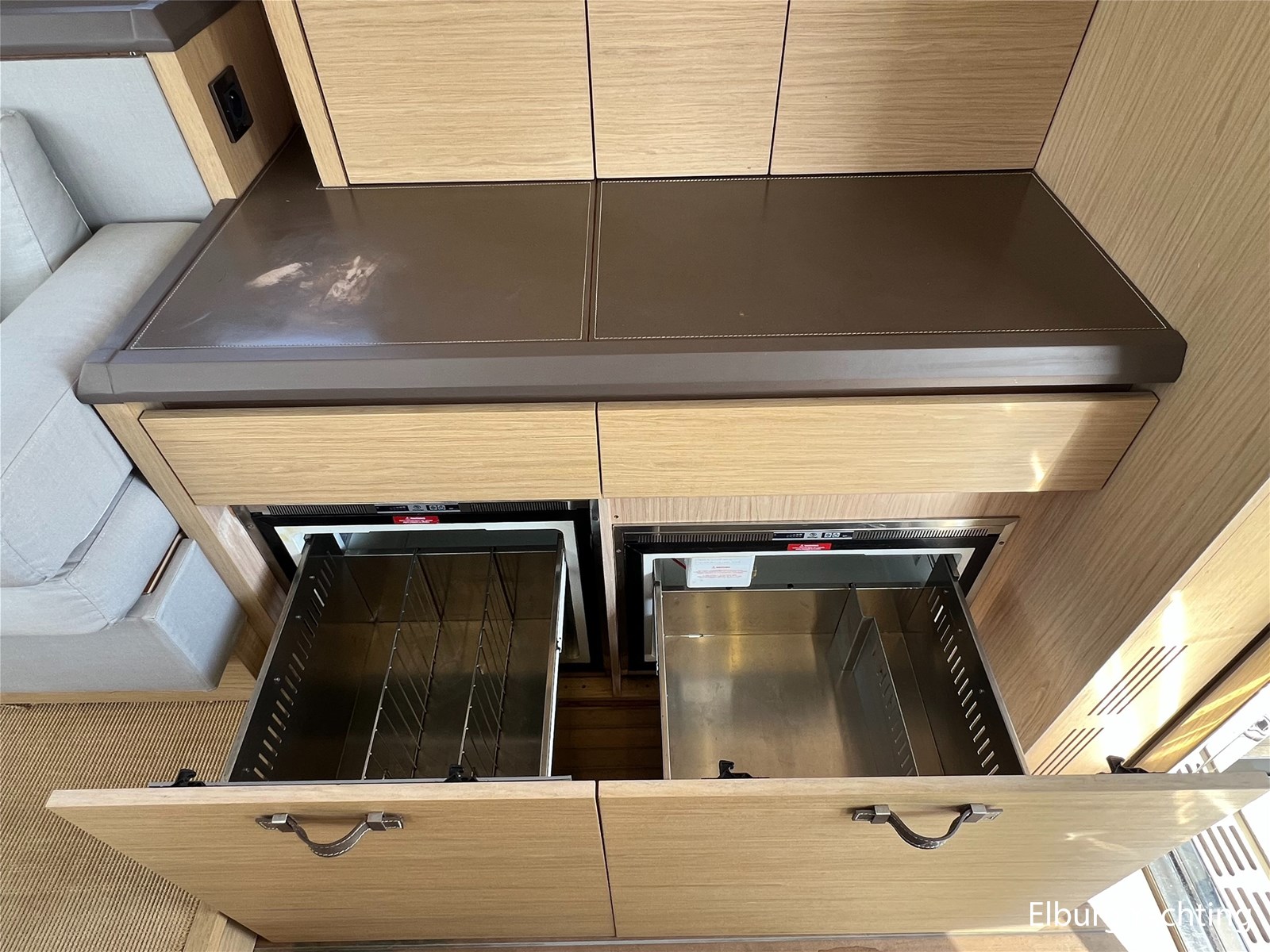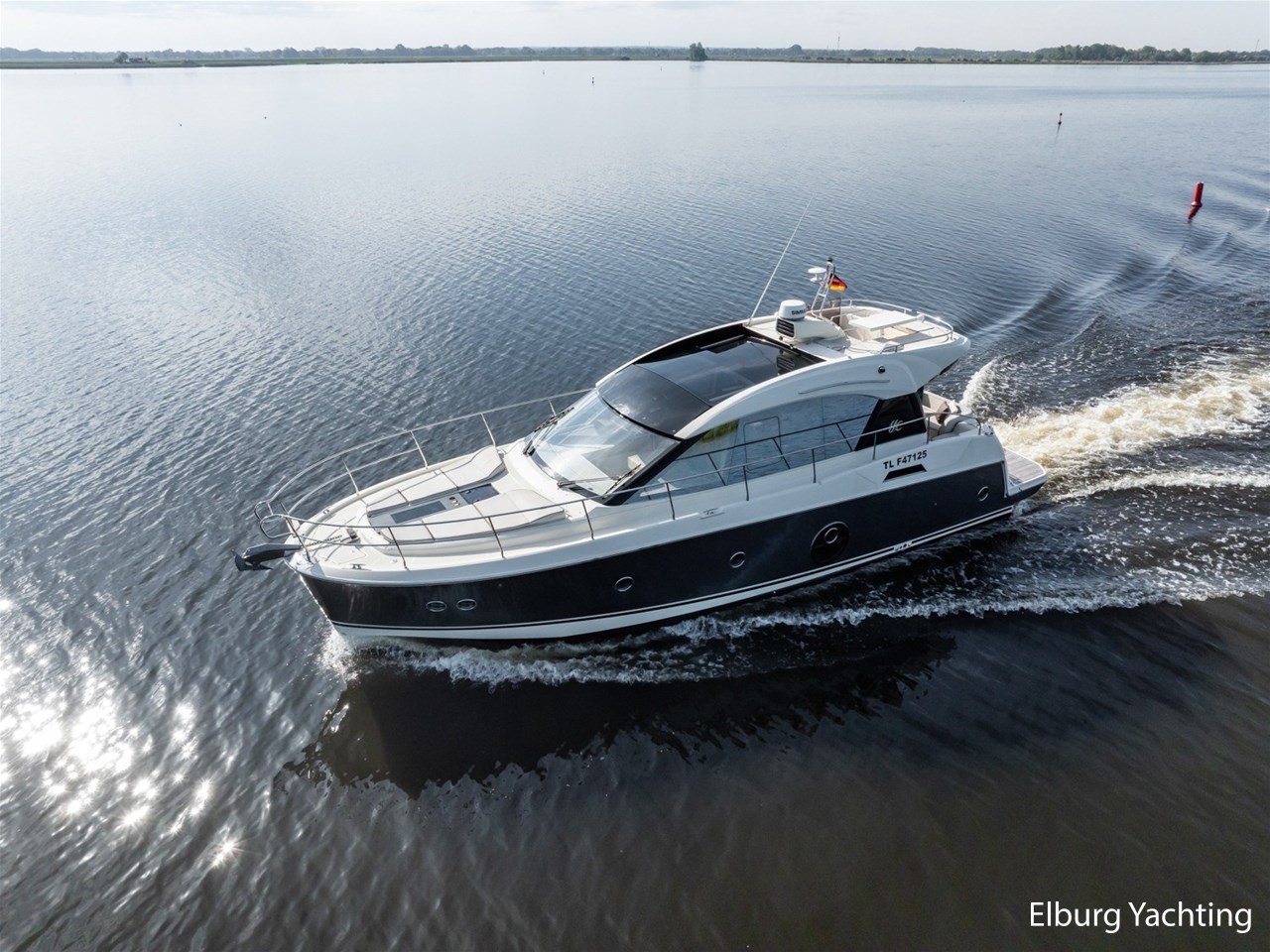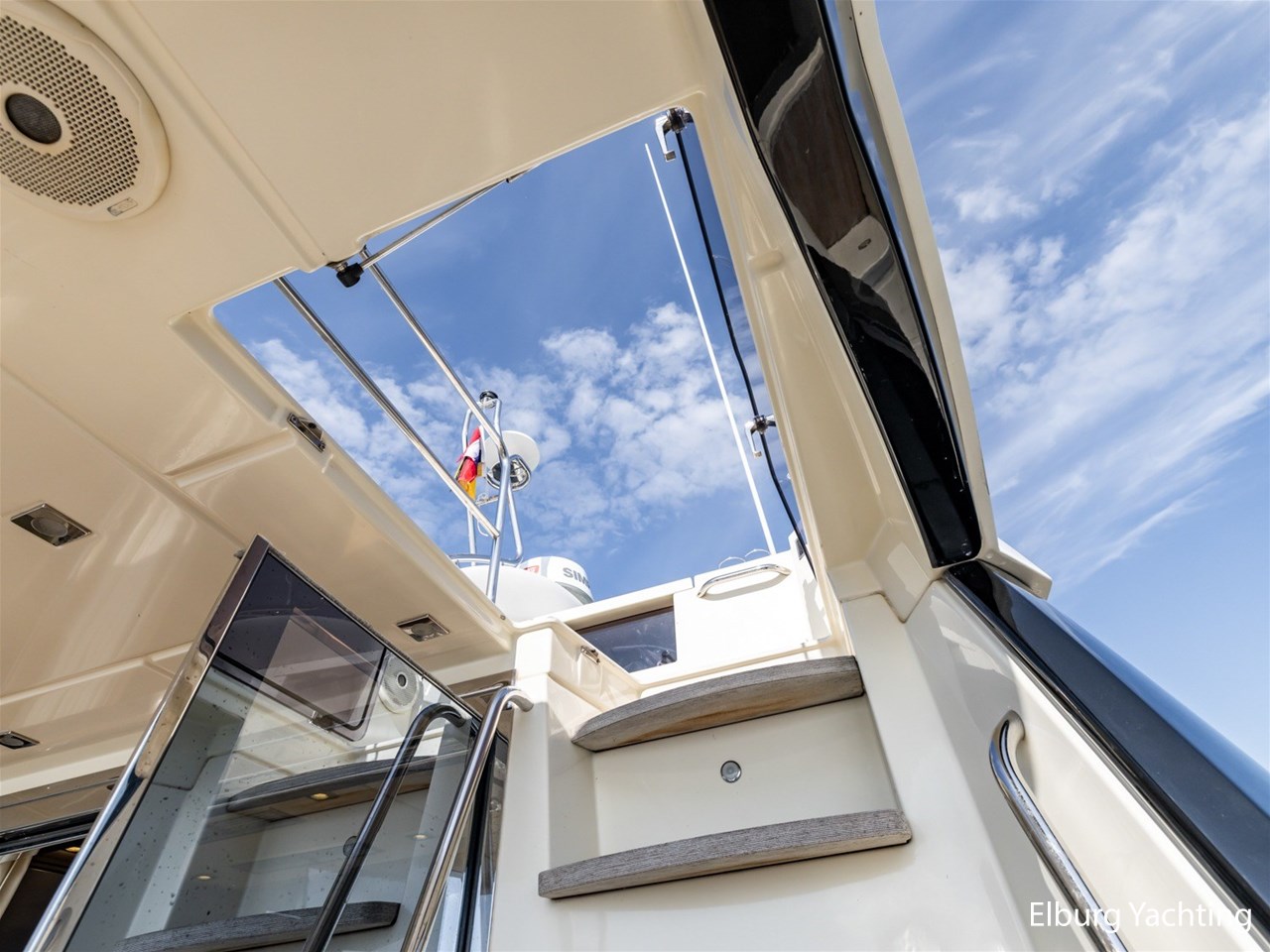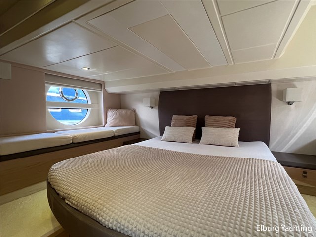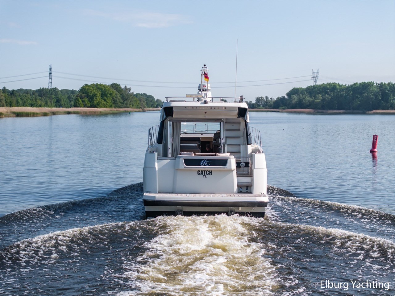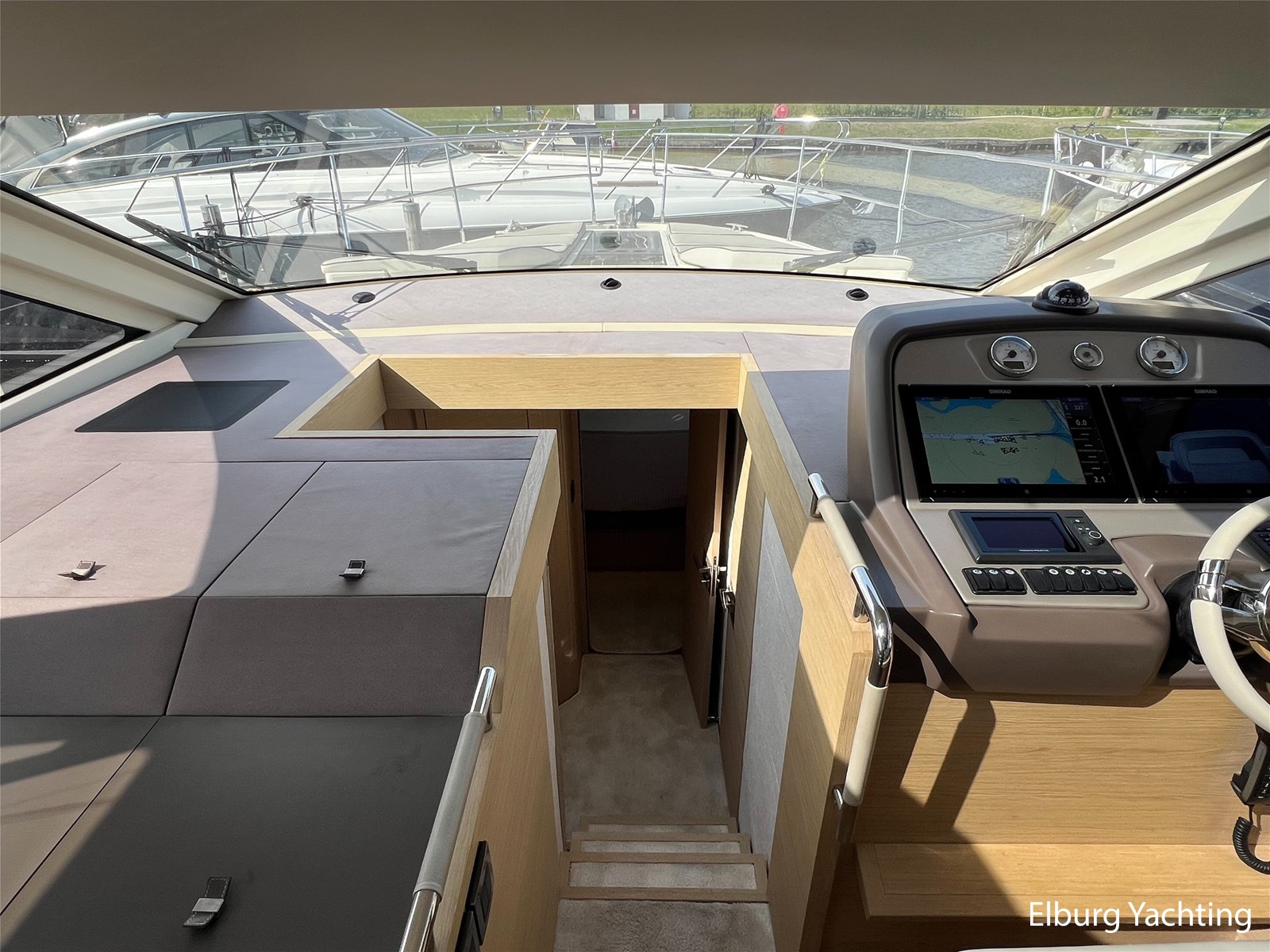 Zeer compleet uitgevoerde Monte Carlo 5S. De 5S-serie onderscheidt zich door stoere en sportieve looks en een hardtop met een buitenlounge op het dak. Vanaf het hydraulisch beweegbare zwemplateau wordt de open kuip betreden. De kuip heeft een geïntegreerde bank met bijbehorende kussens en vaste tafel. Aan SB zijde in de kuip bevindt zich de toegang tot de extra hut (crew cabin) in het achterschip, deze hut is tevens te gebruiken als extra opbergruimte. Via de open kuip stap je eenvoudig op naar het gangboord met goede houvast rondom voor een veilige loop over het dek. Op het voordek zijn twee geïntegreerde klapbare zonnebedden aanwezig. Via een geïntegreerde trap vanuit de kuip betreed je de buitenlounge op het dak. Deze buitenlounge heeft een in hoogte verstelbare tafel waarmee er ook een groot zonnebed gecreëerd kan worden. De salon en de kuip laten zich verbinden door drie grote glazen wegklapbare deuren. De kombuis is gesitueerd bij de ingang van de salon. Door het openen van de salondeuren wordt de kombuis volledig betrokken bij de kuip. De salon gecombineerd met de stuurstand bevindt zich op dekniveau. Via de de grote ramen rondom (getint) is er goed zicht en komt er veel licht binnen. Het buitengevoel naar binnen brengen kan door het openen van het grote elektrisch bedienbare schuifdak en twee zijruiten. Benedendeks bevinden zich drie hutten voor in totaal zes personen. De 2-persoons eigenaarshut bevindt zich midscheeps over de volledige breedte van het schip. Deze hut is voorzien van eigen sanitair en-suite. Aan stuurboordzijde bevindt zich een 1 x 2 persoons stapelbed en in de voorhut een 2-persoons Frans bed. Centraal is er een tweede badkamer met douche en toilet gesitueerd. Deze Monte Carlo 5S is verder voorzien van: achteruitkijk camera via plotterscherm, elektrisch bedienbare gangway, kuip afsluitbaar met deur naar zwemplateau, TV op lift in salon, Volvo ship/motormanagement display bij stuurstand, Fusion audiosysteem, trimtabs, Yachtcontroller afstandsbediening om te manoeuvreren middels de IPS aandrijving + boegschroef. Voor vragen en/of het maken van een afspraak bent u 7 dagen per week van harte welkom bij Elburg Yachting.