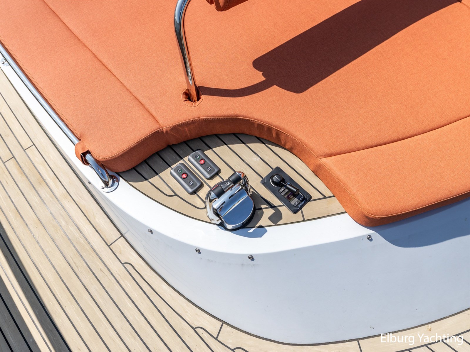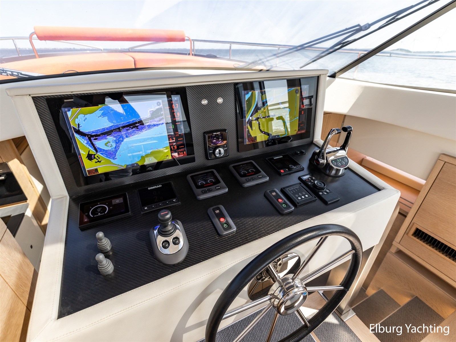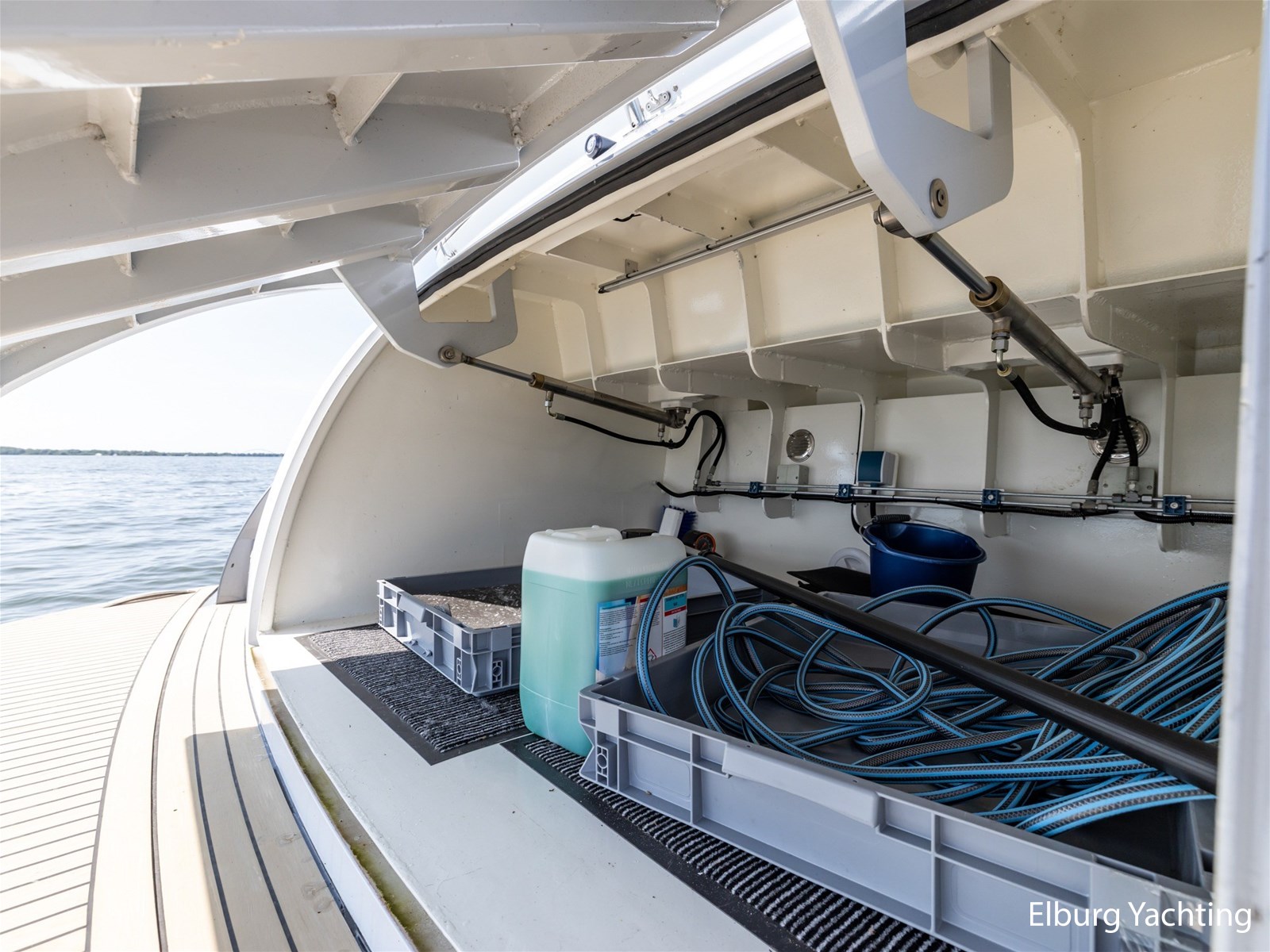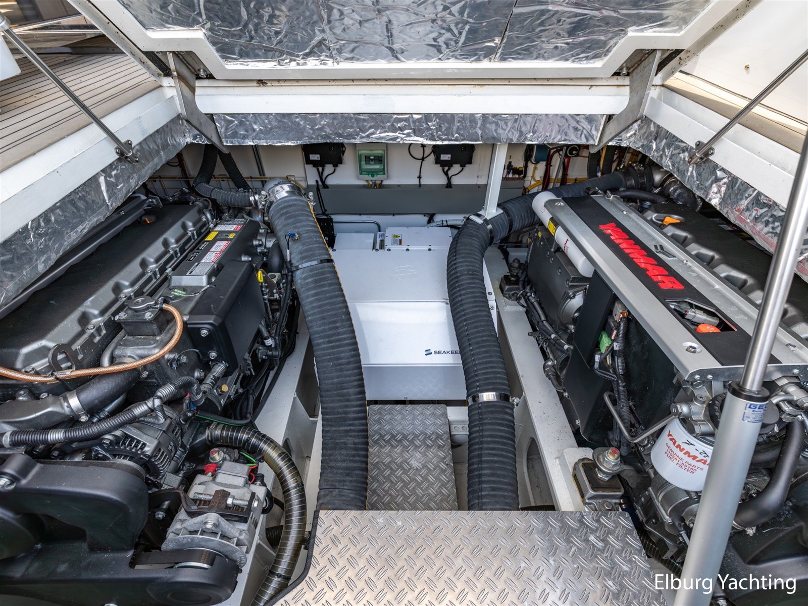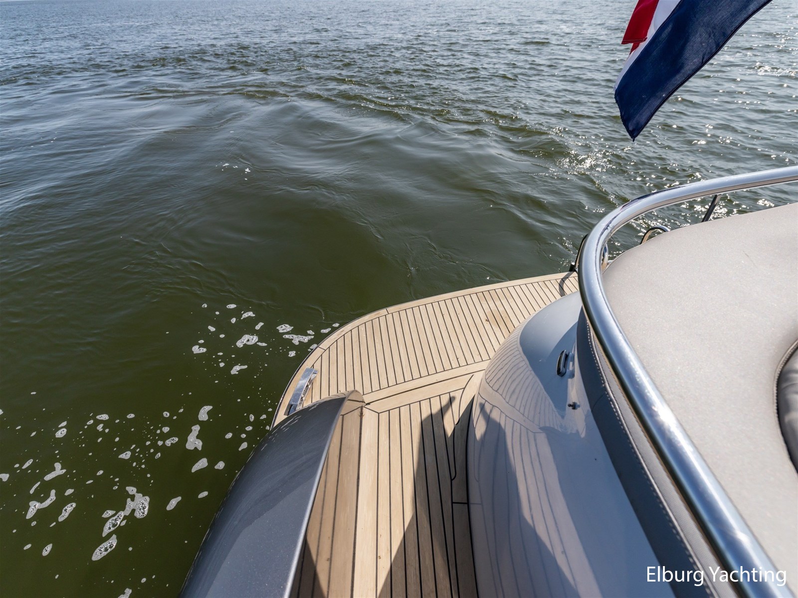 Prachtige Steeler 52S uit 2018 van de succesvolle Steeler Perfomance modelserie. Deze snelvarende aluminium performance cruiser is van alle gemakken voorzien voor mooie dagtochten of langere afstanden door binnenland of op open zee. De open kuip layout biedt een praktisch en gelijkvloerse loop rondom en door het schip. Alle ruimtes staan met elkaar in open verbinding waardoor alle opvarenden met elkaar in contact blijven. In het oogspringende kenmerken van deze Steeler 52S Performance zijn de extra stuurpositie op het voordek, hydraulisch beweegbaar salondak, zijdeur aan stuurboordzijde, Seakeeper Gyro stabilisator, zowel vloerverwarming en airconditioning aan boord. Dit schip is uitgerust met 2 x 480 pk Yanmar diesel motoren met vaste schroefas aandrijving. Deze Steeler 52S Performance is uitgerust met: Volledige wegklapbare tent over het achterdek, inklapbare gangway naar achteren, berging in spiegel, gezellige L-vormig buitenzit met afneembare kussenset, buiten spoelbak met warm/koud water, klapbare r.v.s. salondeuren om de kuip en salon gelijkvloers met elkaar te verbinden, TV op lift in salon, stuurbank en voetenplateau elektrisch in hoogte verstelbaar, wasmachine aan boord, Fusion audiosysteem, Zipwake trimsysteem, Yanmar dockingstation, Hydronautica afstandsbediening voor aan- en afmeren, machine kamer toegankelijk via groot luik in open kuip, dubbele Separ brandstoffilters, aparte technische ruimte voor alle elektrische componenten, groot zonnebed met afdekhoes op het voordek met extra bediening voor de motoren en het roer. Voor vragen en/of het maken van een afspraak bent u 7 dagen per week van harte welkom bij Elburg Yachting.