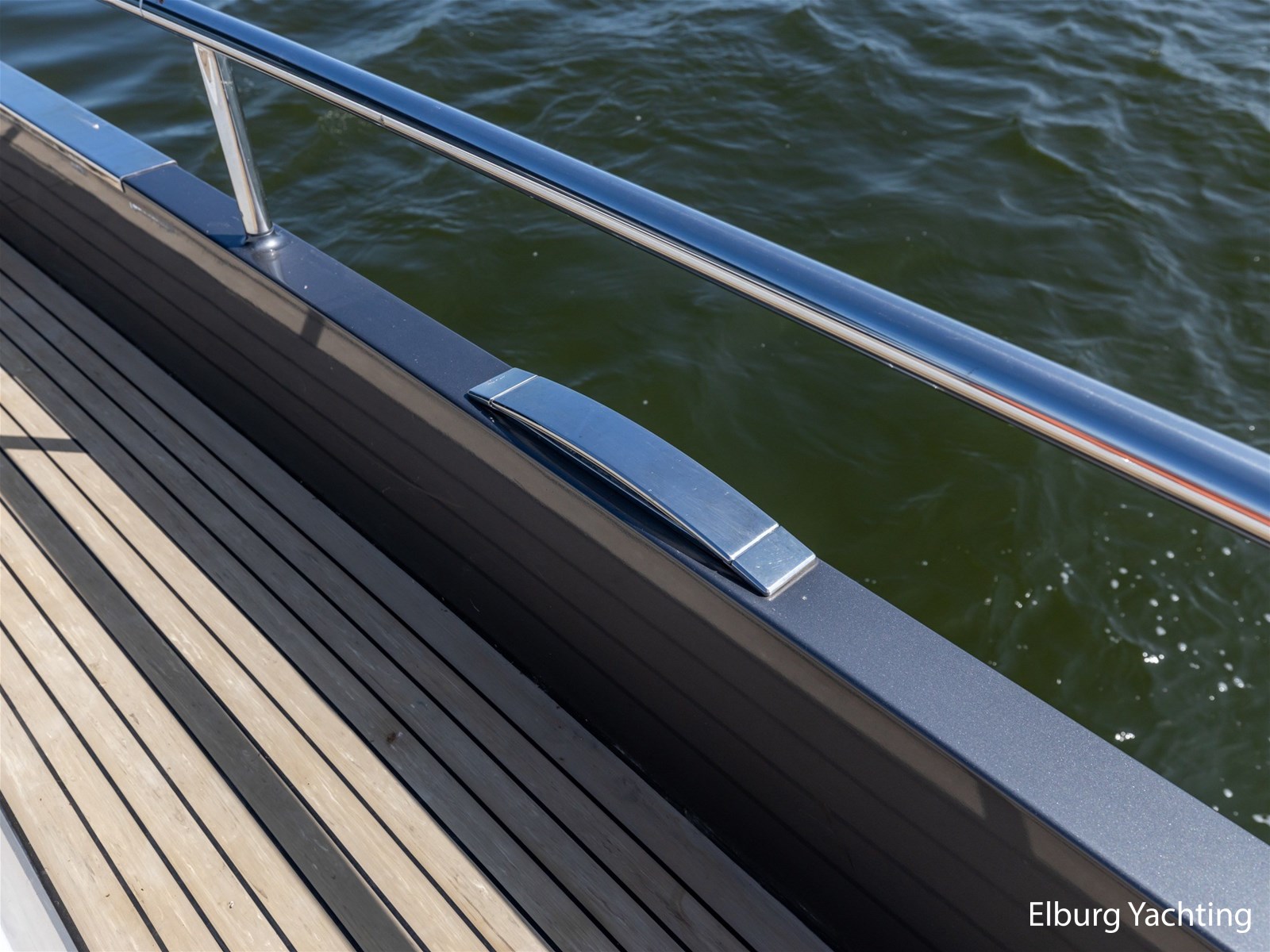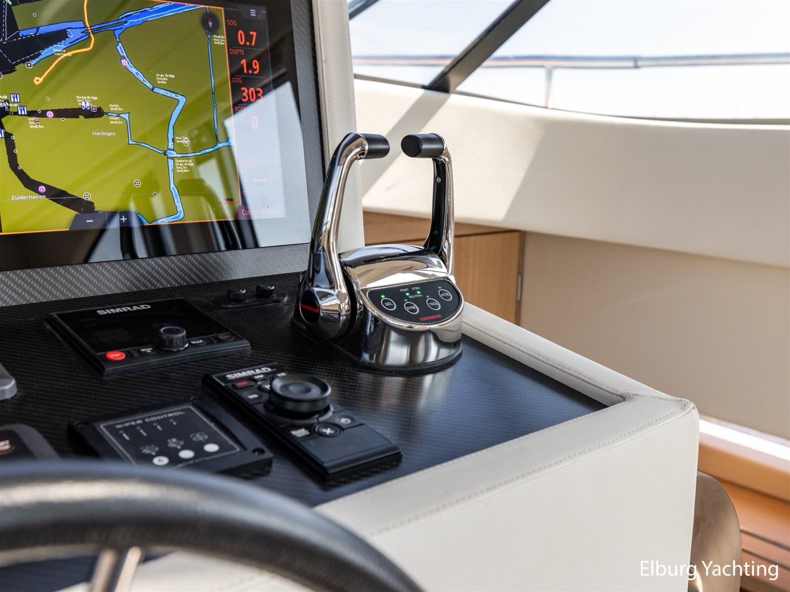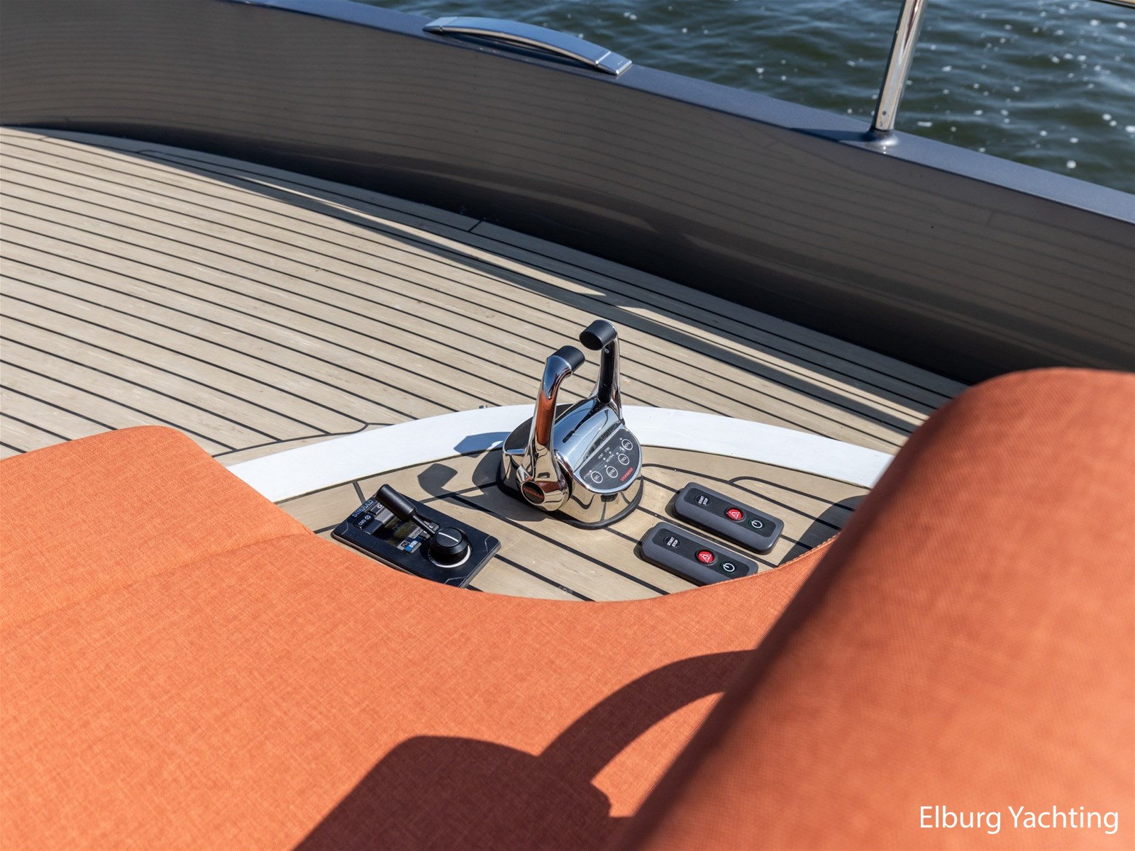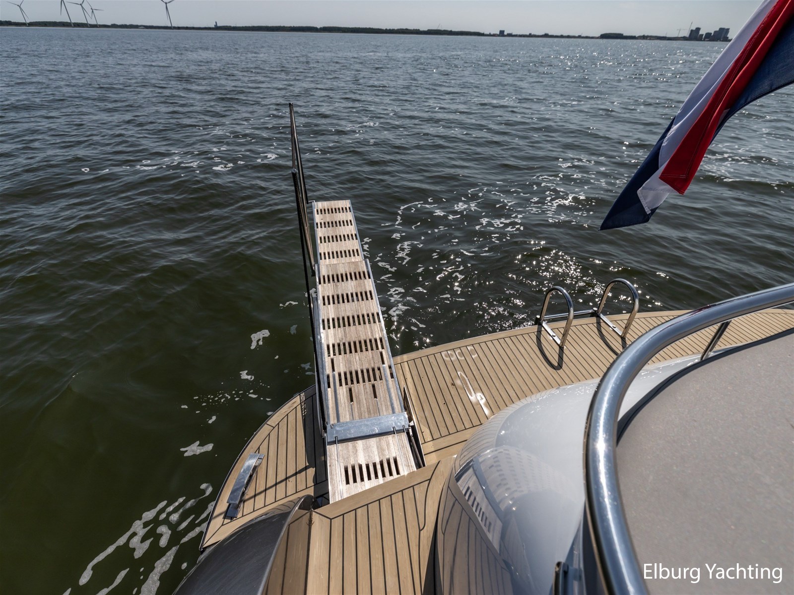 Prachtige Steeler 52S uit 2018 van de succesvolle Steeler Perfomance modelserie. Deze snelvarende aluminium performance cruiser is van alle gemakken voorzien voor mooie dagtochten of langere afstanden door binnenland of op open zee. De open kuip layout biedt een praktisch en gelijkvloerse loop rondom en door het schip. Alle ruimtes staan met elkaar in open verbinding waardoor alle opvarenden met elkaar in contact blijven. In het oogspringende kenmerken van deze Steeler 52S Performance zijn de extra stuurpositie op het voordek, hydraulisch beweegbaar salondak, zijdeur aan stuurboordzijde, Seakeeper Gyro stabilisator, zowel vloerverwarming en airconditioning aan boord. Dit schip is uitgerust met 2 x 480 pk Yanmar diesel motoren met vaste schroefas aandrijving. Deze Steeler 52S Performance is uitgerust met: Volledige wegklapbare tent over het achterdek, inklapbare gangway naar achteren, berging in spiegel, gezellige L-vormig buitenzit met afneembare kussenset, buiten spoelbak met warm/koud water, klapbare r.v.s. salondeuren om de kuip en salon gelijkvloers met elkaar te verbinden, TV op lift in salon, stuurbank en voetenplateau elektrisch in hoogte verstelbaar, wasmachine aan boord, Fusion audiosysteem, Zipwake trimsysteem, Yanmar dockingstation, Hydronautica afstandsbediening voor aan- en afmeren, machine kamer toegankelijk via groot luik in open kuip, dubbele Separ brandstoffilters, aparte technische ruimte voor alle elektrische componenten, groot zonnebed met afdekhoes op het voordek met extra bediening voor de motoren en het roer. Voor vragen en/of het maken van een afspraak bent u 7 dagen per week van harte welkom bij Elburg Yachting.