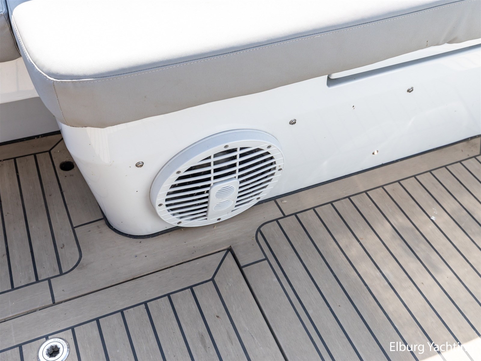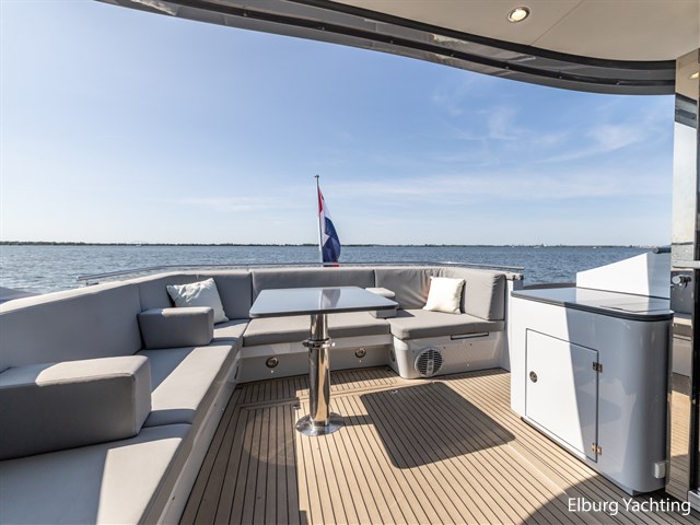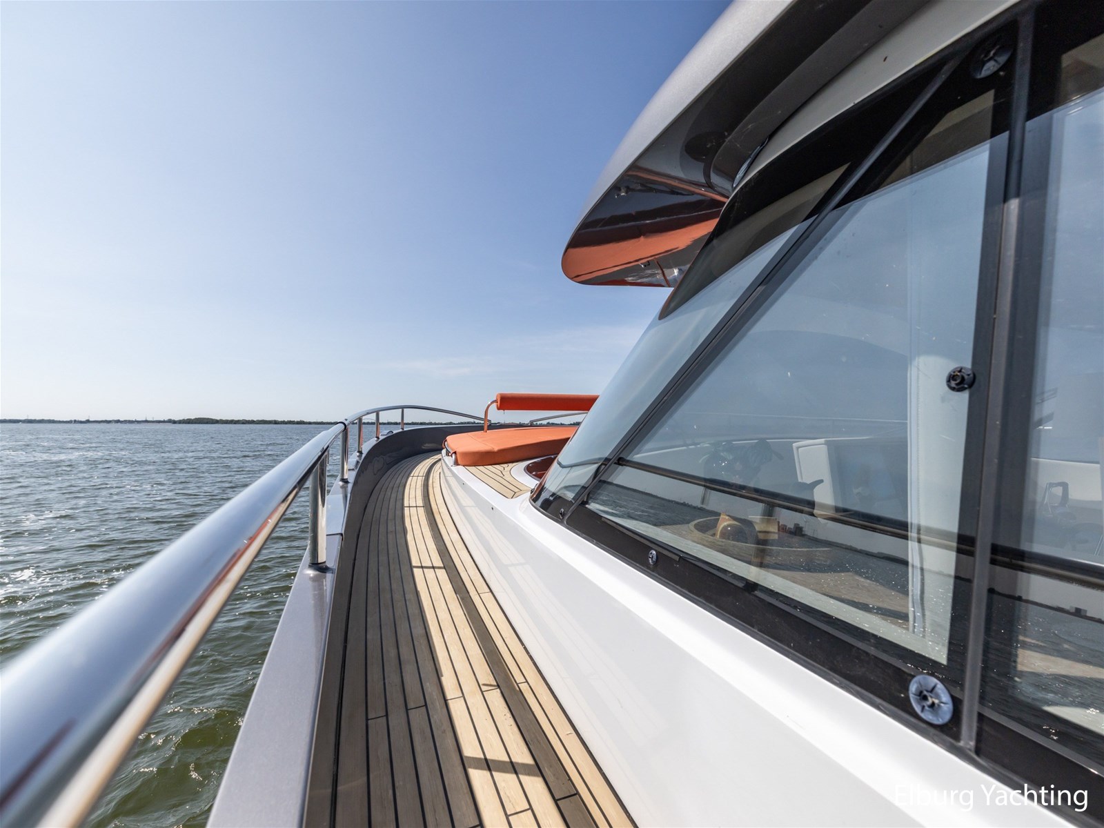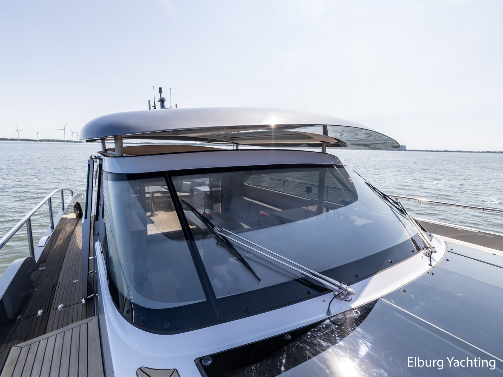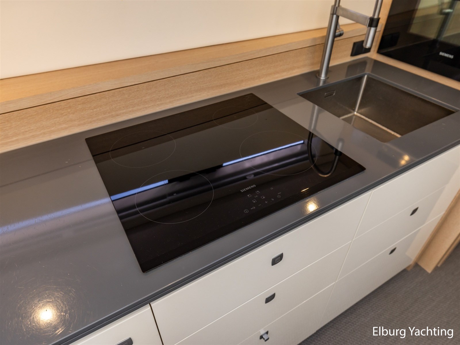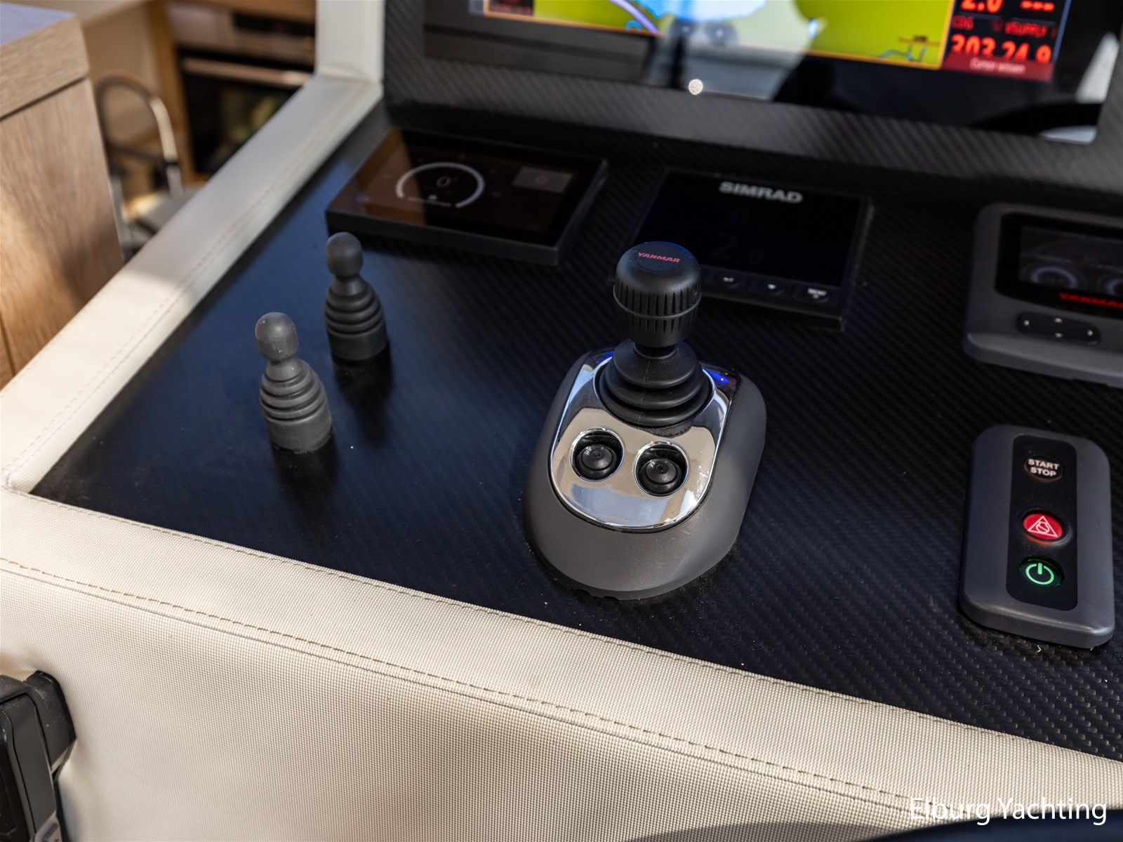 Prachtige Steeler 52S uit 2018 van de succesvolle Steeler Perfomance modelserie. Deze snelvarende aluminium performance cruiser is van alle gemakken voorzien voor mooie dagtochten of langere afstanden door binnenland of op open zee. De open kuip layout biedt een praktisch en gelijkvloerse loop rondom en door het schip. Alle ruimtes staan met elkaar in open verbinding waardoor alle opvarenden met elkaar in contact blijven. In het oogspringende kenmerken van deze Steeler 52S Performance zijn de extra stuurpositie op het voordek, hydraulisch beweegbaar salondak, zijdeur aan stuurboordzijde, Seakeeper Gyro stabilisator, zowel vloerverwarming en airconditioning aan boord. Dit schip is uitgerust met 2 x 480 pk Yanmar diesel motoren met vaste schroefas aandrijving. Deze Steeler 52S Performance is uitgerust met: Volledige wegklapbare tent over het achterdek, inklapbare gangway naar achteren, berging in spiegel, gezellige L-vormig buitenzit met afneembare kussenset, buiten spoelbak met warm/koud water, klapbare r.v.s. salondeuren om de kuip en salon gelijkvloers met elkaar te verbinden, TV op lift in salon, stuurbank en voetenplateau elektrisch in hoogte verstelbaar, wasmachine aan boord, Fusion audiosysteem, Zipwake trimsysteem, Yanmar dockingstation, Hydronautica afstandsbediening voor aan- en afmeren, machine kamer toegankelijk via groot luik in open kuip, dubbele Separ brandstoffilters, aparte technische ruimte voor alle elektrische componenten, groot zonnebed met afdekhoes op het voordek met extra bediening voor de motoren en het roer. Voor vragen en/of het maken van een afspraak bent u 7 dagen per week van harte welkom bij Elburg Yachting.
