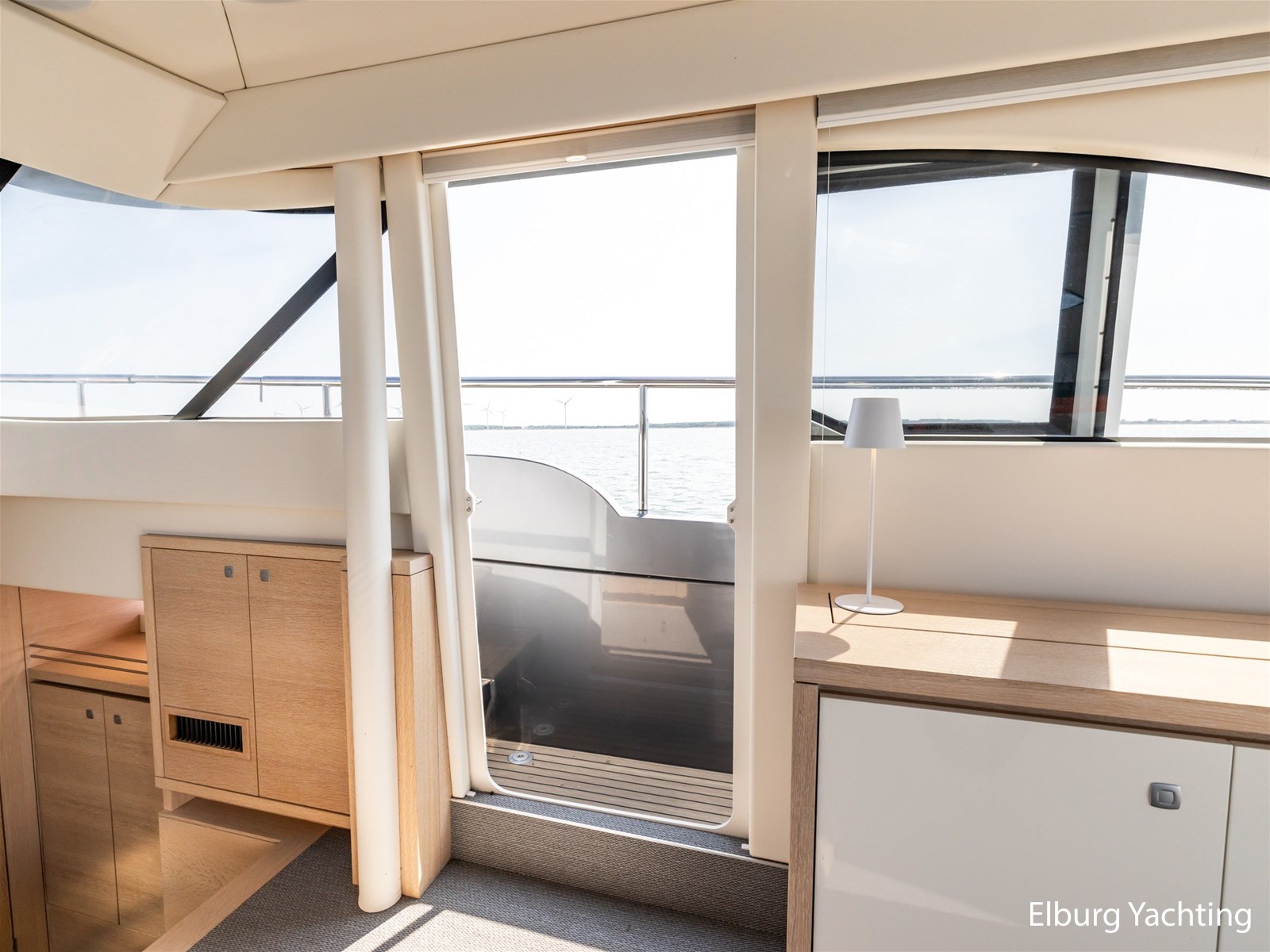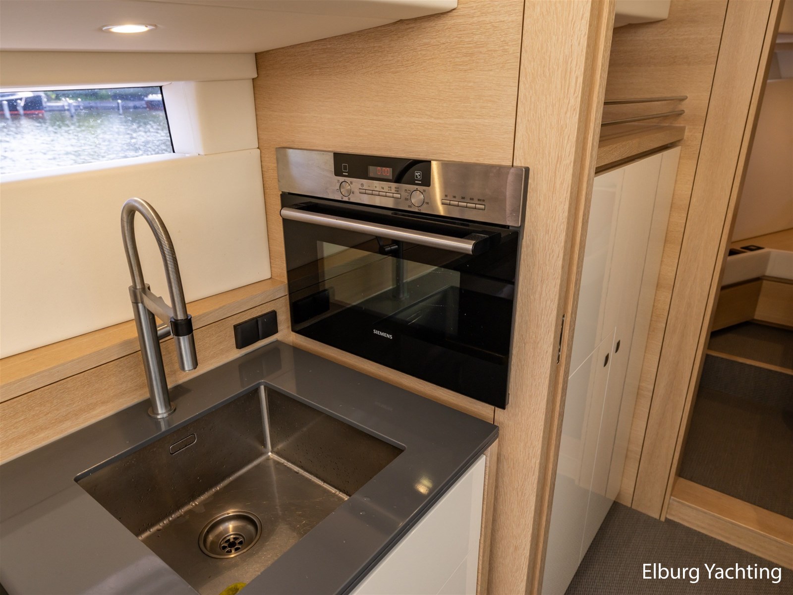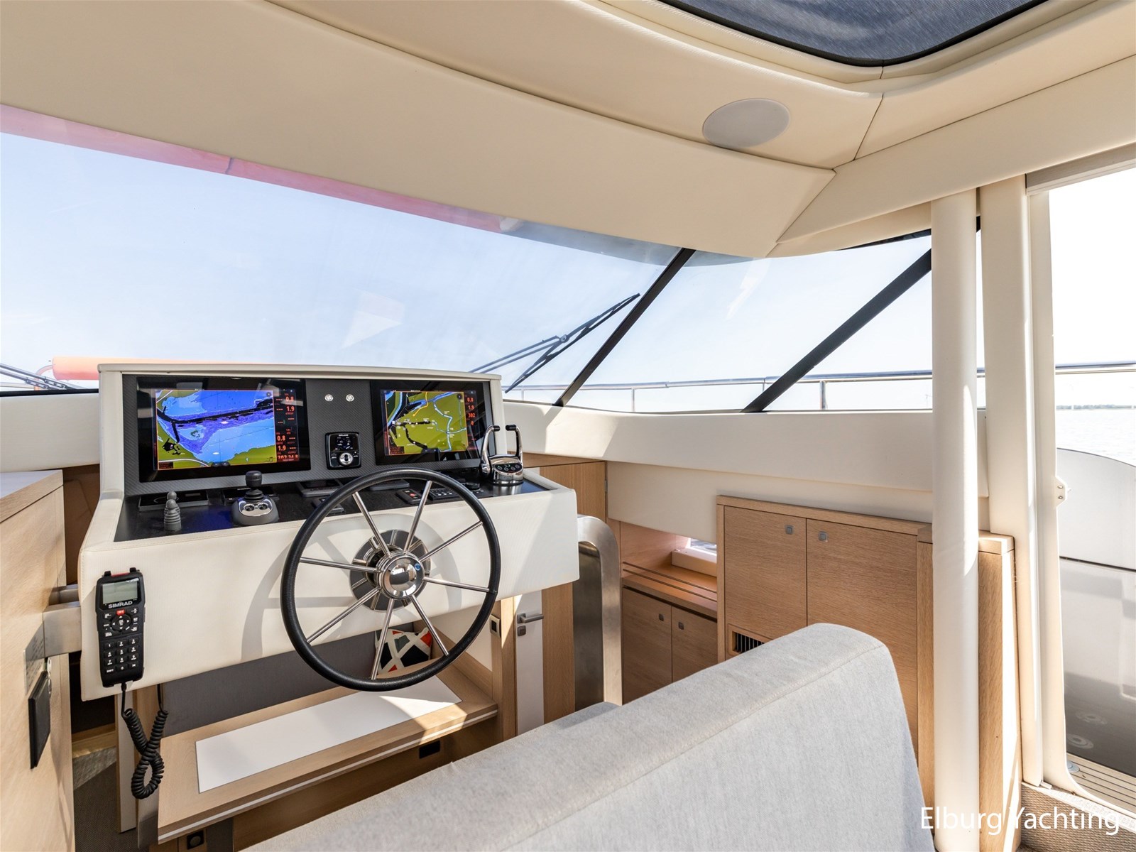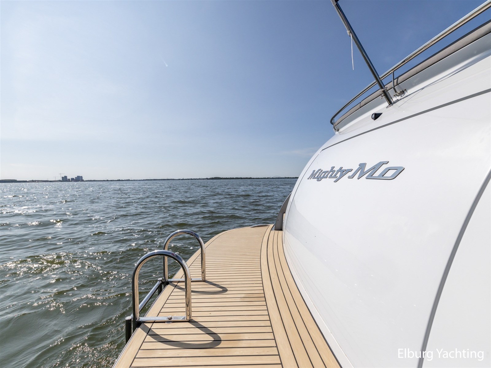 Prachtige Steeler 52S uit 2018 van de succesvolle Steeler Perfomance modelserie. Deze snelvarende aluminium performance cruiser is van alle gemakken voorzien voor mooie dagtochten of langere afstanden door binnenland of op open zee. De open kuip layout biedt een praktisch en gelijkvloerse loop rondom en door het schip. Alle ruimtes staan met elkaar in open verbinding waardoor alle opvarenden met elkaar in contact blijven. In het oogspringende kenmerken van deze Steeler 52S Performance zijn de extra stuurpositie op het voordek, hydraulisch beweegbaar salondak, zijdeur aan stuurboordzijde, Seakeeper Gyro stabilisator, zowel vloerverwarming en airconditioning aan boord. Dit schip is uitgerust met 2 x 480 pk Yanmar diesel motoren met vaste schroefas aandrijving. Deze Steeler 52S Performance is uitgerust met: Volledige wegklapbare tent over het achterdek, inklapbare gangway naar achteren, berging in spiegel, gezellige L-vormig buitenzit met afneembare kussenset, buiten spoelbak met warm/koud water, klapbare r.v.s. salondeuren om de kuip en salon gelijkvloers met elkaar te verbinden, TV op lift in salon, stuurbank en voetenplateau elektrisch in hoogte verstelbaar, wasmachine aan boord, Fusion audiosysteem, Zipwake trimsysteem, Yanmar dockingstation, Hydronautica afstandsbediening voor aan- en afmeren, machine kamer toegankelijk via groot luik in open kuip, dubbele Separ brandstoffilters, aparte technische ruimte voor alle elektrische componenten, groot zonnebed met afdekhoes op het voordek met extra bediening voor de motoren en het roer. Voor vragen en/of het maken van een afspraak bent u 7 dagen per week van harte welkom bij Elburg Yachting.