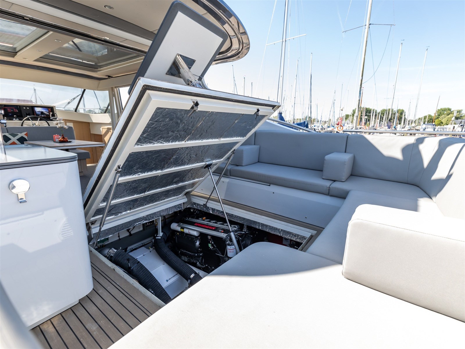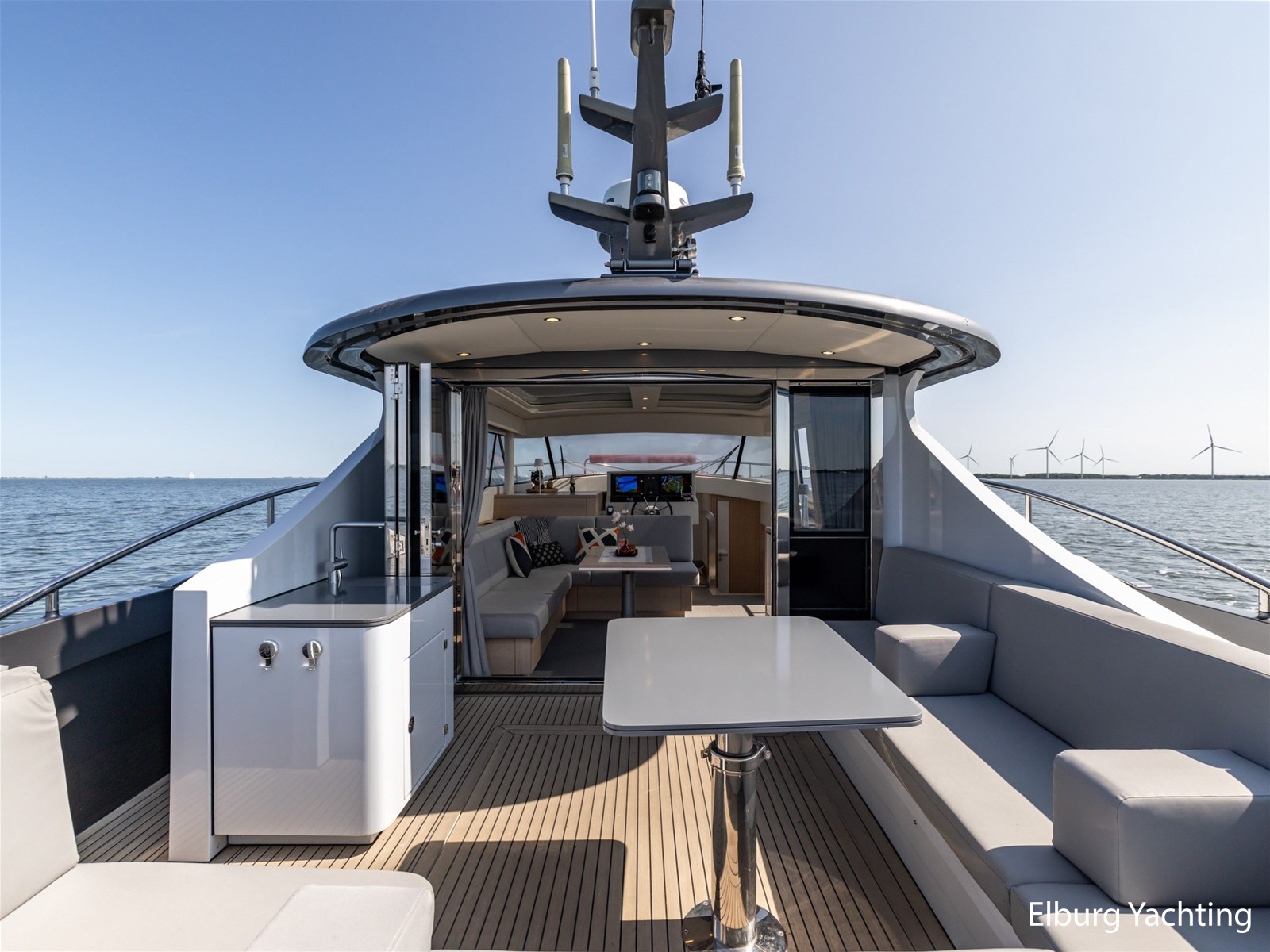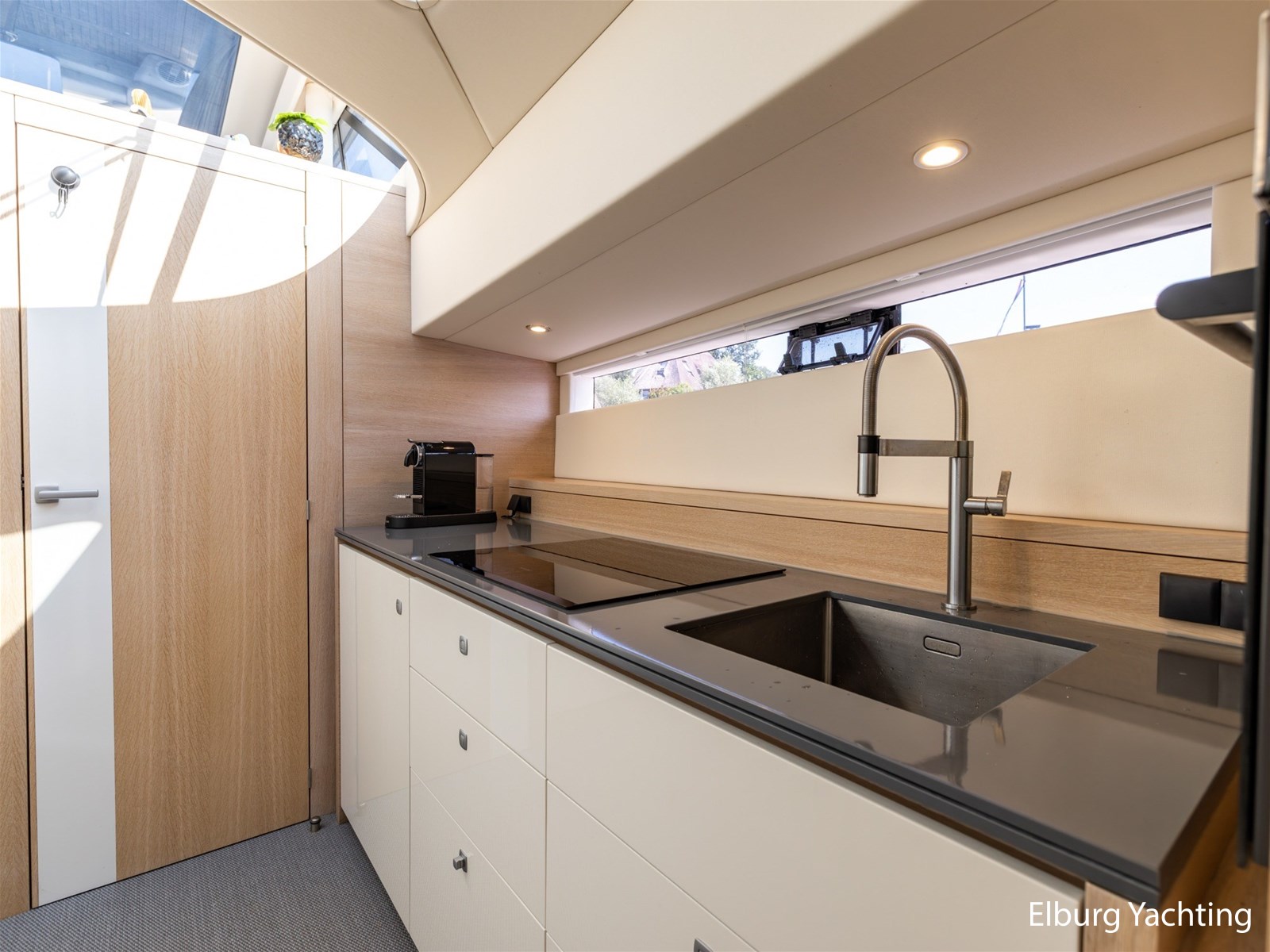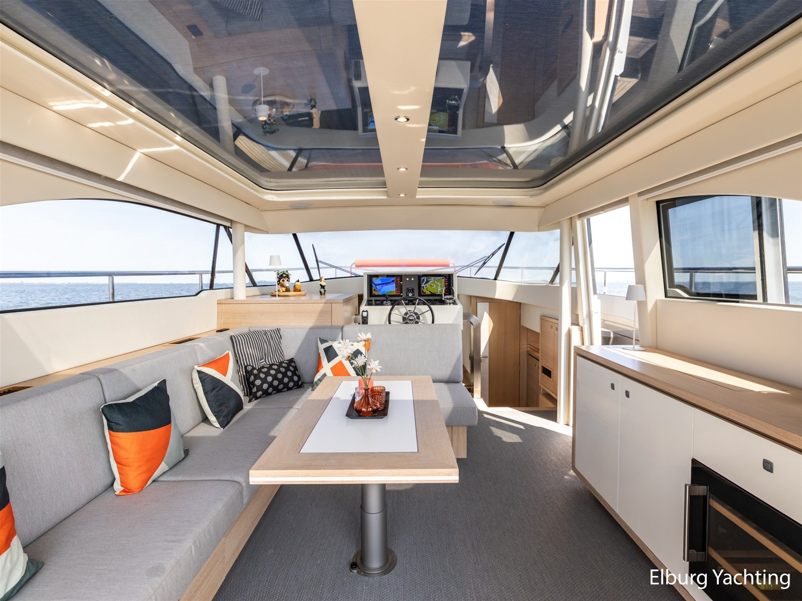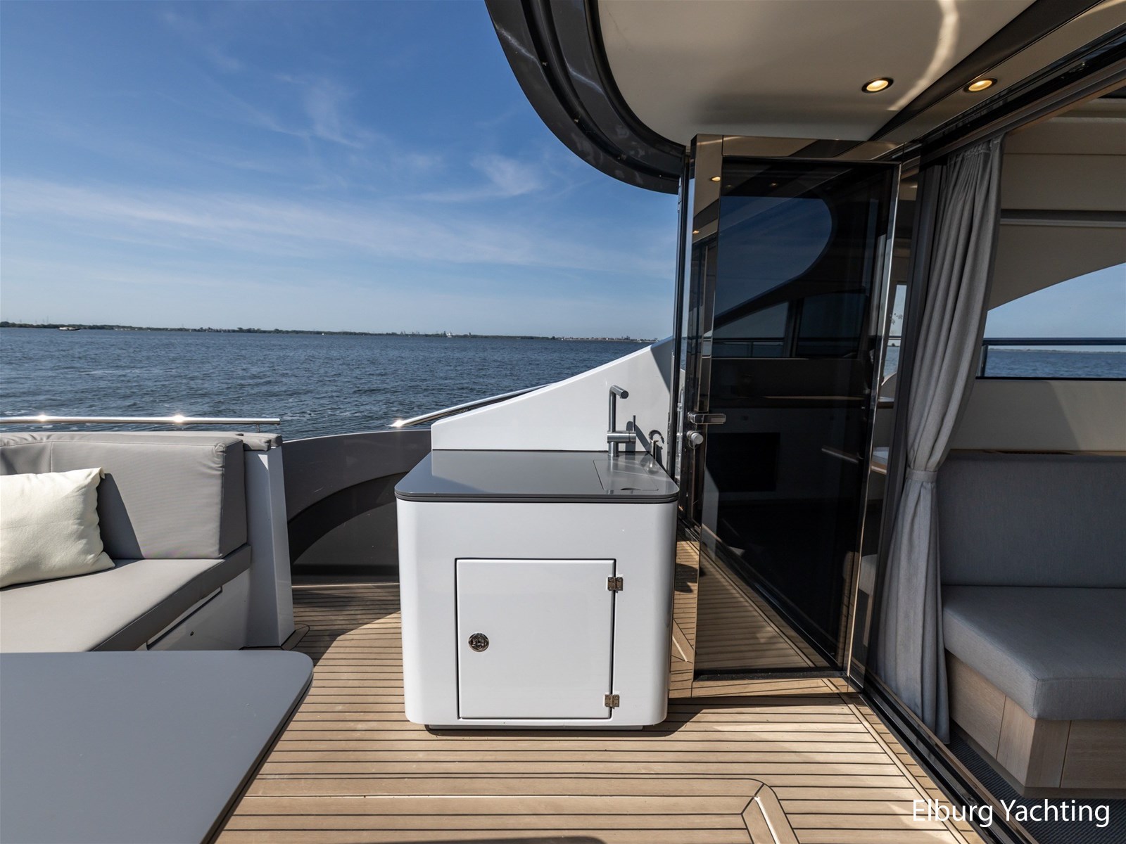 Prachtige Steeler 52S uit 2018 van de succesvolle Steeler Perfomance modelserie. Deze snelvarende aluminium performance cruiser is van alle gemakken voorzien voor mooie dagtochten of langere afstanden door binnenland of op open zee. De open kuip layout biedt een praktisch en gelijkvloerse loop rondom en door het schip. Alle ruimtes staan met elkaar in open verbinding waardoor alle opvarenden met elkaar in contact blijven. In het oogspringende kenmerken van deze Steeler 52S Performance zijn de extra stuurpositie op het voordek, hydraulisch beweegbaar salondak, zijdeur aan stuurboordzijde, Seakeeper Gyro stabilisator, zowel vloerverwarming en airconditioning aan boord. Dit schip is uitgerust met 2 x 480 pk Yanmar diesel motoren met vaste schroefas aandrijving. Deze Steeler 52S Performance is uitgerust met: Volledige wegklapbare tent over het achterdek, inklapbare gangway naar achteren, berging in spiegel, gezellige L-vormig buitenzit met afneembare kussenset, buiten spoelbak met warm/koud water, klapbare r.v.s. salondeuren om de kuip en salon gelijkvloers met elkaar te verbinden, TV op lift in salon, stuurbank en voetenplateau elektrisch in hoogte verstelbaar, wasmachine aan boord, Fusion audiosysteem, Zipwake trimsysteem, Yanmar dockingstation, Hydronautica afstandsbediening voor aan- en afmeren, machine kamer toegankelijk via groot luik in open kuip, dubbele Separ brandstoffilters, aparte technische ruimte voor alle elektrische componenten, groot zonnebed met afdekhoes op het voordek met extra bediening voor de motoren en het roer. Voor vragen en/of het maken van een afspraak bent u 7 dagen per week van harte welkom bij Elburg Yachting.