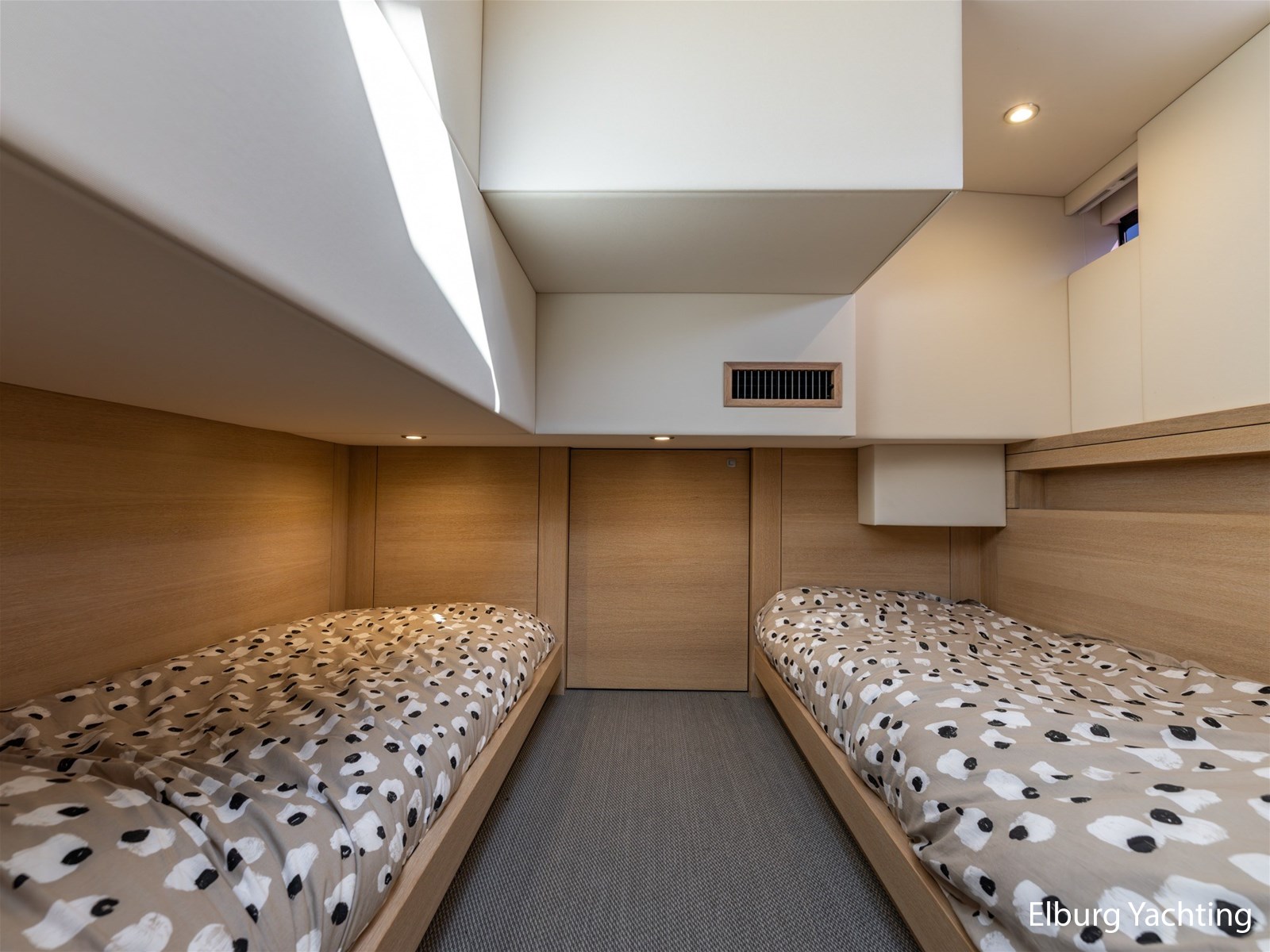 4 x vast (1 x 2 pers. frans bed in voorhut + 2 x 1 pers. midscheeps aan SB zijde)