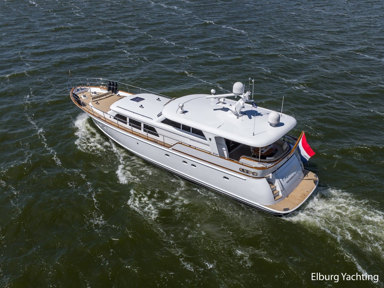 De Mulder 73 Wheelhouse - Alu Fast Going is een prachtig schip met de pure elegantie van Mulder Shipyard, met haar aluminium semi-displacement romp en 2 Caterpillar motoren haalt zij flinke snelheden op het water. De tijdloze, klassieke lijnen waar Mulder Shipyard om bekend staat, in combinatie met een moderne ‘wolf in schaapskleren’ : een volledig aluminium, snelvarend, rijk uitgerust jacht welke gebouwd is voor ultiem comfort en gebruiksgemak.