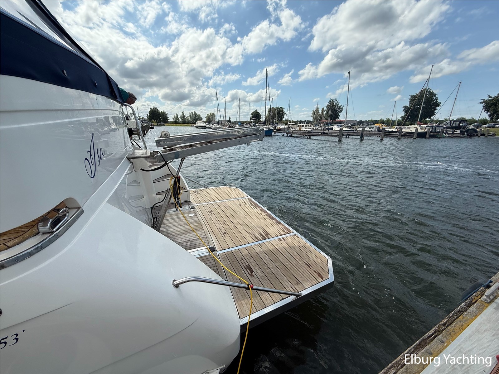 Deze Elegance 53 is een veelzijdig schip met veel ruimte zowel boven als benedendeks. Door haar layout met een achterdek en flybridge biedt het schip veel bruikbare buitenruimte. Verder is er voor de afwerking gebruik gemaakt van hoogwaardige materialen. Deze Elegance wordt verder geleverd met o.a: groot zwemplatform, r.v.s. gangway, luie trap naar zwemplatform, dubbele r.v.s. reling, overdekt achterdek, flybridge, eigenaarshut met aparte ingang achterin salon, schuifraam in salon, volledige tent rondom achterdek (2023), anti fouling (2025), romp gepoetst (2025), boegschroef vernieuwd 2020, bimini op flybridge, vaatwasser.