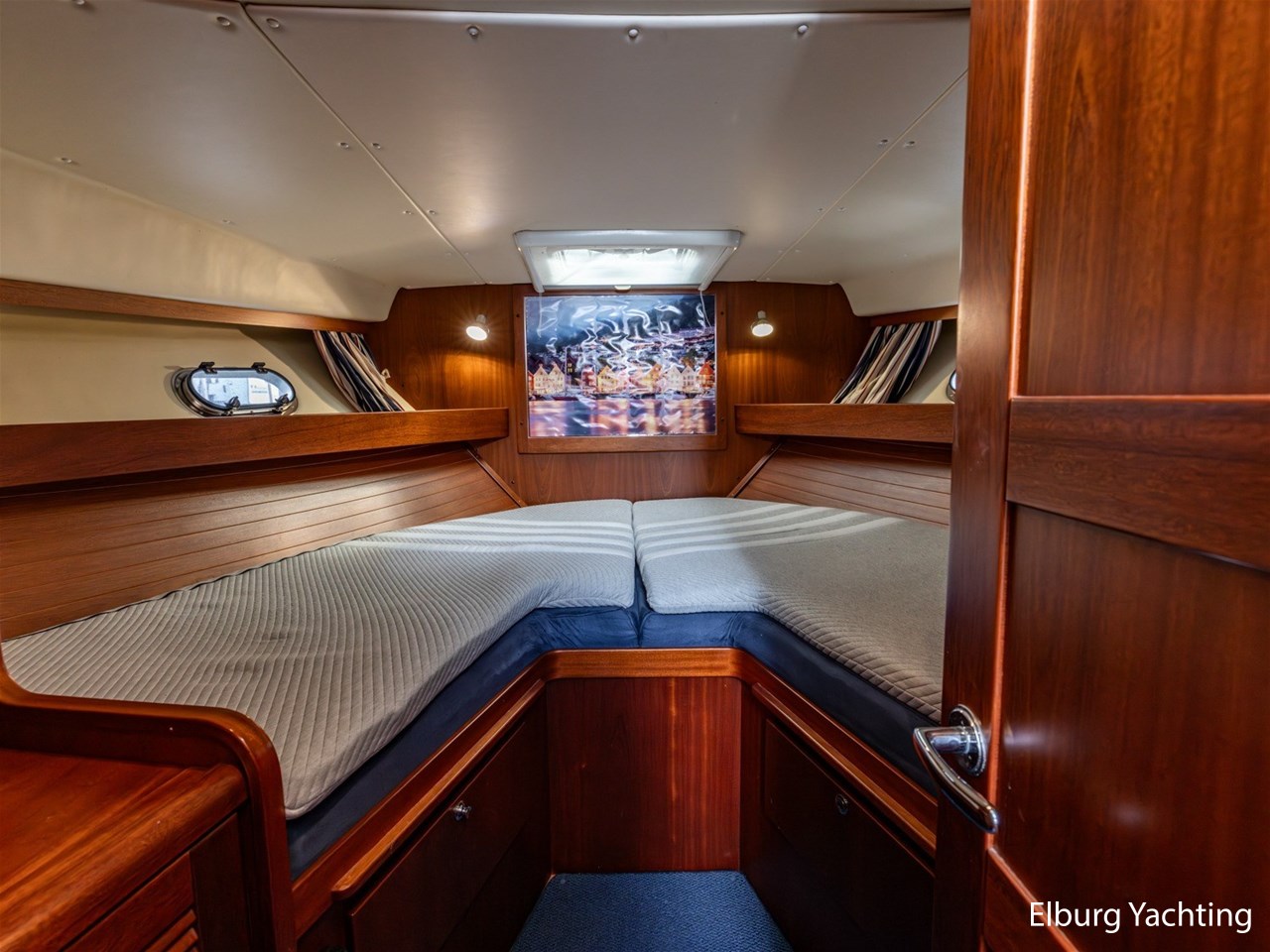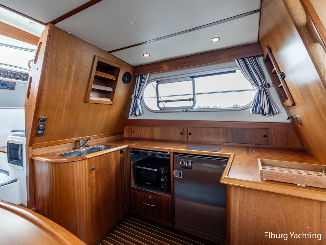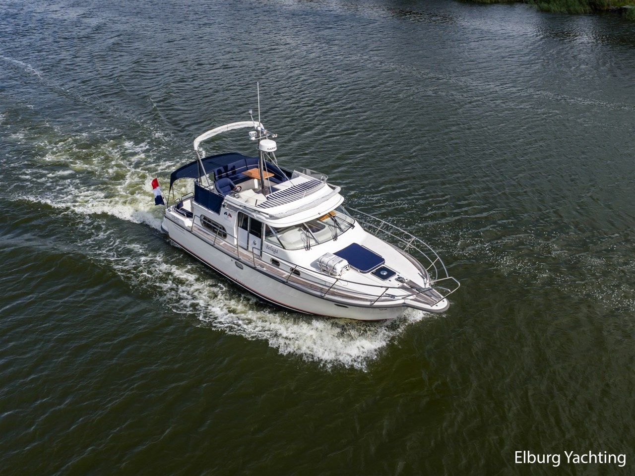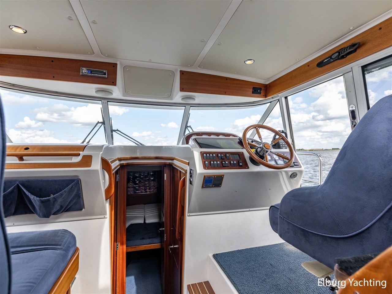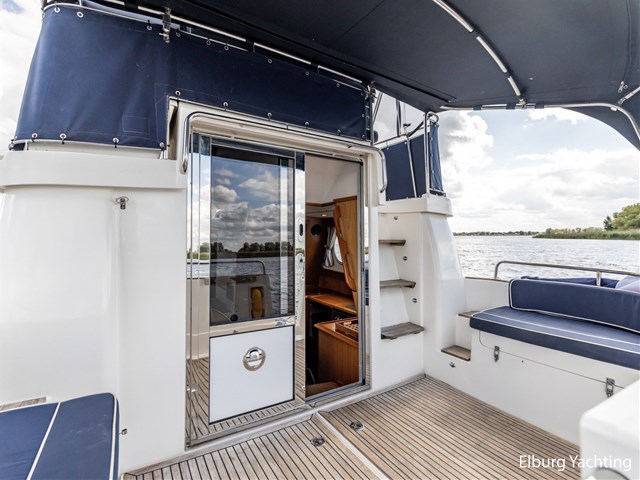Nimbus 380 Commander, stijlvol en doordacht motorjacht. Zeer complete Nimbus 380 Commander met binnendoor bereikbare flybridge, drie schuifdeuren, veel kastruimte en praktische indeling. Dit Zweedse kwaliteitsjacht is ontworpen met oog voor ruimte, afwerking en functionaliteit. Ideaal voor lange reizen over groot en klein water. Voorzien van vaste trap naar de flybridge, vaste stuurstoelen, biminitop, kuiptent, dubbele rvs reling, trimtabs en twee ankers. Aandrijving via vaste schroefassen met Volvo Penta EVC-systeem. Flybridge zowel binnen- als buitenom bereikbaar. Ieder jaar motoronderhoud uitgevoerd. Doorvaarthoogte ca. 3,40 m (met geklapte radarbeugel en bimini), ca. 5,00 m volledig opgebouwd. Voor vragen en/of het maken van een afspraak bent u 7 dagen per week van harte welkom bij Elburg Yachting.