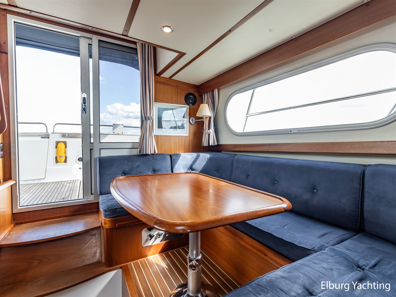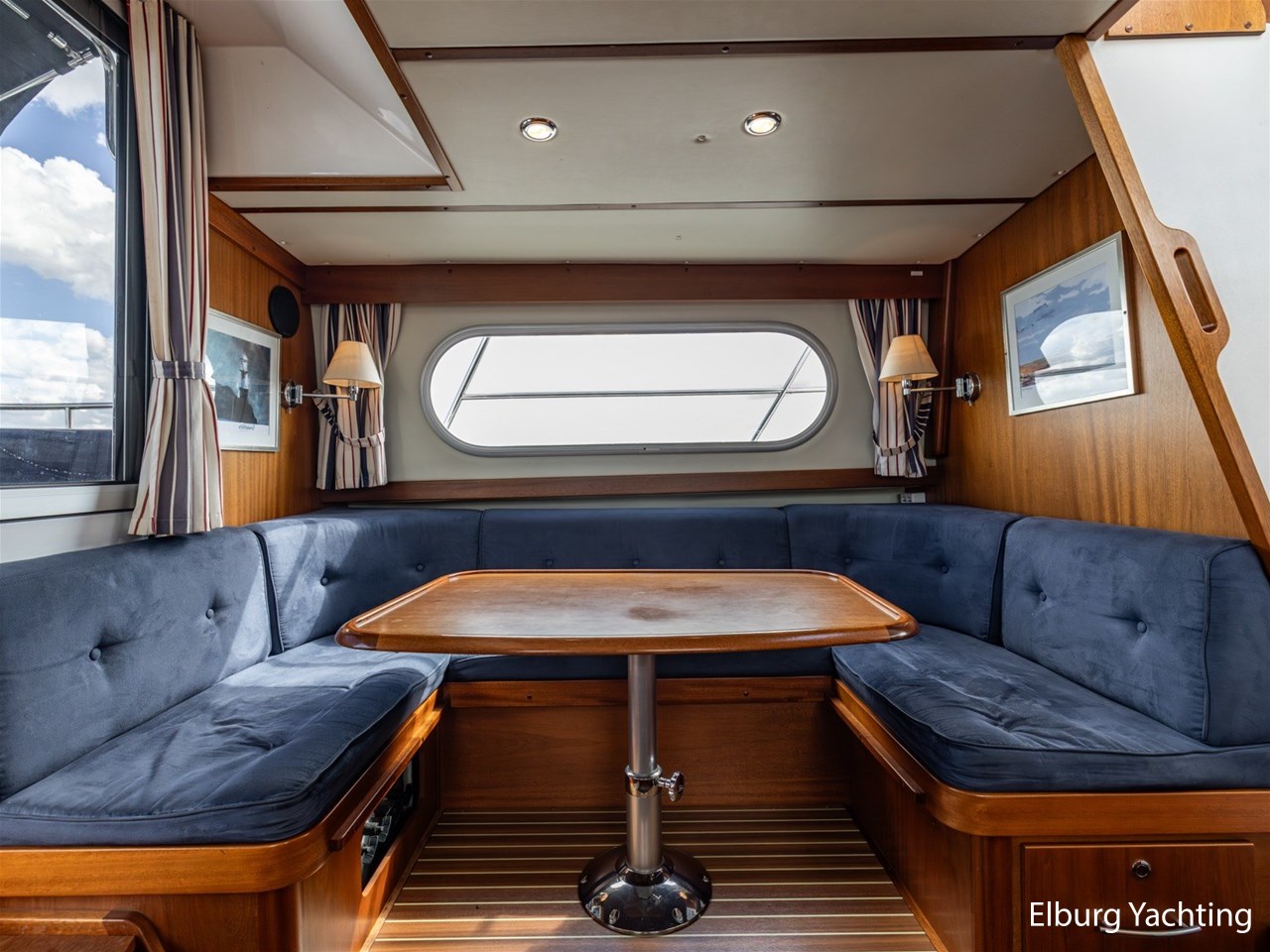 Ruime U-dinette t.o kombuis + vaste dinette bank op flybridge