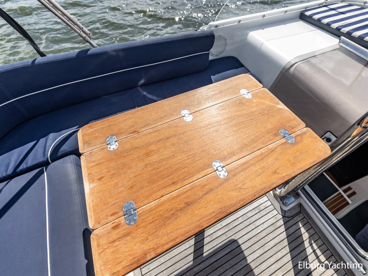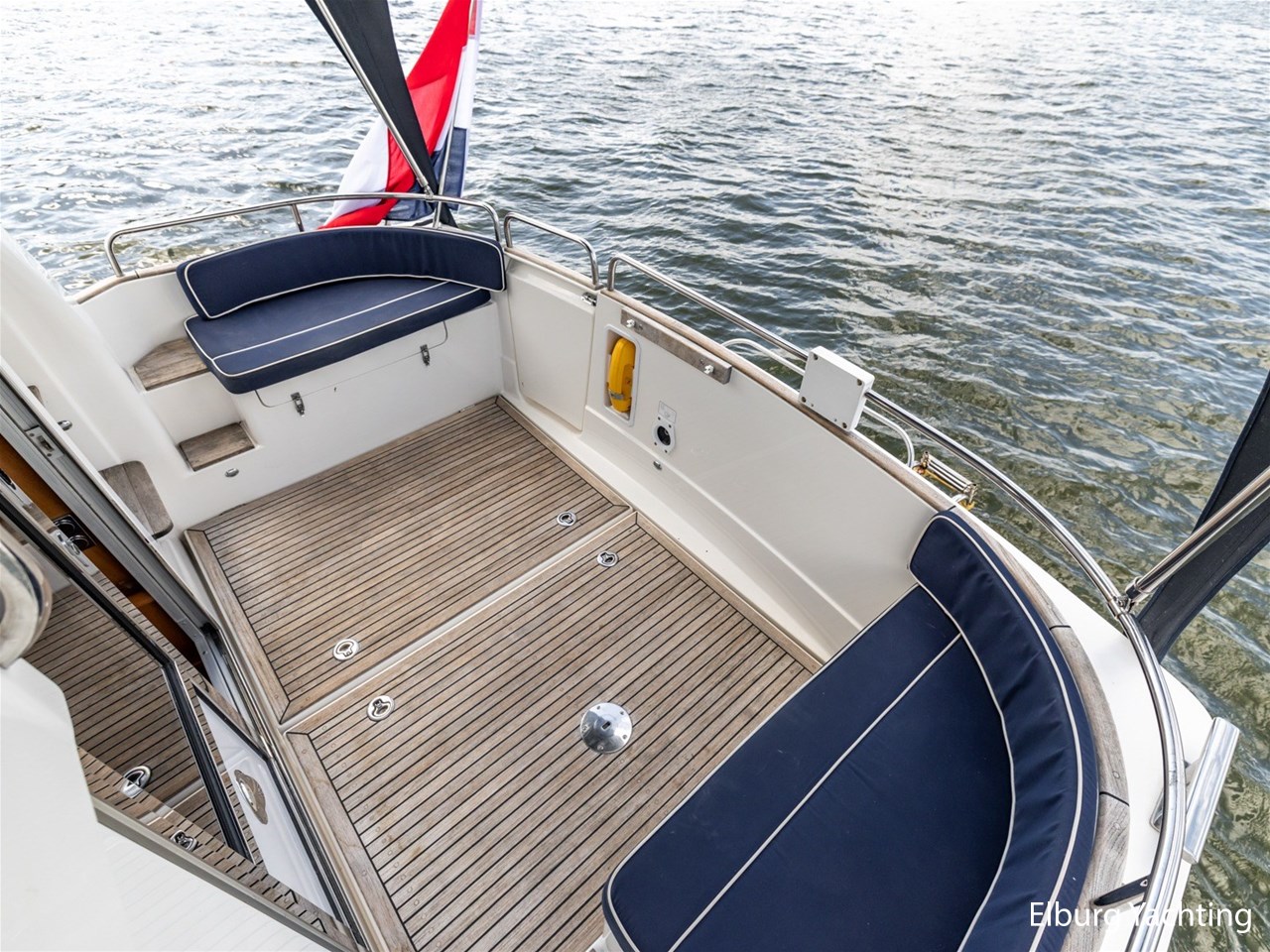 Teak dek achterdek + zwemplateau + flybridge + gangboorden