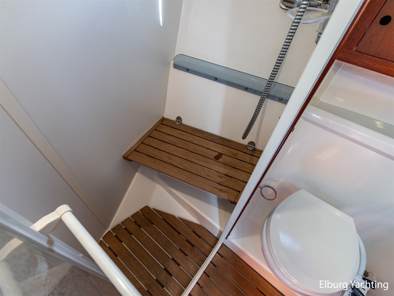 Groot zwemplateau belegd met teak + zwemtrap + fenderhouders