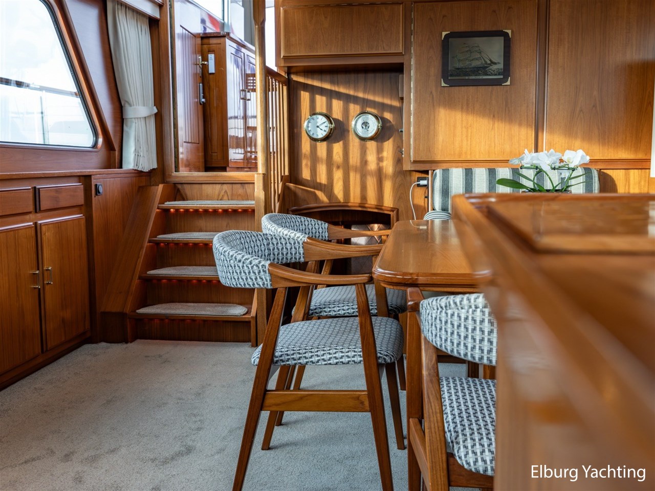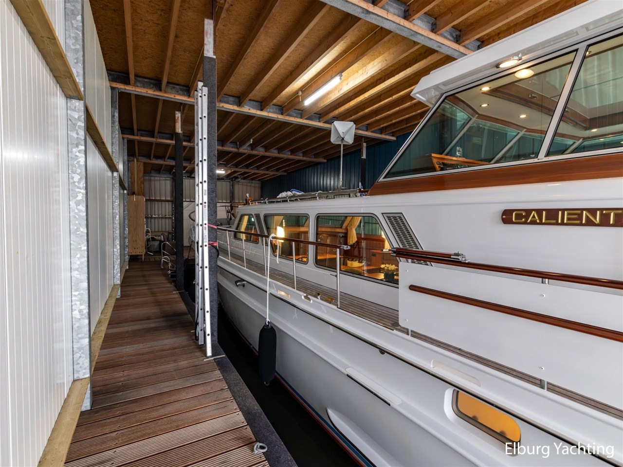Deze Super van Craft 18.60 gebouwd door de gerenommeerde Jachtwerf Klaassen te Voorschoten, betreft een uiterst goed onderhouden en compleet exemplaar. Het jacht heeft altijd binnen in een botenhuis binnen gelegen en wordt door haar 1e eigenaar aangeboden. Het jacht heeft een groot schuifdak in vast stuurhuis, verwarmde elektrische stuurstoel, 1 x salonraam kan open, ledverlichting door gehele jacht, het jacht is uniek door haar breedte van 5.07 m. Dit creëert een royale binnenruimte en leefruimte in het jacht. Het jacht beschikt over TwinDisc elektrisch koppeling + trolling, Power Comander, RVS zijtrap, 4 zij-ingang in de reling, vaste bank op achtertdek, RVS handgelijders, Mastervolt Power System Control Panel, Victrol Digital Multi Control, Teakhouten reling met RVS septers, mughorren, mughorren voor alle patrijspoorten, veel kastruimte, alle kasten met verlichting, Siemens vaatwasmachine, marmeren topbladen (keuken graniet), luxe eigenaarshut met 4 x patrijspoort, 2 x PTO pomp, radio Zeeland bochtaanwijzer + windsnelheid + windhoek, 3 x 2-armige ruitenwissers, Biminitop over achterdek, veel bergruimte buiten, 8 x rvs bolders, 2 x camerasysteem, RVS stootstrip rondom, hoge machinekamer inlaat, kruiphoogte ca. 4.10 m, stuurstoel + meevaarbank, nieuwe stoffering in 2023, ledverlichting, mughorren, magnetische screens buitenzijde, stroom monitor systeem om de telefoon, AEG 9 kilo nieuwe was/droogmachine, hydraulische besturing, trollingsysteem = 2 á 3 knopen varen, kruissnelheid ca. 8 knopen. gouden kleppendeksel. Het jacht wordt exclusief aangeboden met een bijbehorend boothuis, dat enkel samen met de Super van Craft 18.60 kan worden aangekocht. Voor vragen en/of het maken van een afspraak bent u 7 dagen per week van harte welkom bij Elburg Yachting.