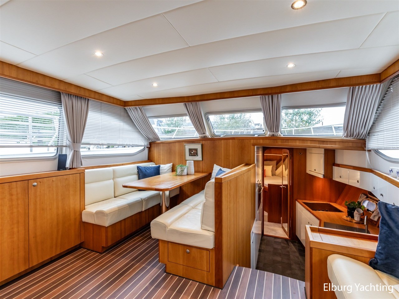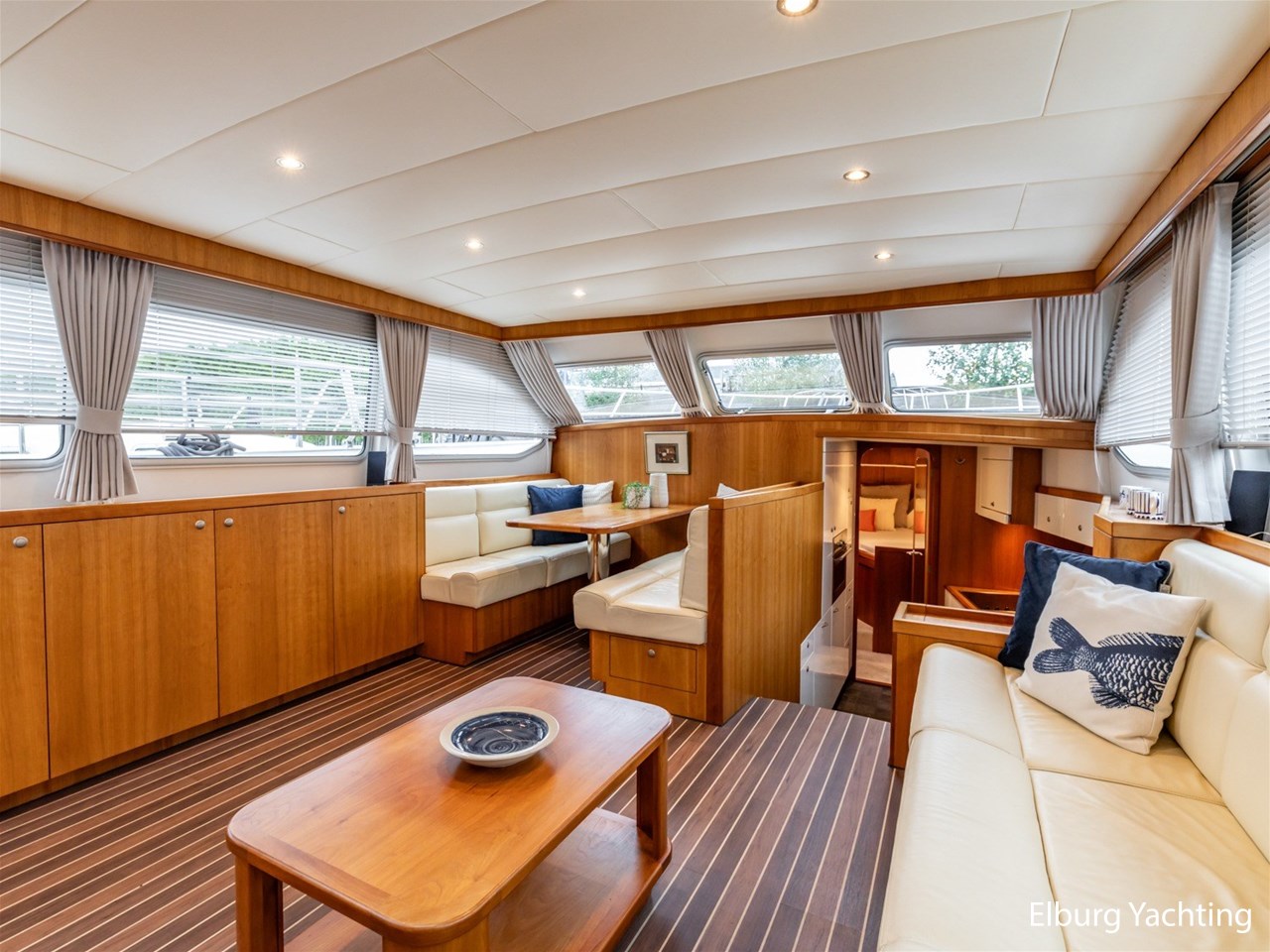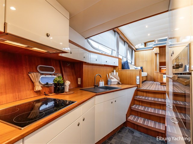 Ruimtelijk vormgegeven Van der Heijden Dynamic 1800. Gespoten in 2024 en geeft overall een verzorgde indruk. Het jacht is voorzien van een vast stuurhuis met aluminium deuren naar het achterdek en is geheel voorzien van een scheeps Teakdek. De r.v.s. potdeksel in combinatie met de r.v.s. zeerailing geeft een luxe uitstraling buitenom en de gangboorden zijn rondom breed. De ruime salon is voorzien van een royale bank met naastgelegen dinette. Verder naar voren is de kombuis gesitueerd met Bauknecht vaatwasser, Bauknecht combi oven, keramische kookplaat en veel bergruimte. Het jacht is voorzien van 3 fijne slaapkamers. De eigenaarshut is achterin gesitueerd en is voorzien van een ruim dubbel bed met eigen natte cel. Voorin is de voorkajuit gesitueerd met ruim V-bed en nabijgelegen natte cel. De derde (gastenhut) is achterin gesitueerd met een twee persoons stapelbed. Dit jacht is perfect geschikt om langere tijd op te verblijven: geïsoleerd, dubbel glas, Kabola centrale (vloer) verwarming, ruimtelijk vormgegeven en veel bergruimte. Voor vragen en/of het maken van een afspraak bent u 7 dagen per week van harte welkom bij Elburg Yachting.