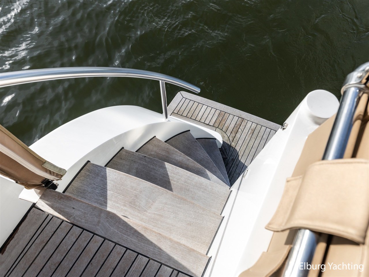 Geïntegreerd zwemplateau met Teak en r.v.s. zwemtrap