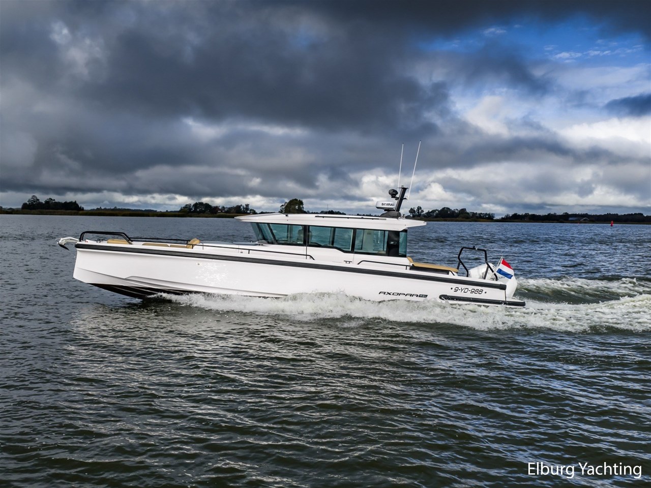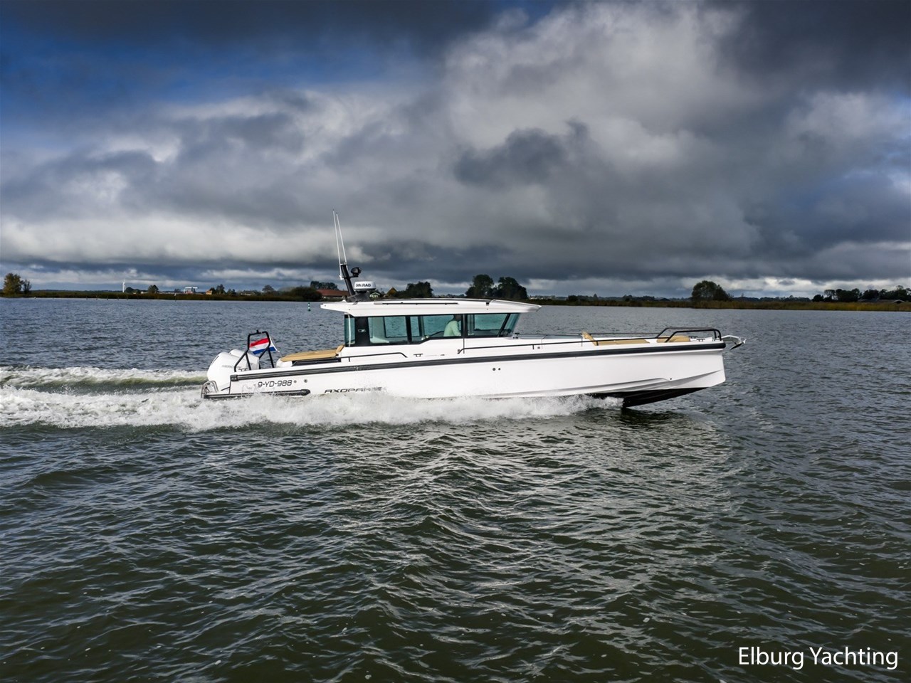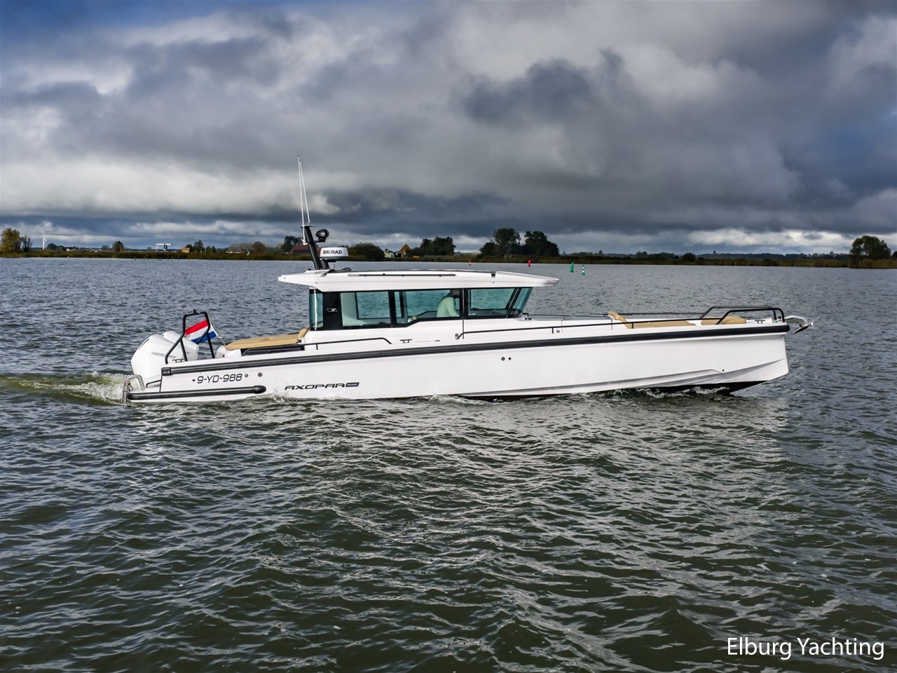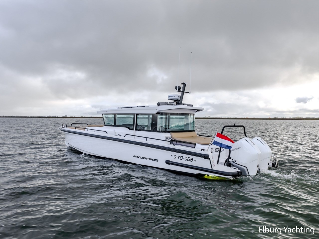 Deze Axopar XC Cross Cabin is een veelzijdig en stoer gelijnd jacht. Dankzij haar V-Stepped romp in combinatie met de Joystick Piloting vertoont ze mooi vaargedrag op groter water met een hogere topsnelheid en is ze erg gemakkelijk te manoeuvreren. Verder is ze voorzien van een dubbele cabine en een natte cel. Het jacht is fraai gestyled middels het Brabus Line Trim Package en geeft een luxe en fraai afgewerkte indruk. Deze Axopar wordt voortgestuwd door twee 300 pk sterke Mercury Verado motoren. Rondom is eenvoudig bewegen middels de gangboorden en de twee te openen zijdeuren in het stuurhuis. Voor- en achter het stuurhuis zijn twee royale zonnebedden gesitueerd. Het stuurhuis is rondom voorzien van ramen waardoor er een optimaal 360 graden zichtveld is. Tevens is het stuurhuis voorzien van een gezellige dinette met koelkast onder de vaar- / meevaarstoel. Dit jacht is een sportieve allrounder en wordt onder andere geleverd met: Led-verlichting rondom, Webasto elektrisch schuifdak, vergrootte kastruimte voorhut, zonnebed voordek met bergruimte, Webasto verwarming, raamcovers, Dometic koelkast, zoeklicht met afstandsbediening, buitendouche met warm water, onderwaterverlichting, Waterski-beugel, Audiosysteem met 5 speakers binnen en 4 speakers buiten, Toiletruimte met douche en hoezen voor de buitenkussens. Voor vragen en/of het maken van een afspraak bent u 7 dagen per week van harte welkom bij Elburg Yachting.